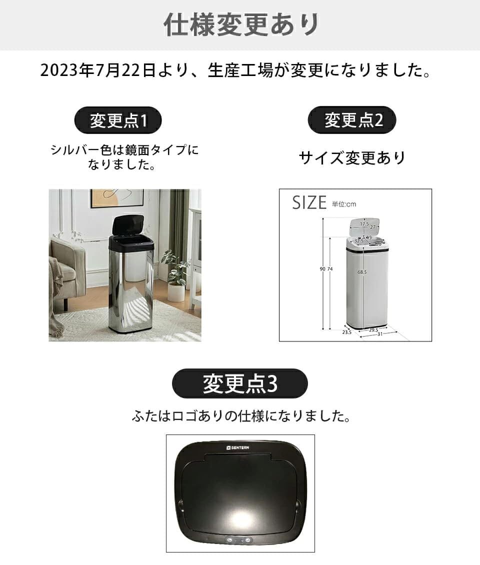 【2022最新】OSJ ゴミ箱 50l センサー 自動開閉 ふた付 大容量 自動 ダストボックス シルバー