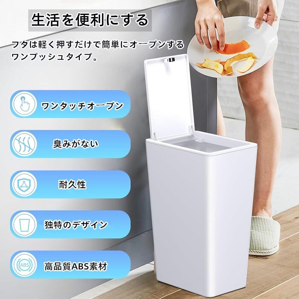 ゴミ箱 ふた付き スリム 10L/15L 蓋付きゴミ箱 ワンタッチ開閉 プッシュ式 ダストボックス 抗菌 防臭 密閉 中身が見えない 薄型 角型 大容量 省スペース おしゃれ シングル キッチン トイレ リビング 洗面所 家庭用 (15L-(26*18*35cm),グレー)