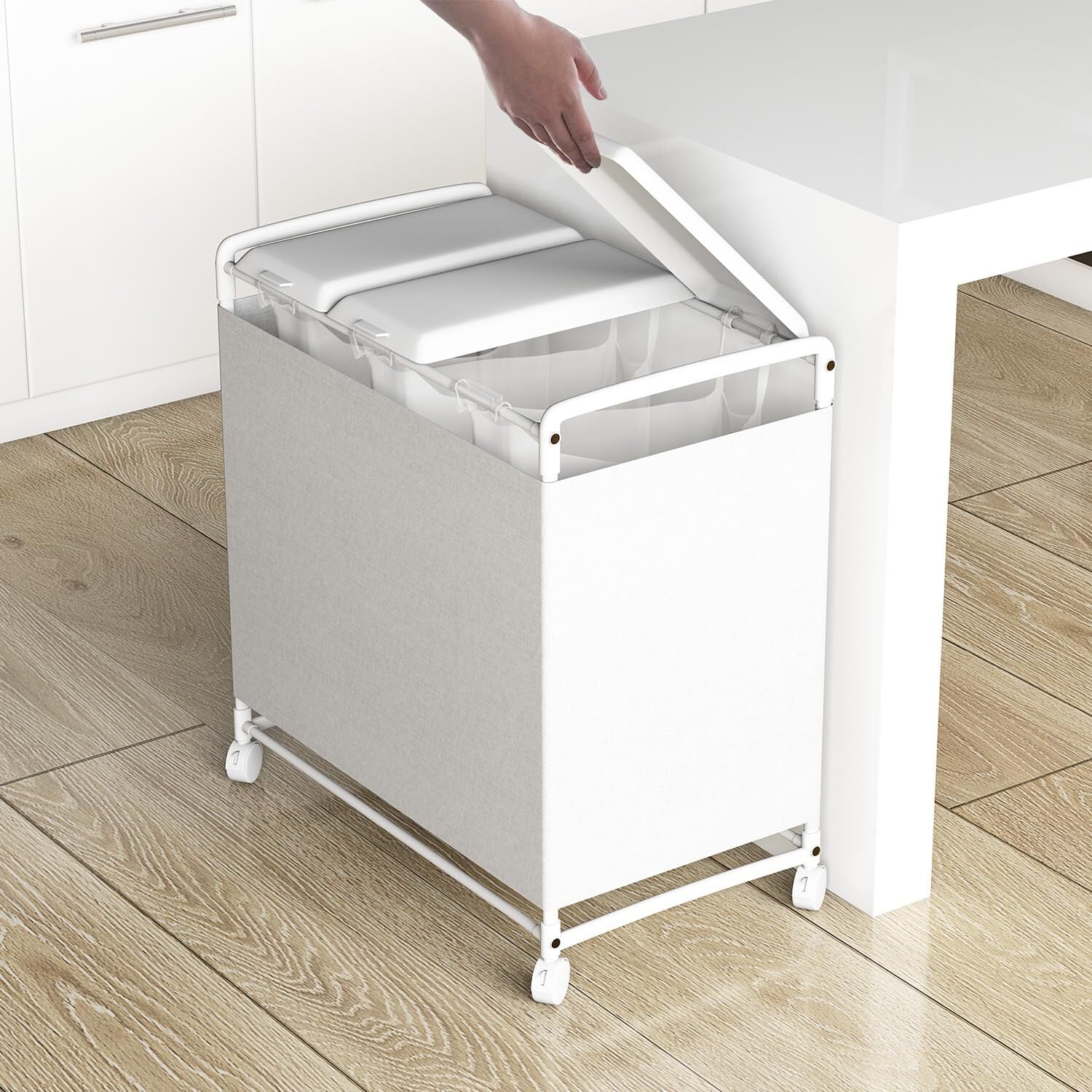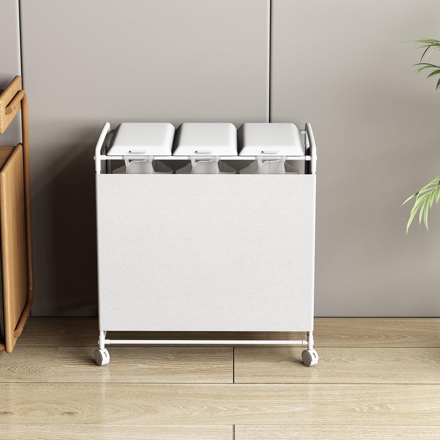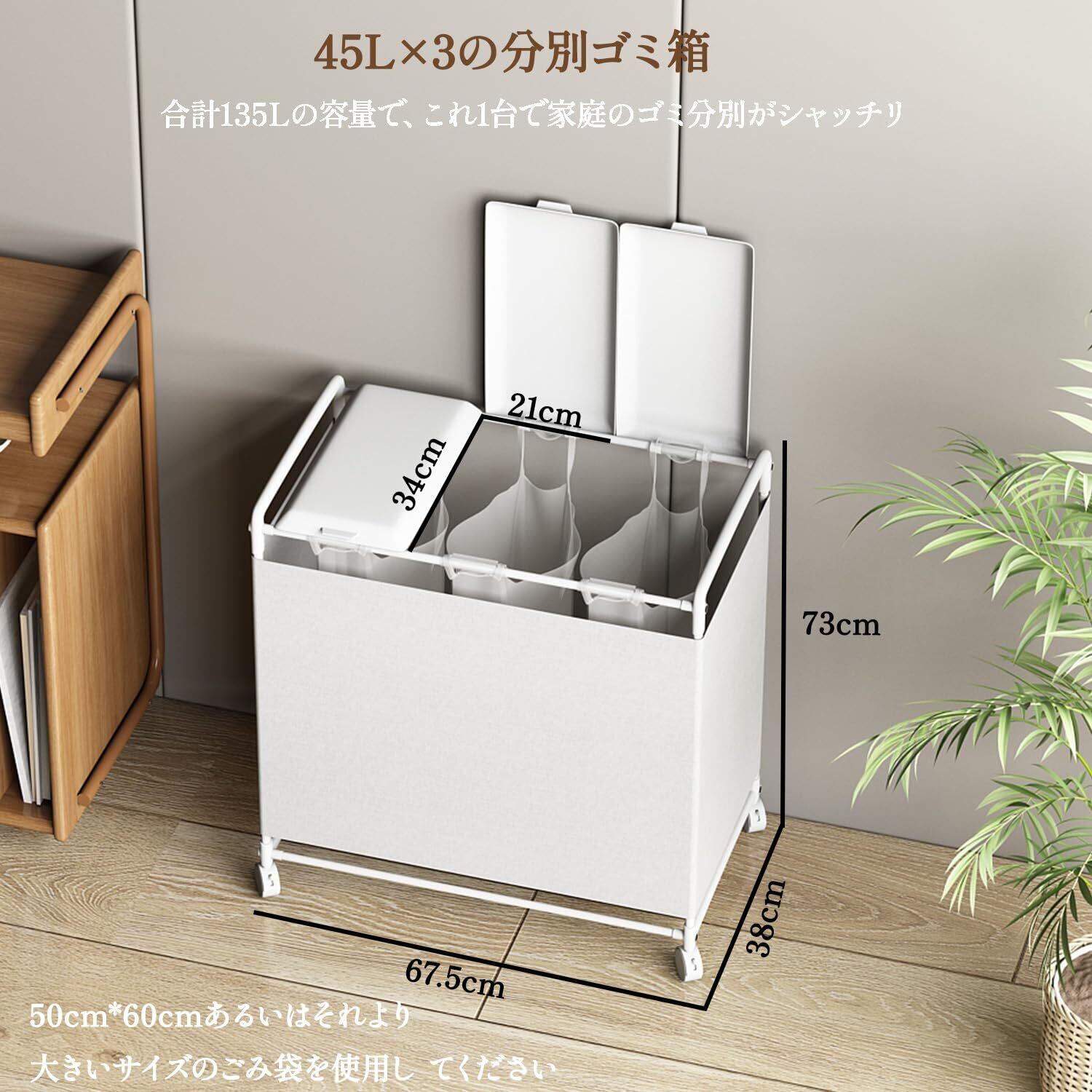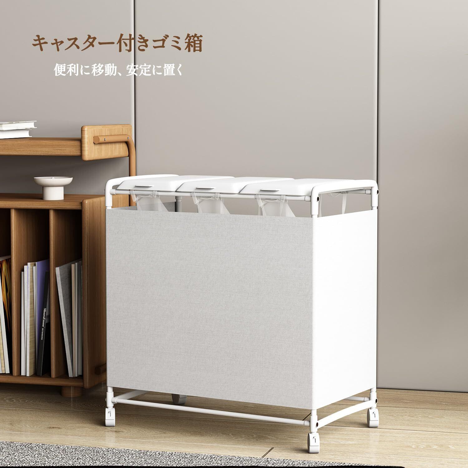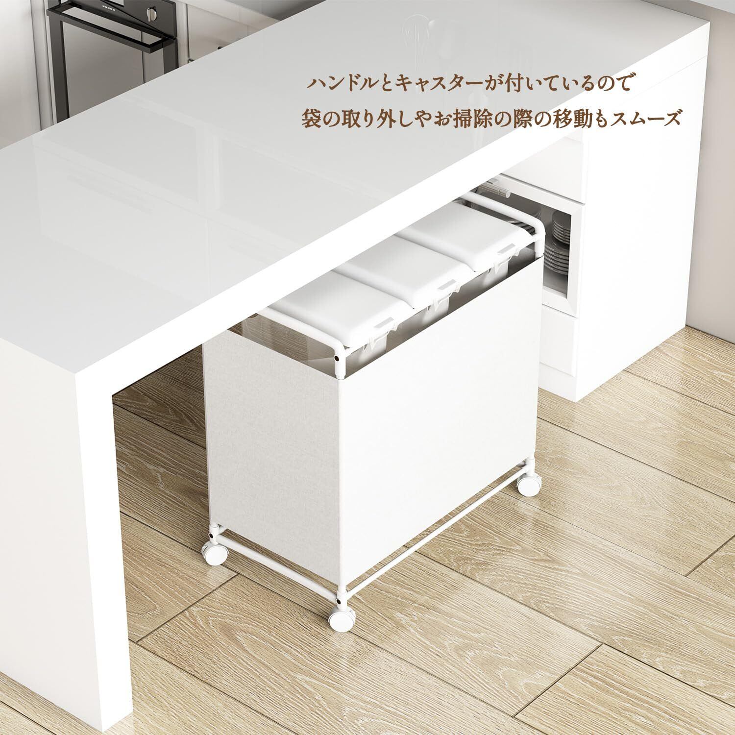 目隠し 分別ダストワゴン 3分別 大容量 ゴミ袋ホルダー ゴミ袋スタンド タワーゴミ箱 キャスター付き ダストボックス おしゃれ フタ付きゴミ箱 (ホワイト)