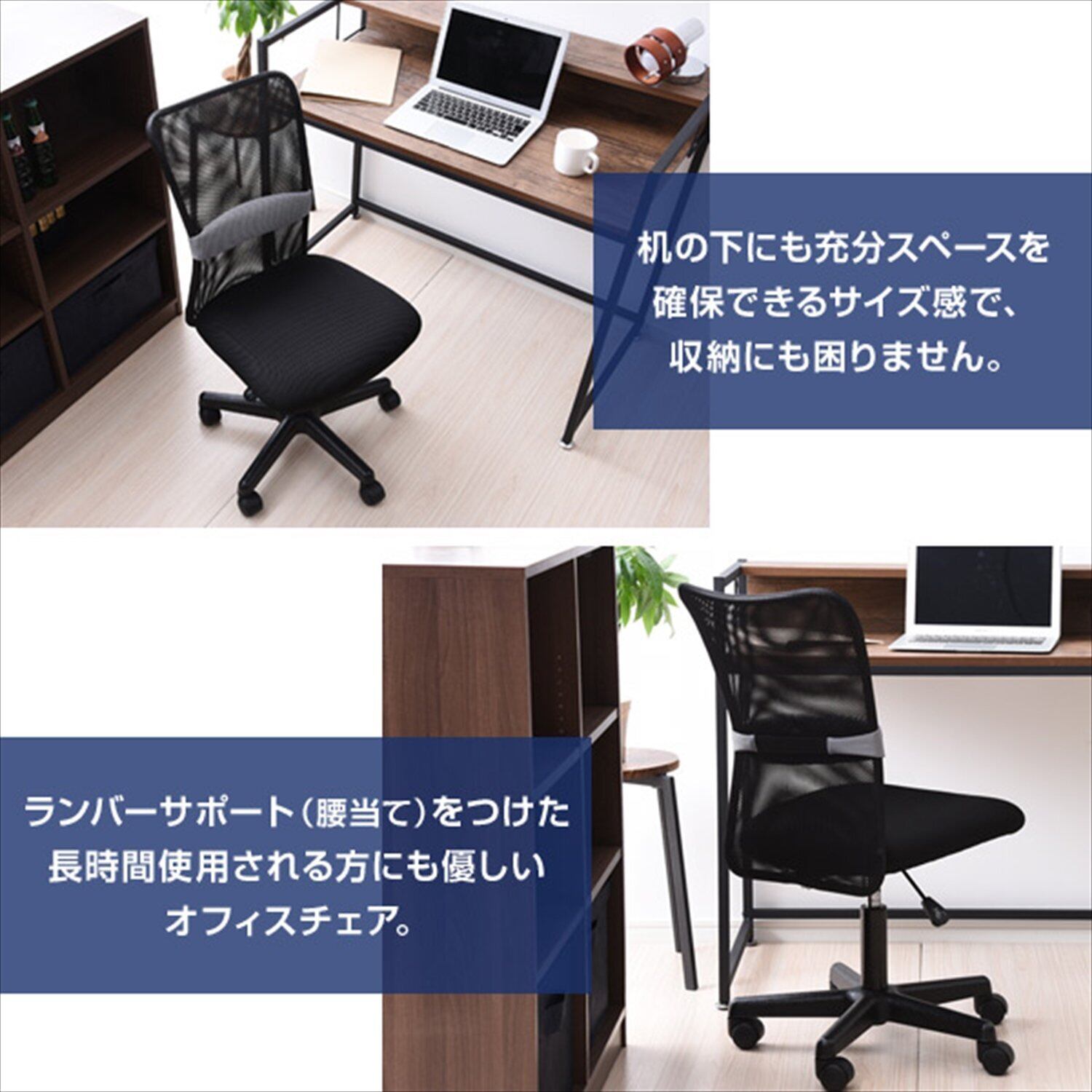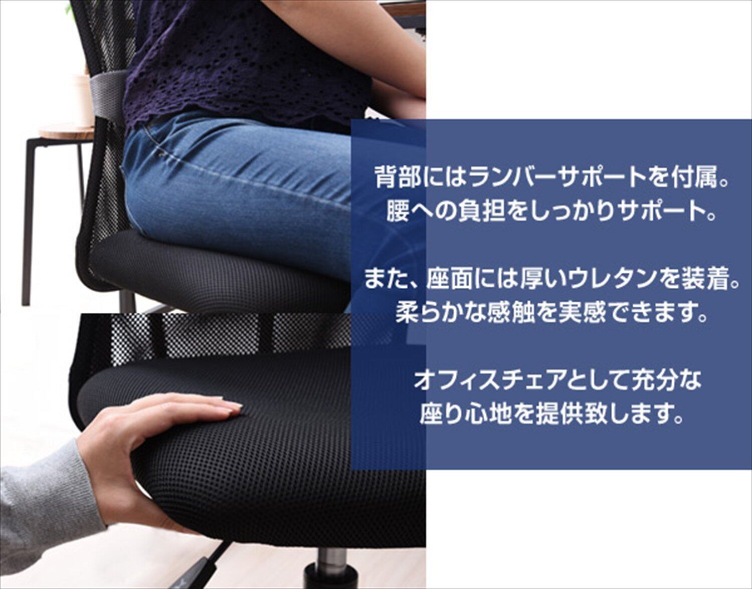 ●ランバーサポート(腰あて)付きで長時間の使用でも腰への負担を軽減出来る