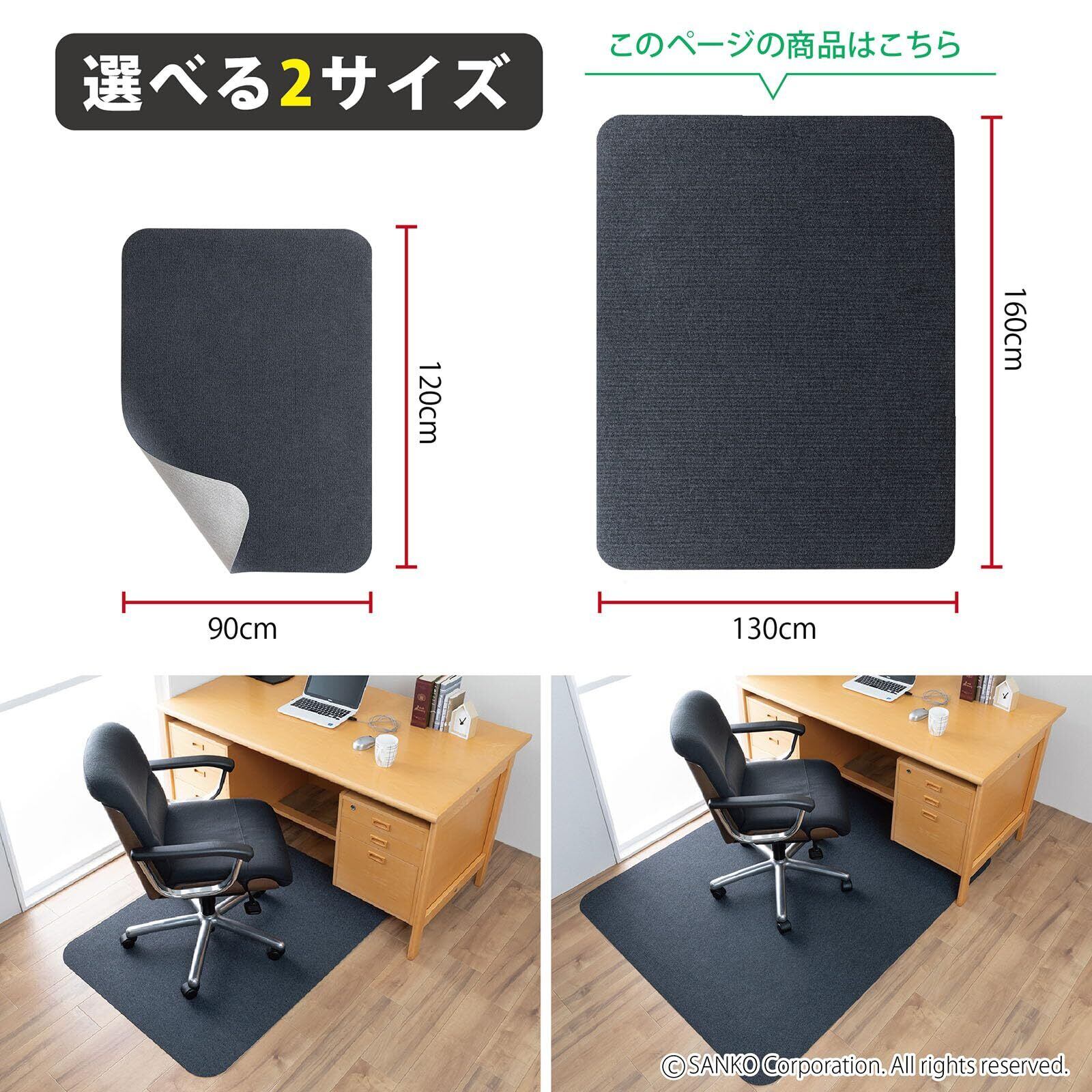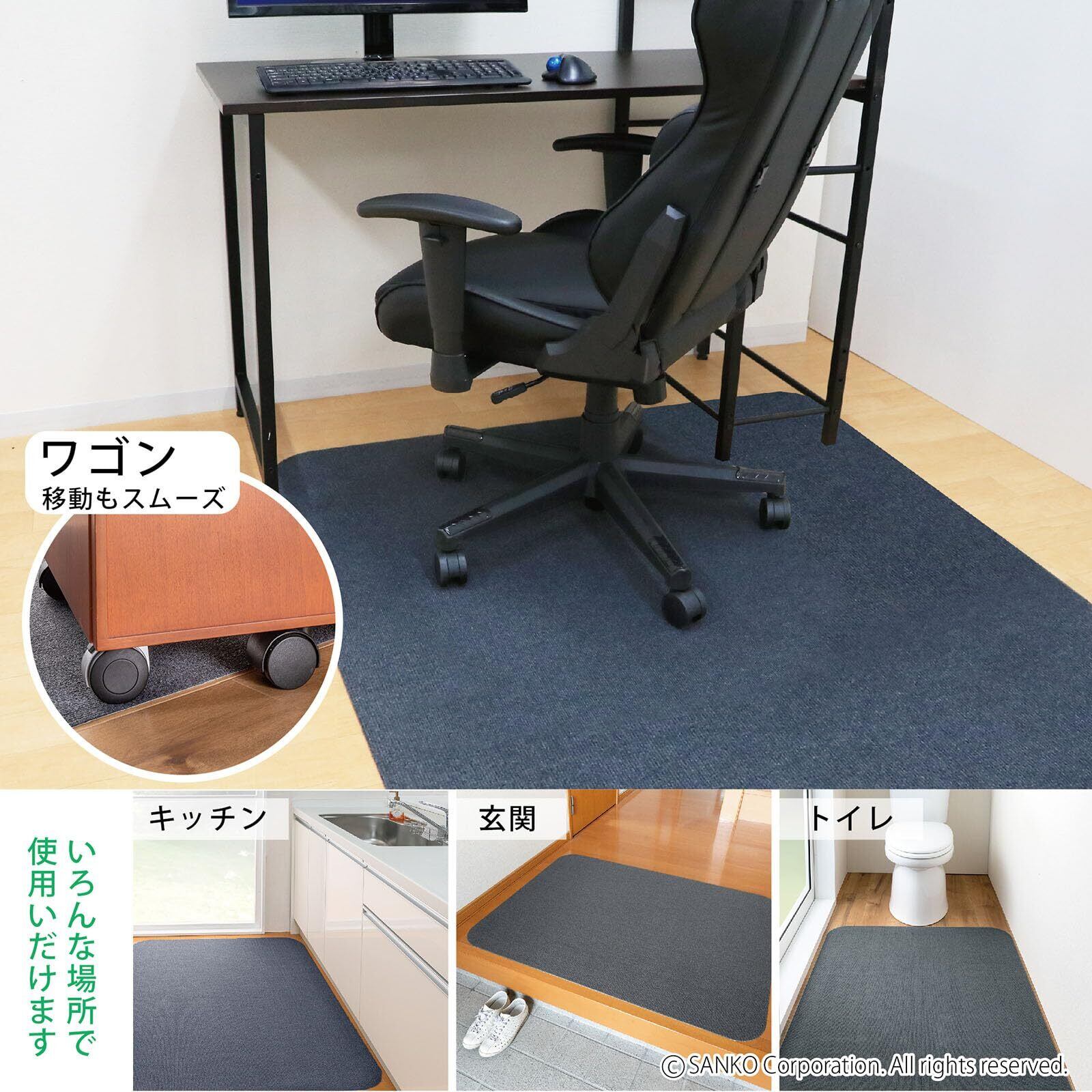 サンコー ゲーミングチェアマット 床保護 130×160cm 滑り止め 畳対応 デスク 椅子 フローリング 畳用 洗える ダークグレー KX-41 日本製