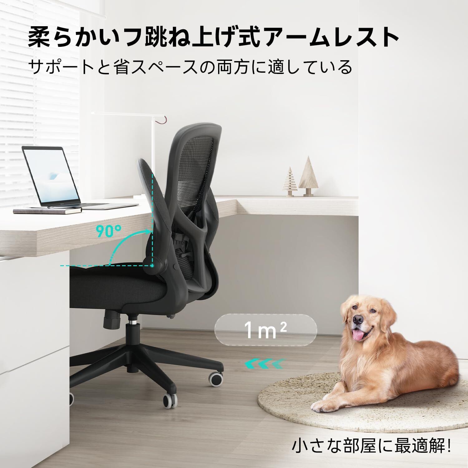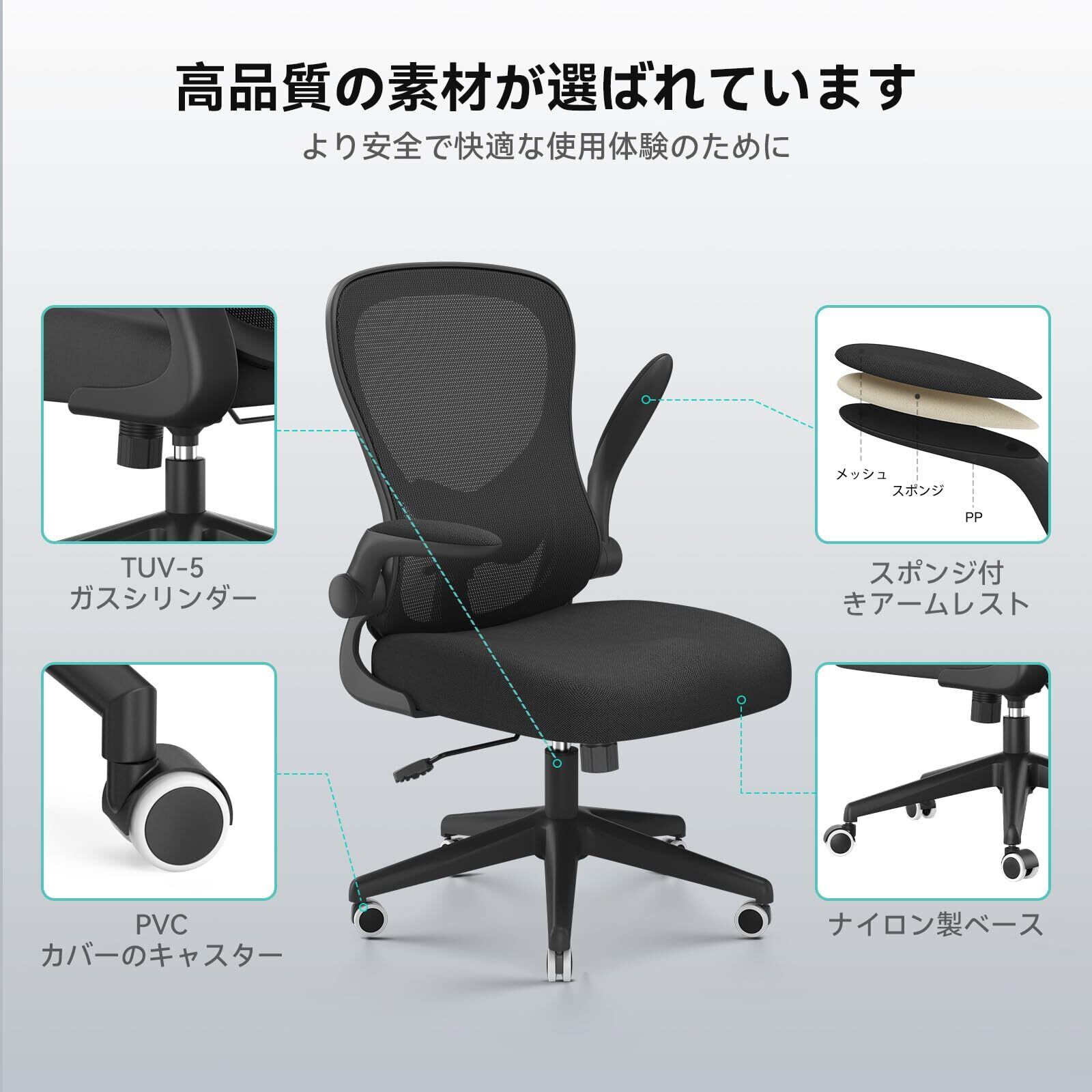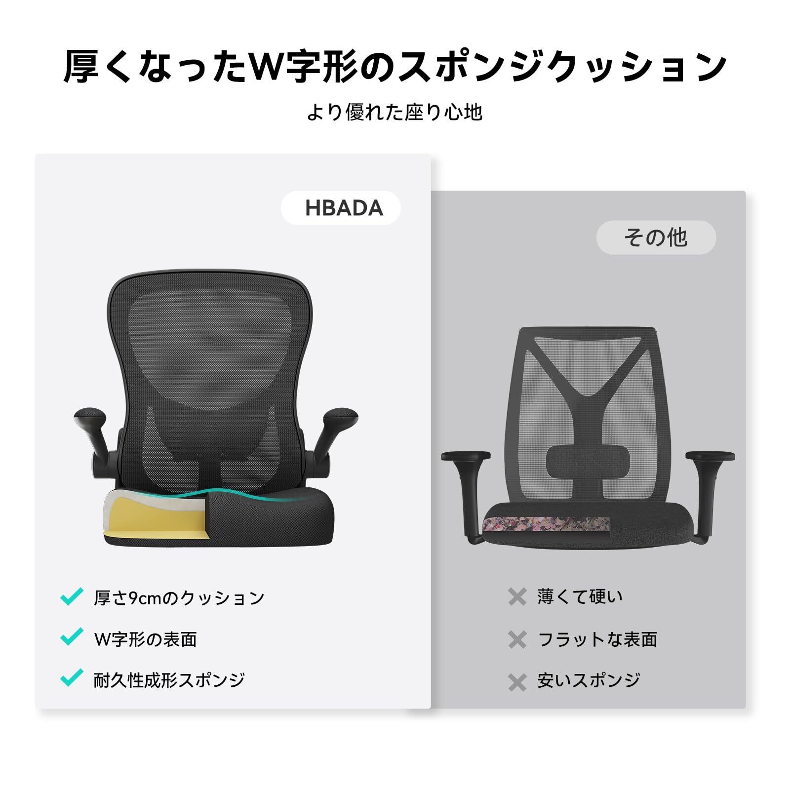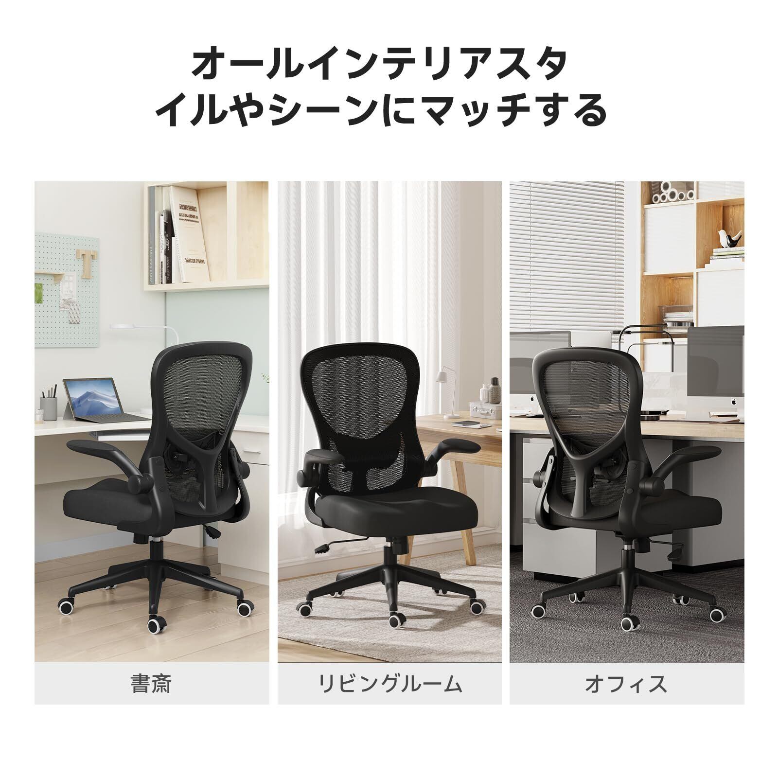【数量限定】Hbada オフィスチェア デスクチェア 椅子 チェア イス パソコンチェア いす 跳ね上げ式アームレスト ランバーサポート コンパクト ワークチェア 約105度ロッキング 通気性 pcチェア 事務椅子 360度回転 座面昇降 メッシュチェア テレワーク 強化ナイロン樹脂ベース 静音PUキャスター J301 ブラック