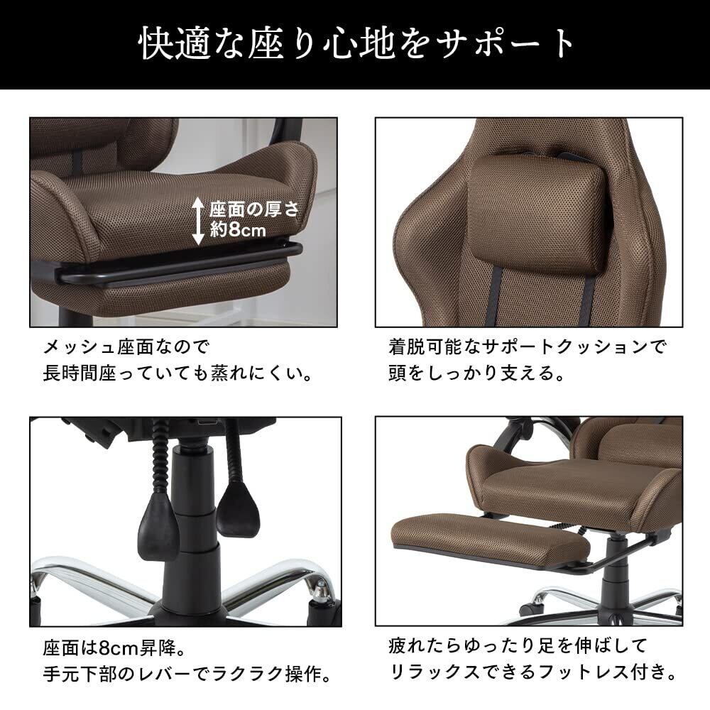 アイリスプラザ オフィスチェア ゲーミングチェア デスクチェア ゲーム用チェア パソコンチェア 無段リクライニング ひじ掛け付き 無段階昇降 メッシュ OFC-020 ブラウン
