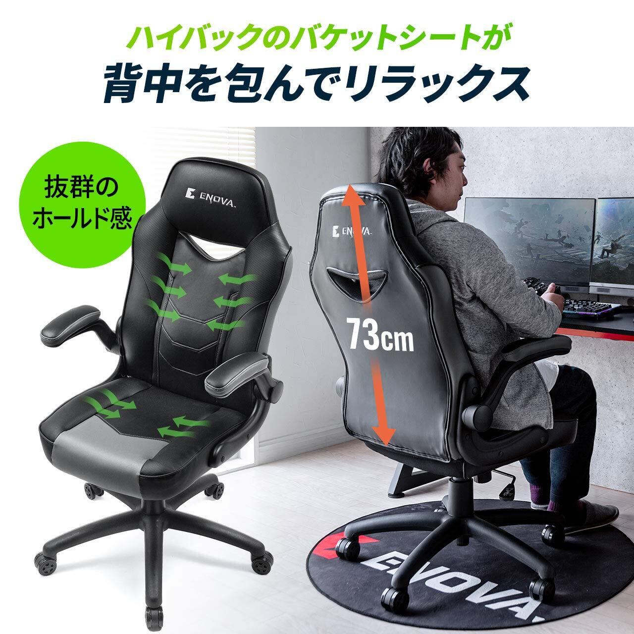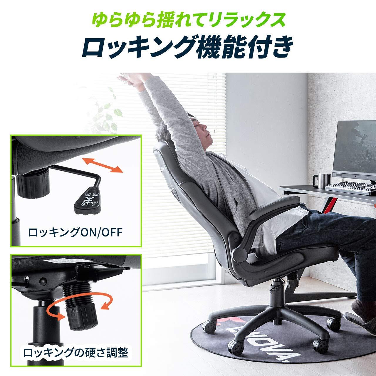 サンワダイレクト ゲーミングチェア 跳ね上げ式アームレスト ハイバック ロッキング ウレタンキャスター 150-SNCL020