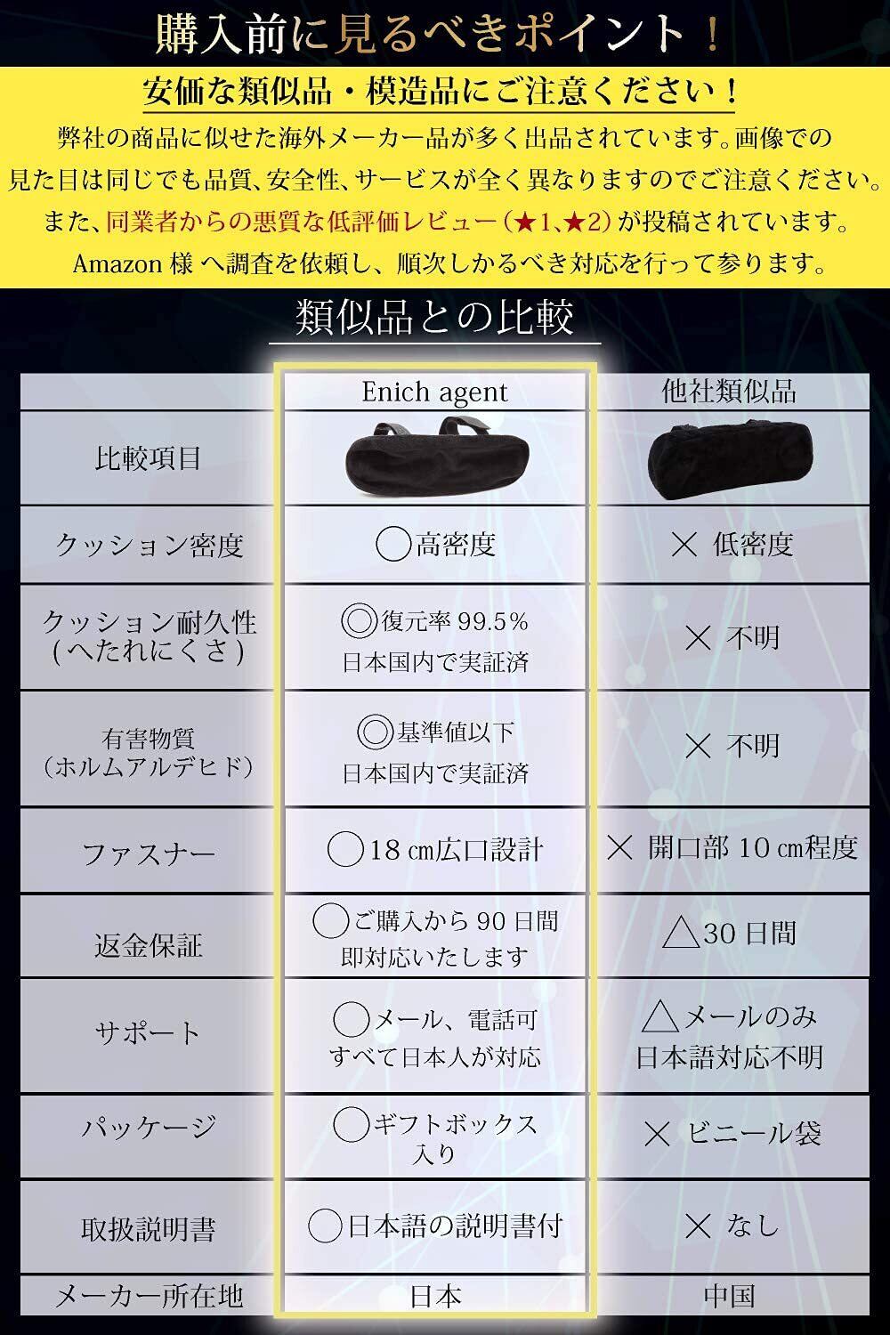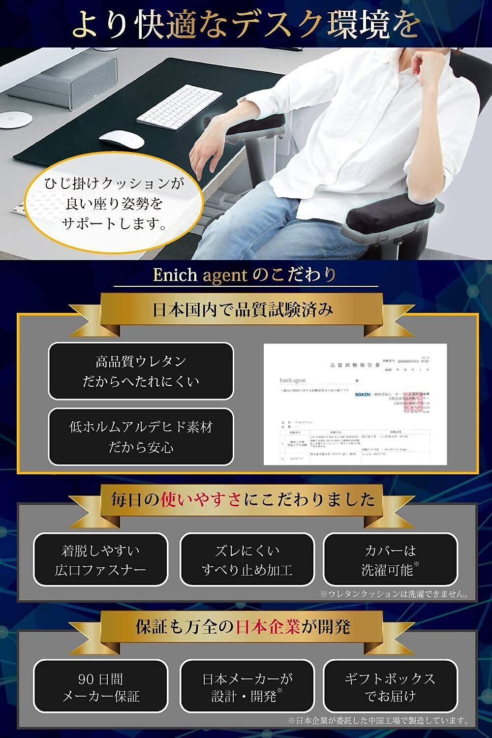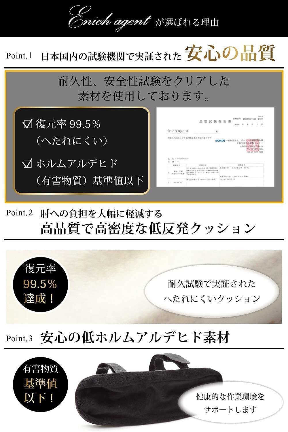 【高品質な高密度ウレタンを採用】 Enich agentのひじ置きクッションは他メーカーで販売されているものと比べて高品質な高密度ウレタンを採用しています。品質の高さは日本国内で実施した品質試験の結果でも証明されています。見かけは同じでも耐久性、使い心地がまったく違うEnich agentのひじ置きクッションをぜひ体感してみてください。