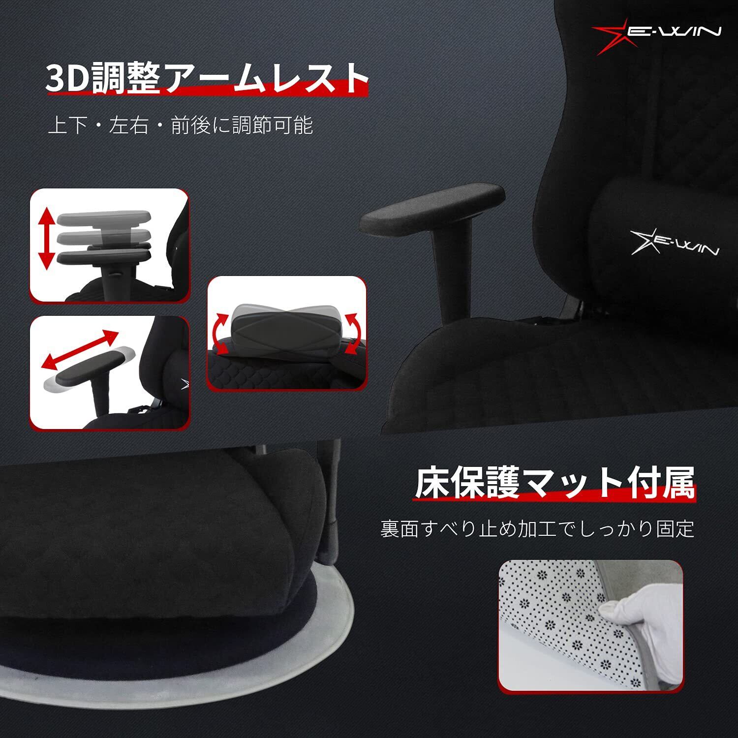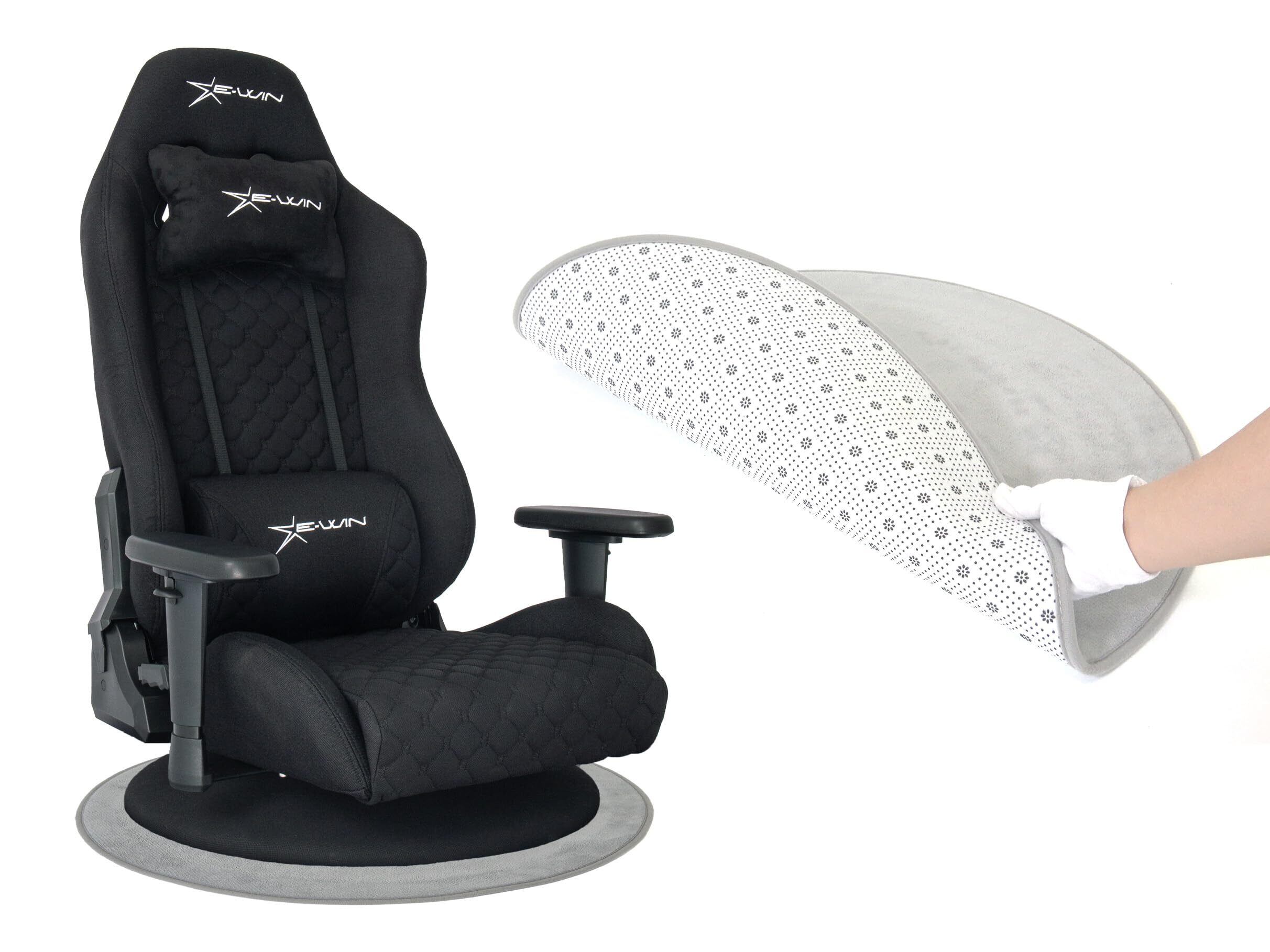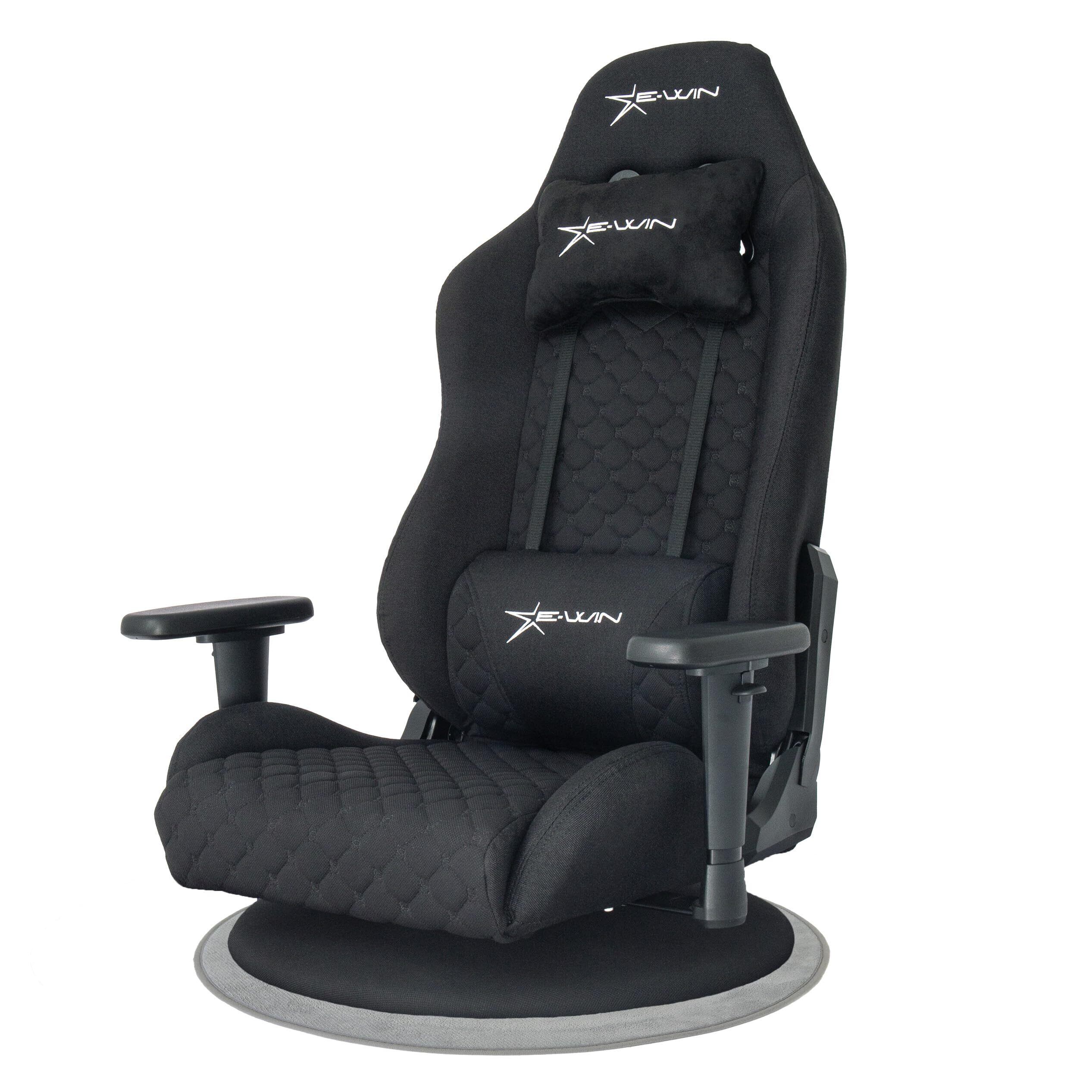 E-WIN ゲーミング座椅子 ゲーミングチェア 座椅子 ファブリック メッシュ 布地 通気性 蒸れない マット付き 360° 回転 リクライニング ひじ掛け 高さ調整 耐荷重120㎏ 畳 腰痛対策 肉厚 快適 黒 ブラック Z9-BK【メーカー保証:1年】