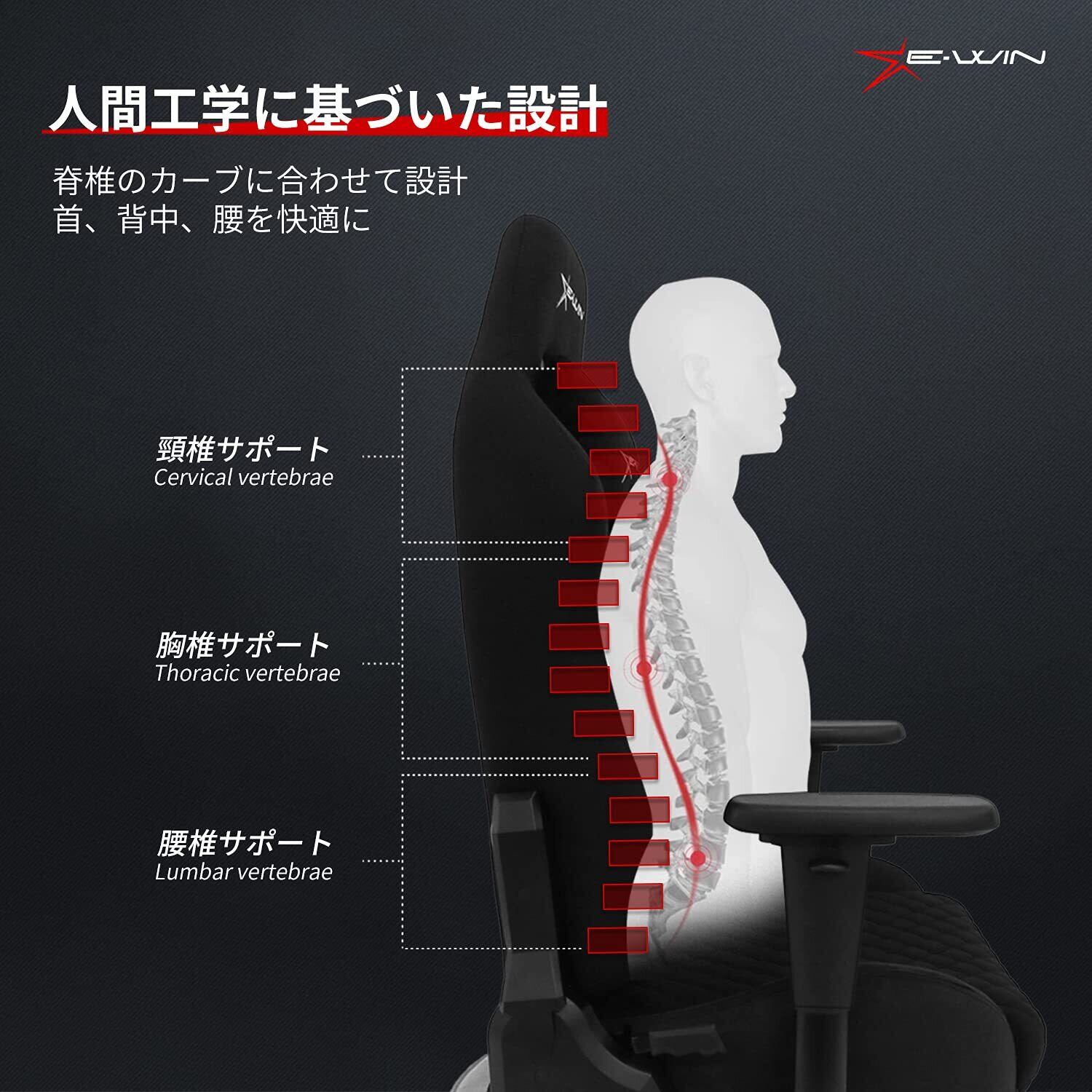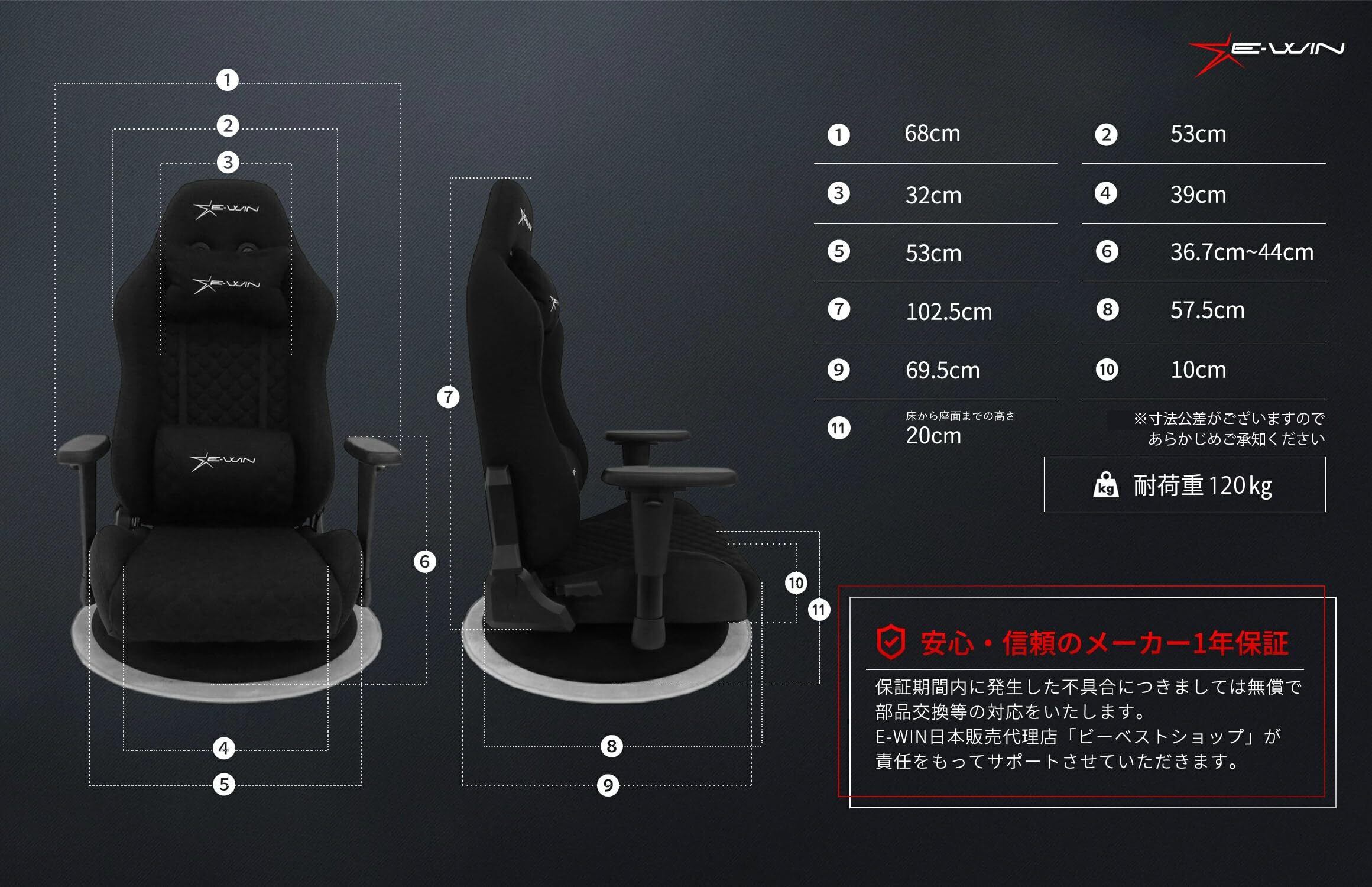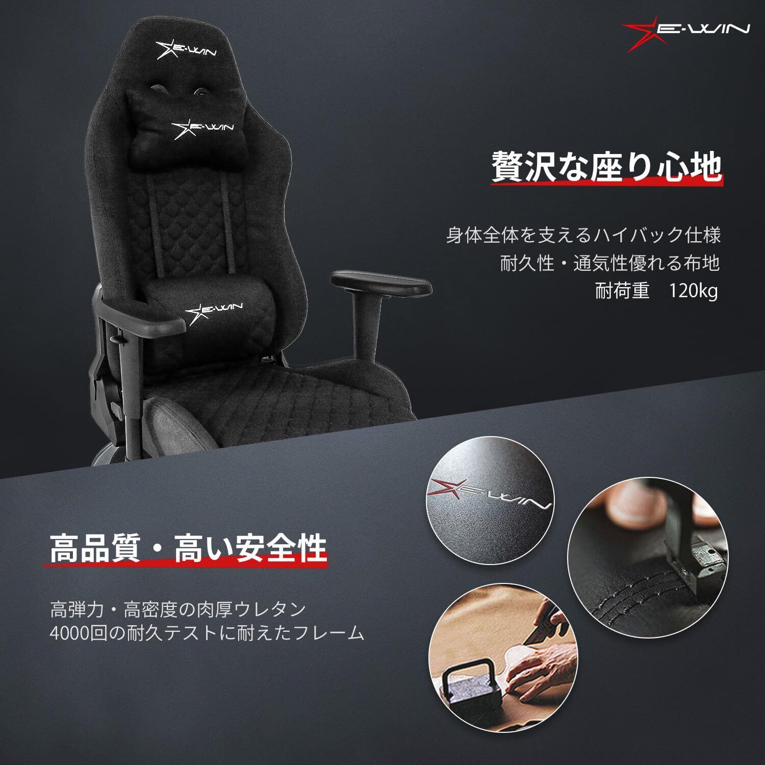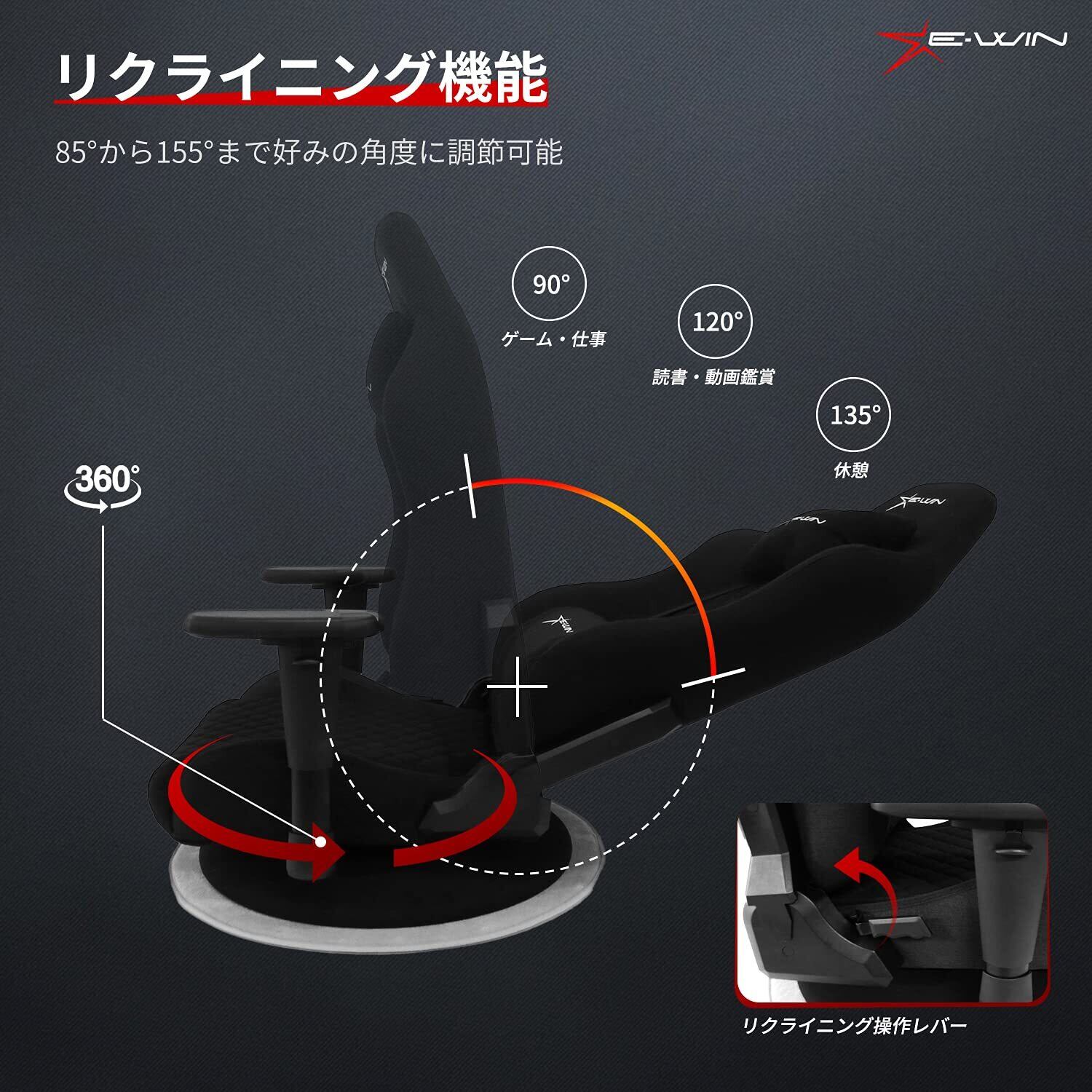 E-WIN ゲーミング座椅子 ゲーミングチェア 座椅子 ファブリック メッシュ 布地 通気性 蒸れない マット付き 360° 回転 リクライニング ひじ掛け 高さ調整 耐荷重120㎏ 畳 腰痛対策 肉厚 快適 黒 ブラック Z9-BK【メーカー保証:1年】