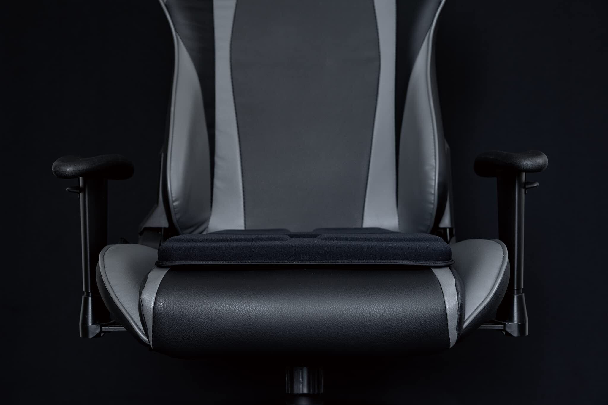 ゲーミングチェアのシートに合わせたサイズに設計。ジェルと<br>ウレタンの二層構造で厚みを抑え、視点を変えず、ゲーミング<br>チェアの機能をそのままに座り心地UP!
