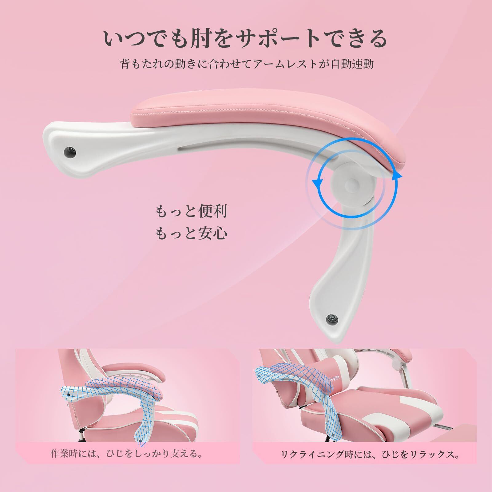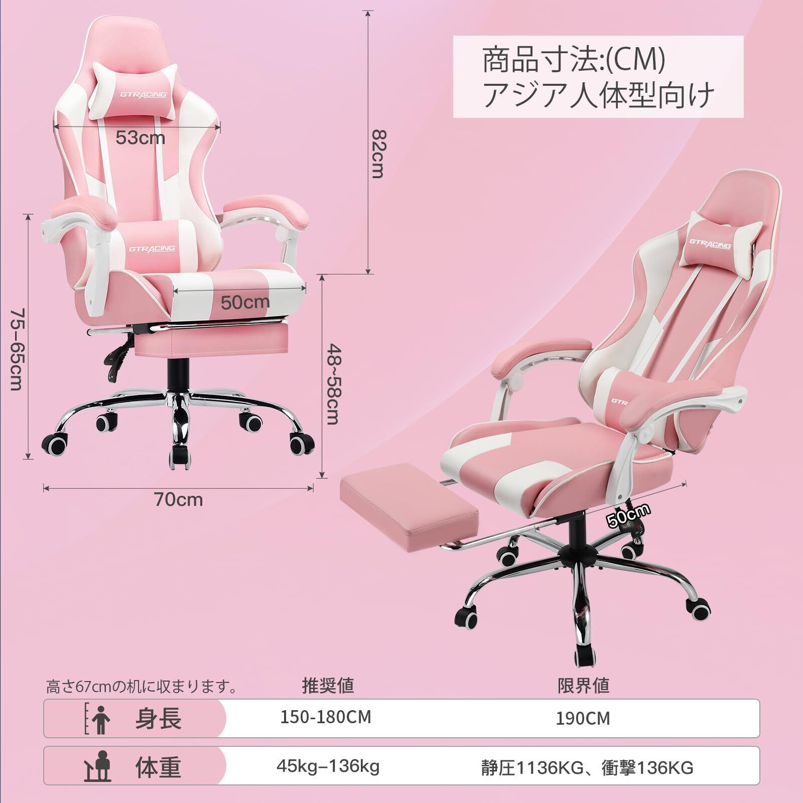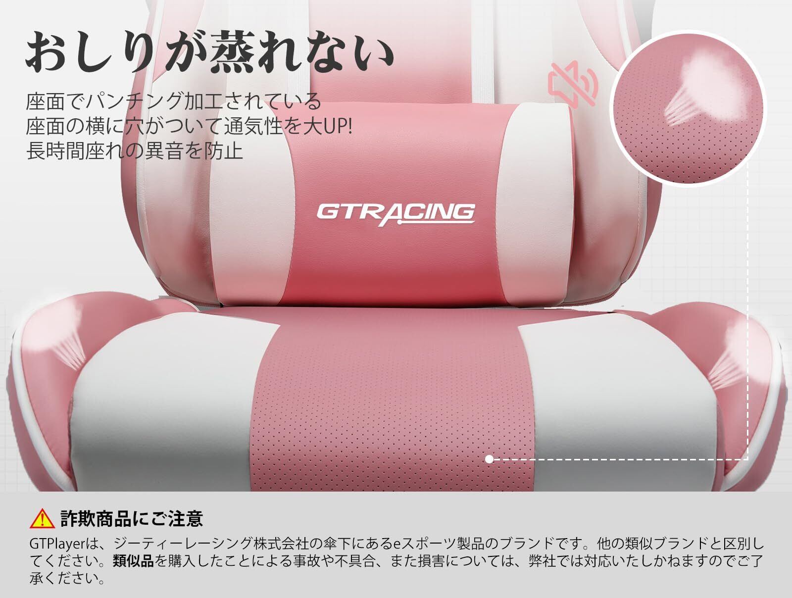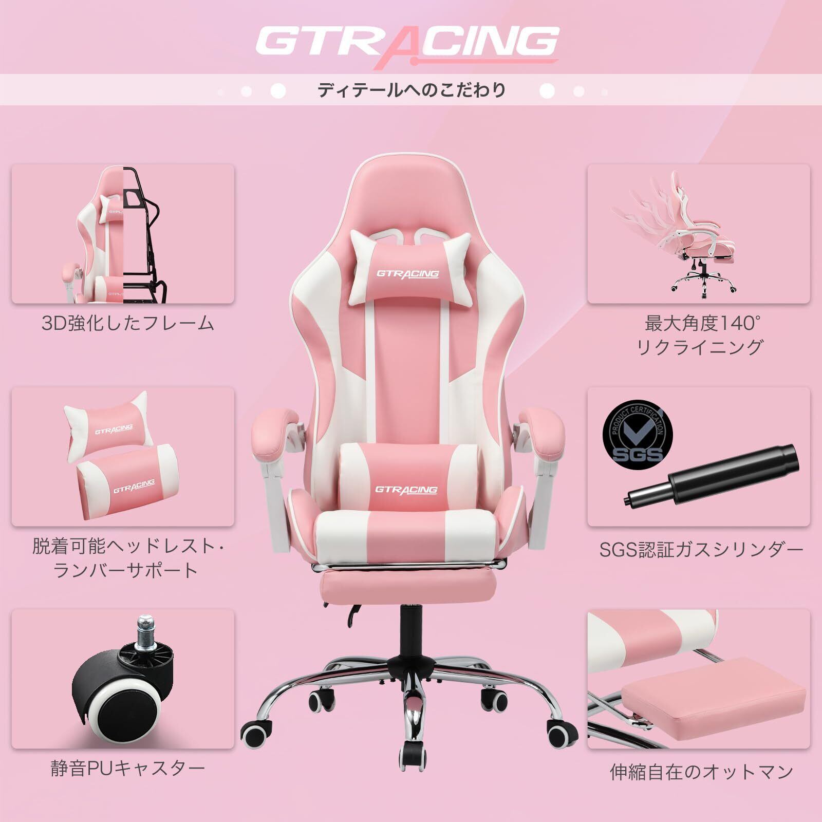 GTRacing ゲーミングチェア オットマン付き デスクチェア pcチェア 椅子 140°リクライニング パソコンチェア イス テレワーク デスクチェア ゲームチェア ハイバック ヘッドレスト ひじ掛け付き PUレザー 気孔付き皮革 蒸れない座面 (GTPlayerシリーズPL800-PINK)GT800-PK-635