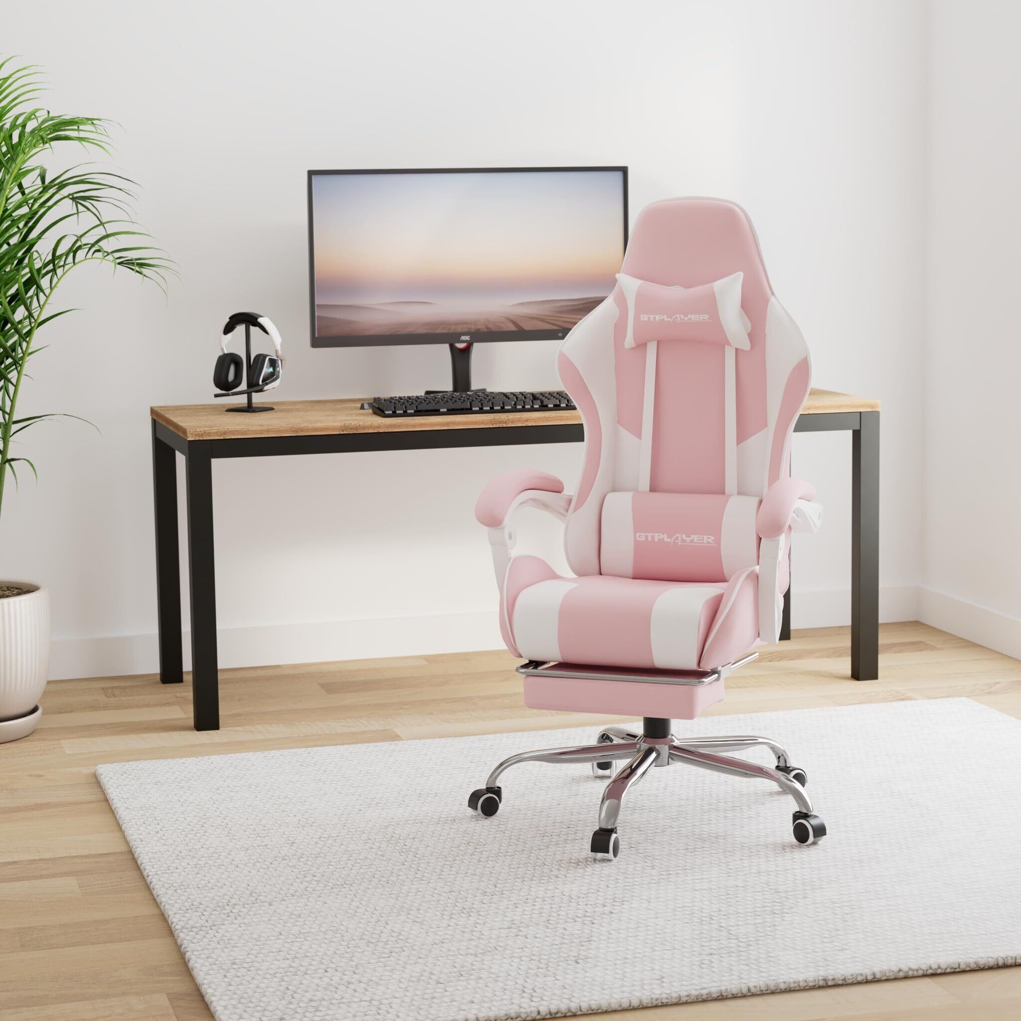 【2022最新】GTRacing ゲーミングチェア オットマン付き デスクチェア pcチェア 椅子 140°リクライニング パソコンチェア イス テレワーク デスクチェア ゲームチェア ハイバック ヘッドレスト ひじ掛け付き PUレザー 気孔付き皮革 蒸れない座面 (GTPlayerシリーズPL800-PINK)GT800-PK-635 | paghag