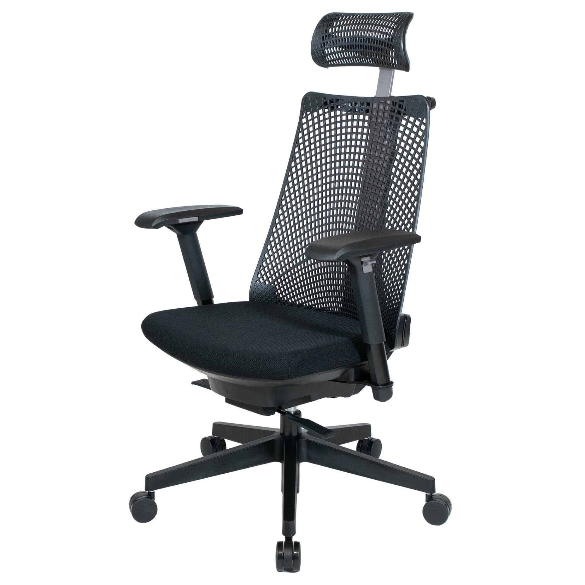 【全身を支えるエクストラハイバック】背もたれとヘッドレストにはメッシュ形状で通気性に優れた高機能エラストマー(TPE)を採用。柔軟性のあるエラストマー素材の背もたれは背中にフィットする形状に成型されているので、背骨のS字カーブにフィットし腰への負担を軽減。快適な座り心地を実現しました。