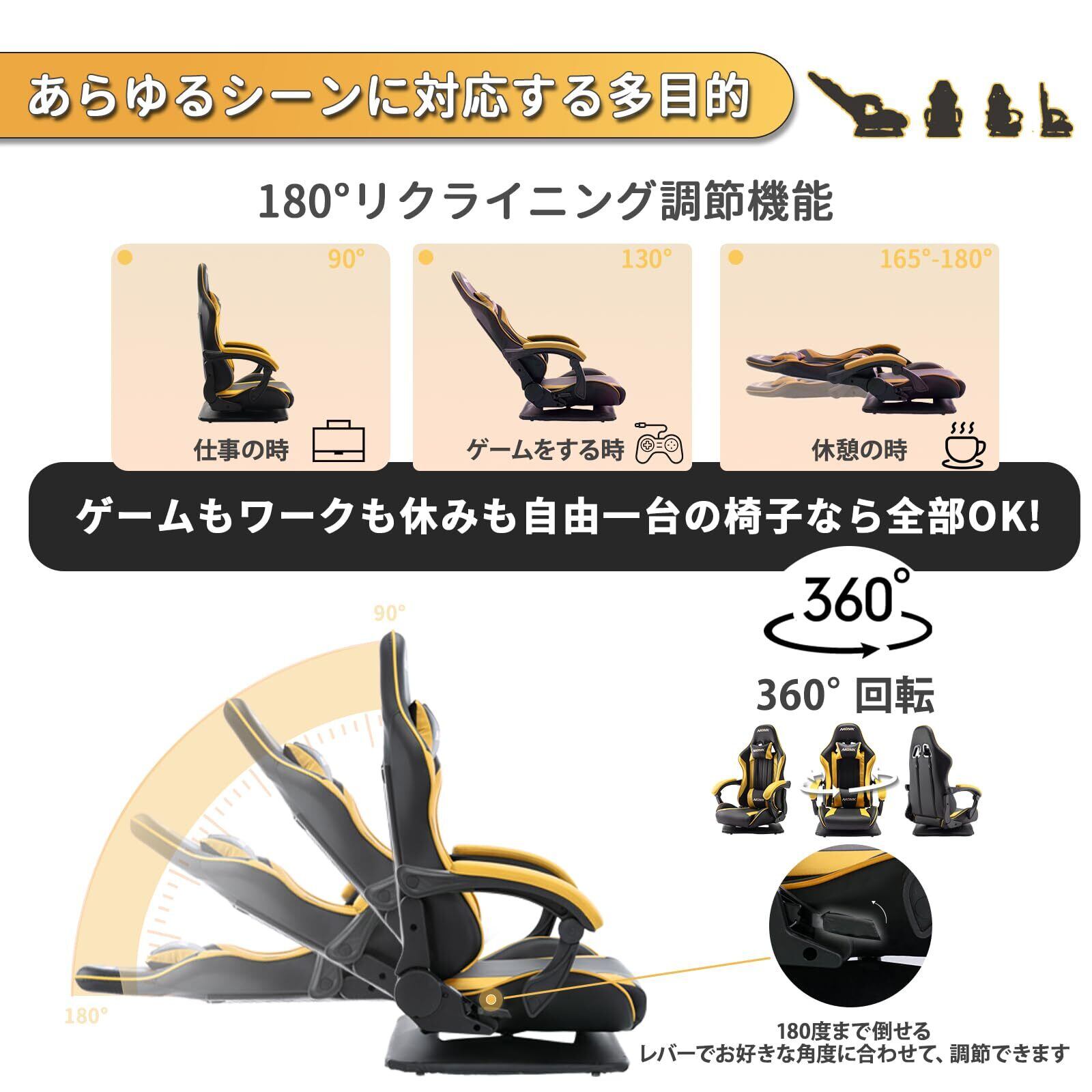 【多機能のゲーミングチェア】最大180度まで調整可能、特別なスクラッチ/滑り止めパッドが付いた360度回転機能で、お好みの方向にチェアを回転させることができます。360度回転機能により、スムーズに立ち上がって物を取ることができます。