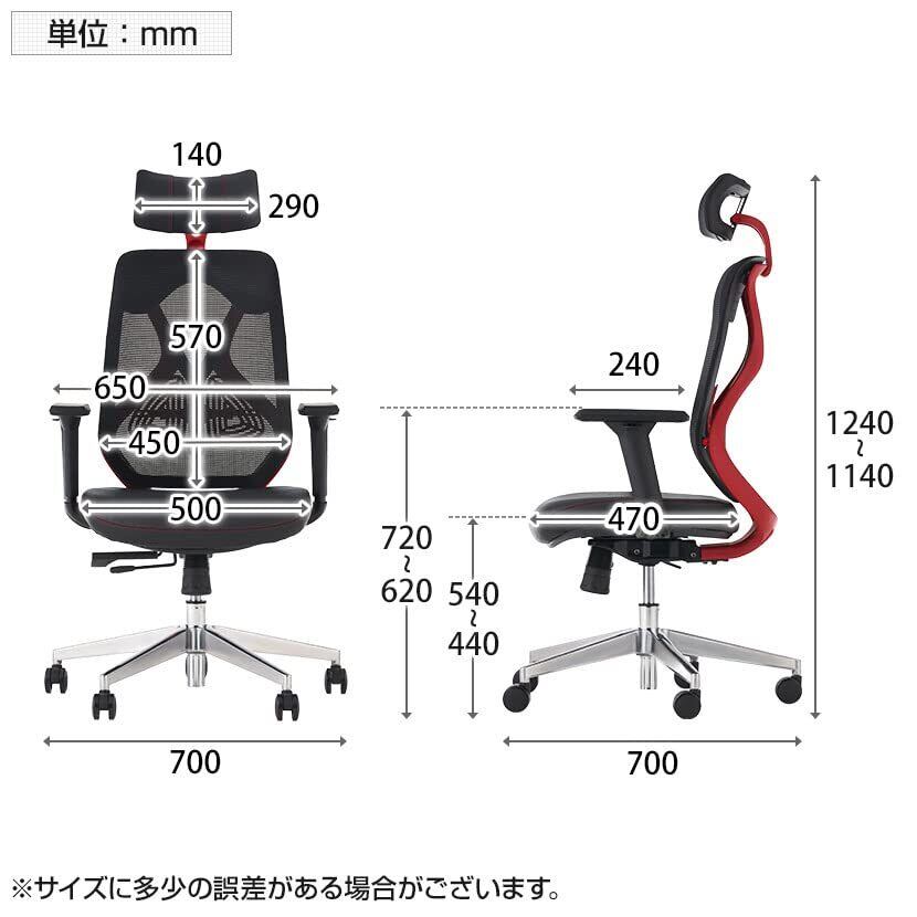 機能:上下昇降、座面位置調整(スライド機能) 、背座シンクロロッキング機能&3段階固定可能 、ロッキング強弱調節機能