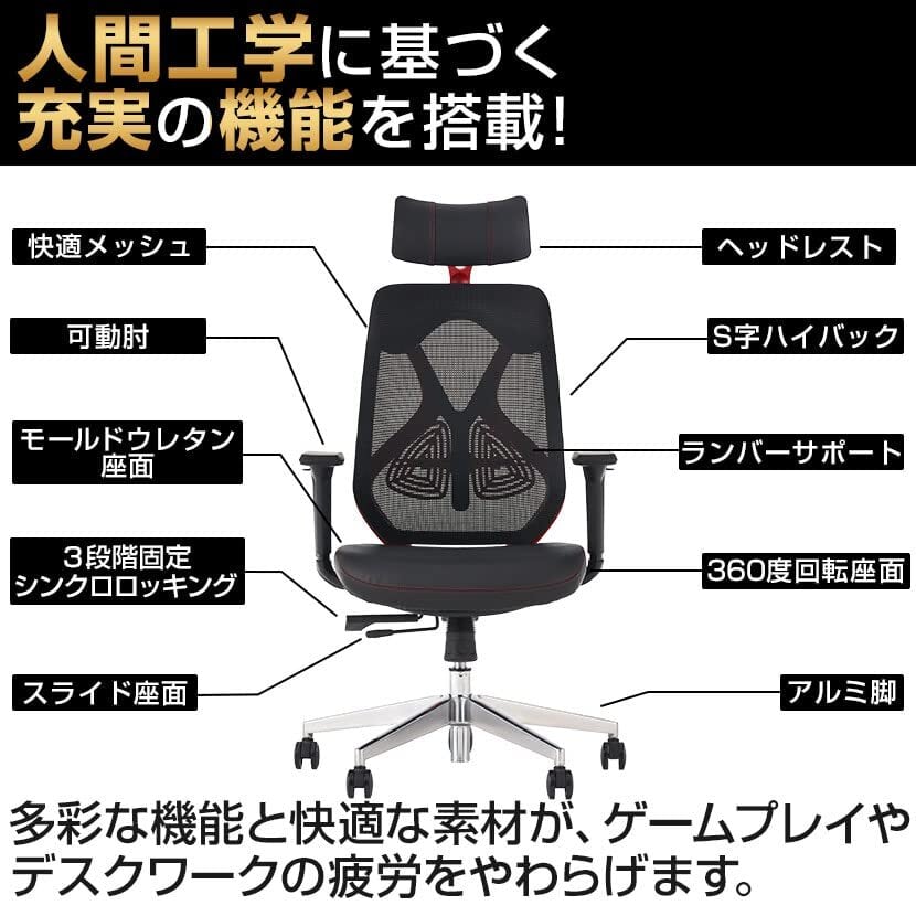 ランバーサポートやスライド座面、シンクロロッキングなど、個々の体に合わせてサポートする機能が満載