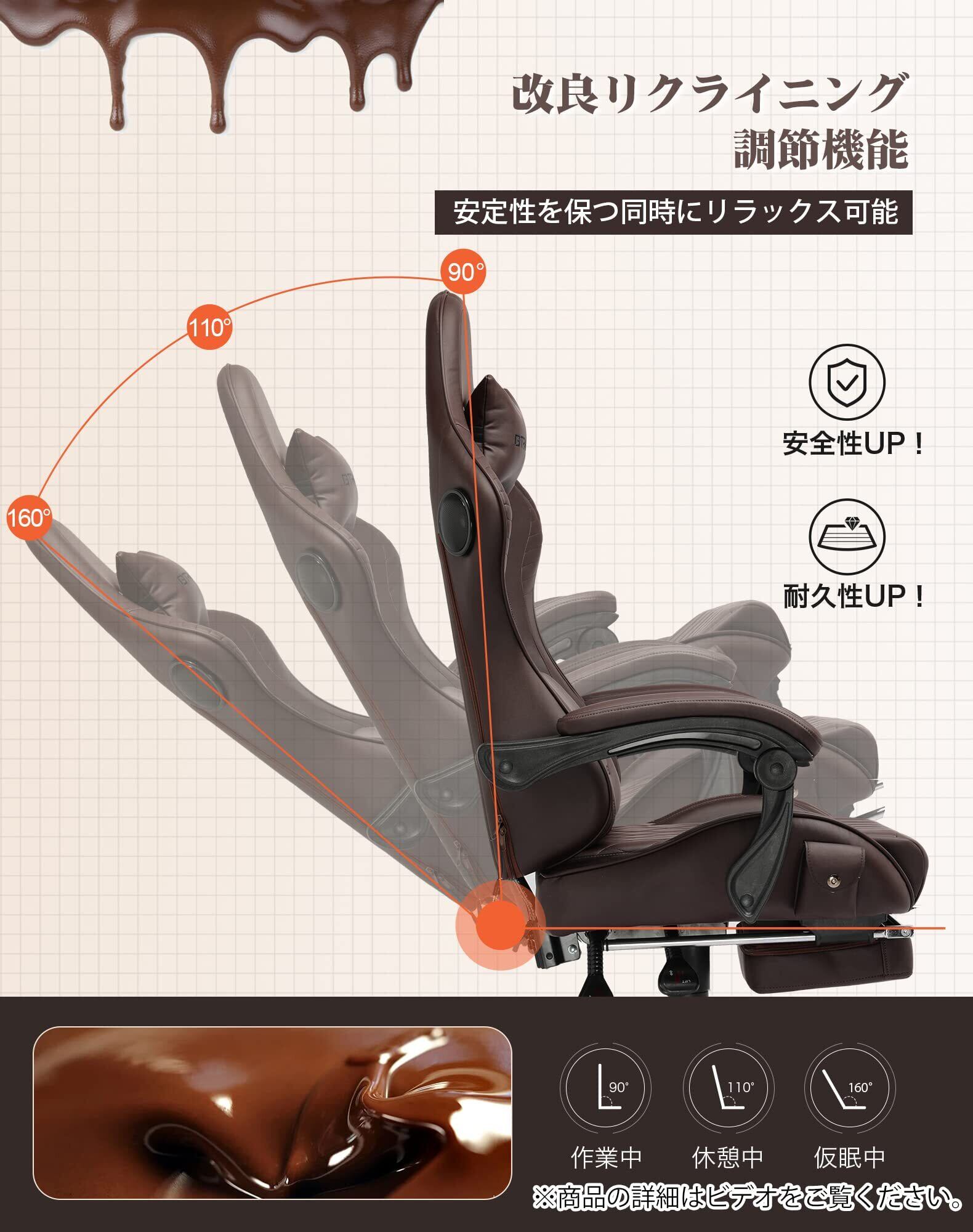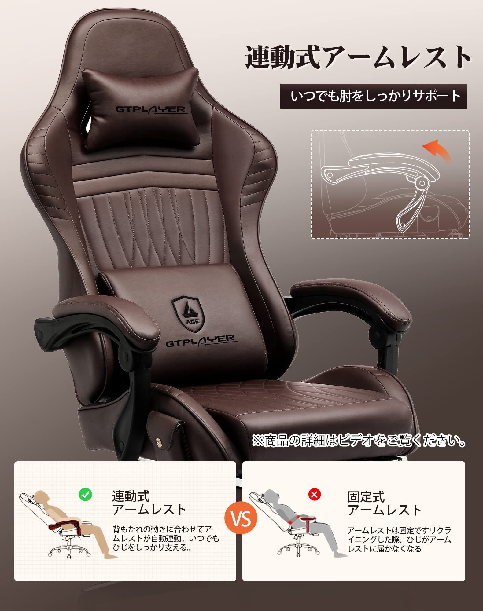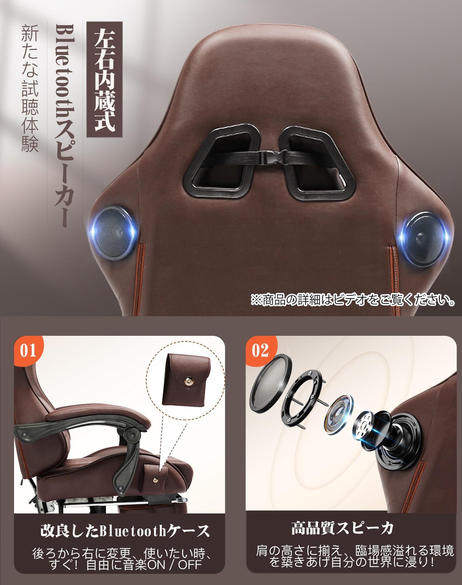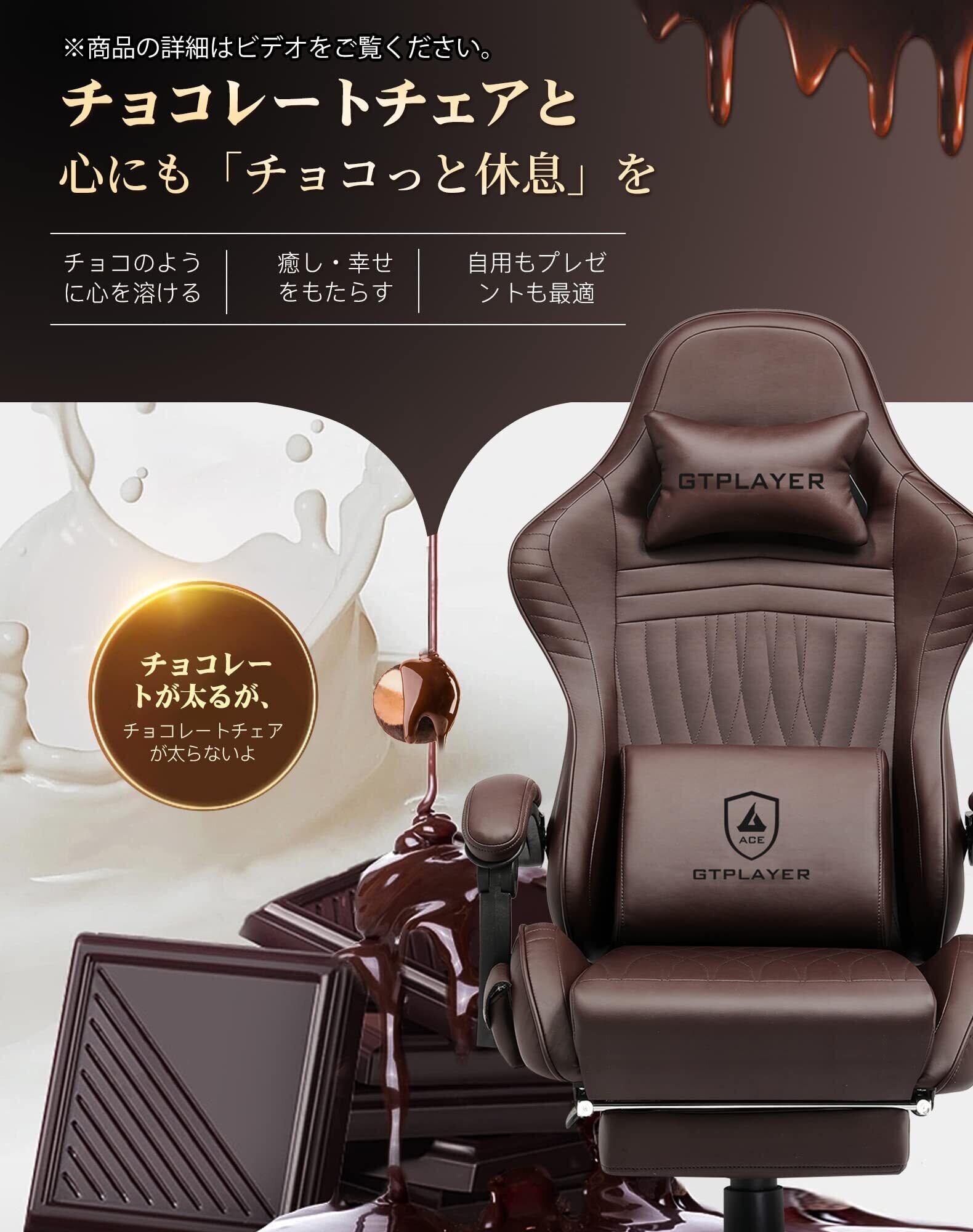 【2022最新】GTPLAYER ゲーミングチェア スピーカー付き オットマン サラウンド効果 135°リクライニング 【チョコレートデザイン】 パソコンチェア デスクチェア オフィスチェア PC椅子 ゲーム用チェア ハイバック ヘッドレスト ひじ掛け付き PUレザー PC/PS4/PS5/XBOX/SWITCH等対応(専用USBアダプタ使用) ACE-PRO-BROWN