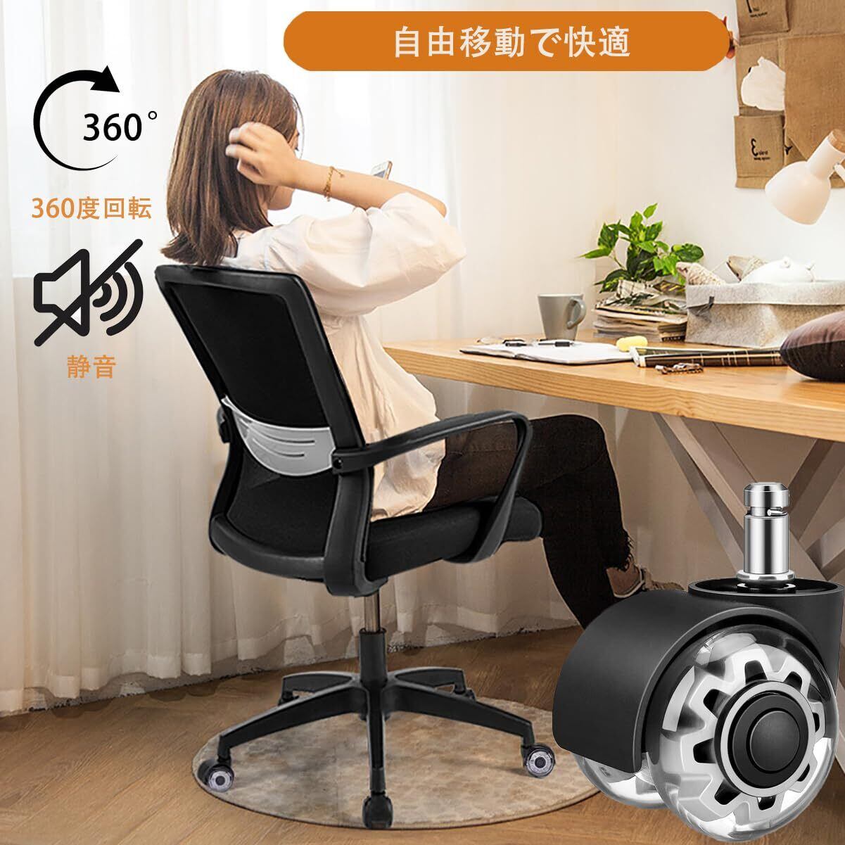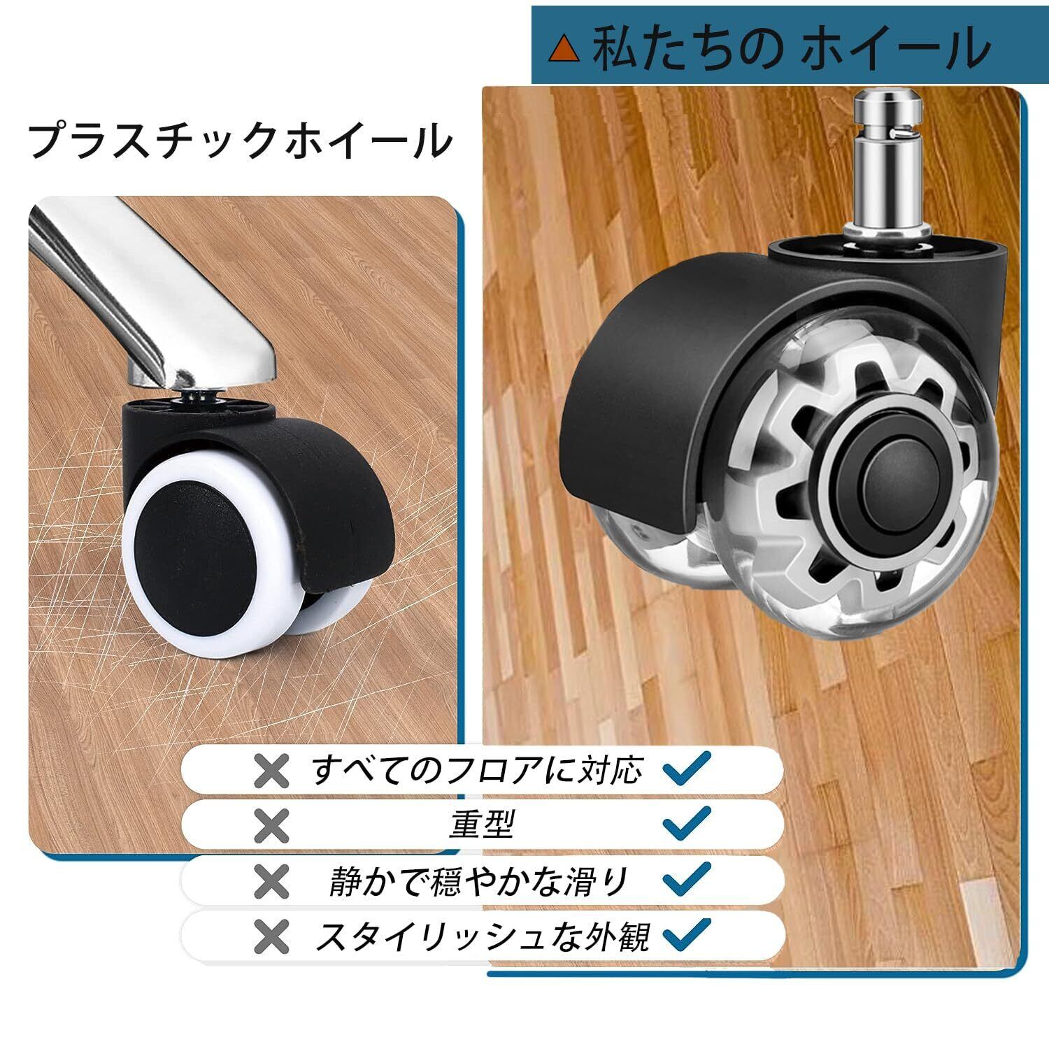 【高性能&高品質】オフィスチェアのキャスターは450kgまで対応可能で、体重の重い方に最適です。 このキャスターには、2つのクリアダブルボール精密ベアリングと衝撃吸収ポリウレタンタイヤが装着されており、移動時の騒音で周囲に迷惑をかけることなく、椅子を完璧な状態に保つことができます!