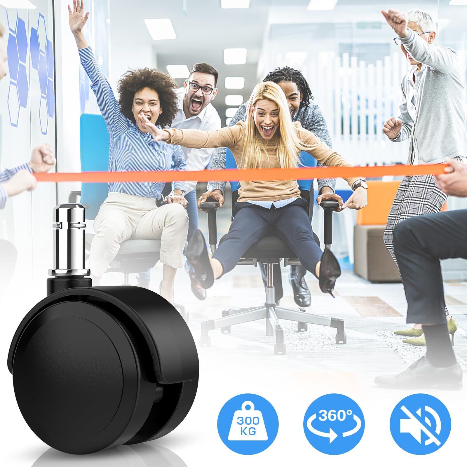 椅子 キャスター、ウレタンキャスター(5点セット)強化素材 高耐荷重 シャフトサイズ11MMX22MM OAオフィスチェア・ゲーミングチェア用 椅子 キャスター 交換,床にキズつきにくい、静音型、木材やタイルなど床に適用 (ブラック)