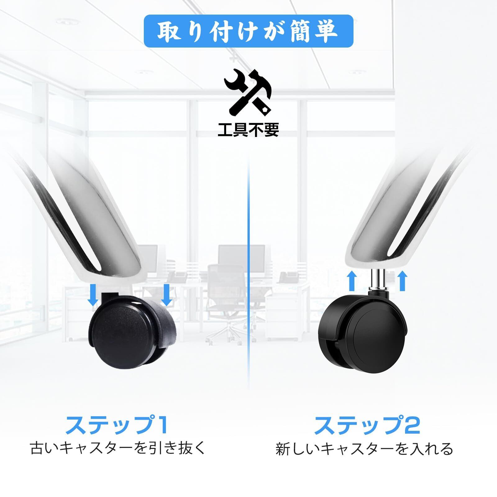 【静音性と保護性】椅子 キャスターは衝撃を吸収するポリウレタン製で、他の人の邪魔にならず、静かにスムーズに滑ります。 それだけでなく、柔らかいポリウレタン製のキャスター替えは、ハードウッド、カーペット、タイルなどの床にも使用でき、傷のない使用感を提供し、床をより良く保護します。