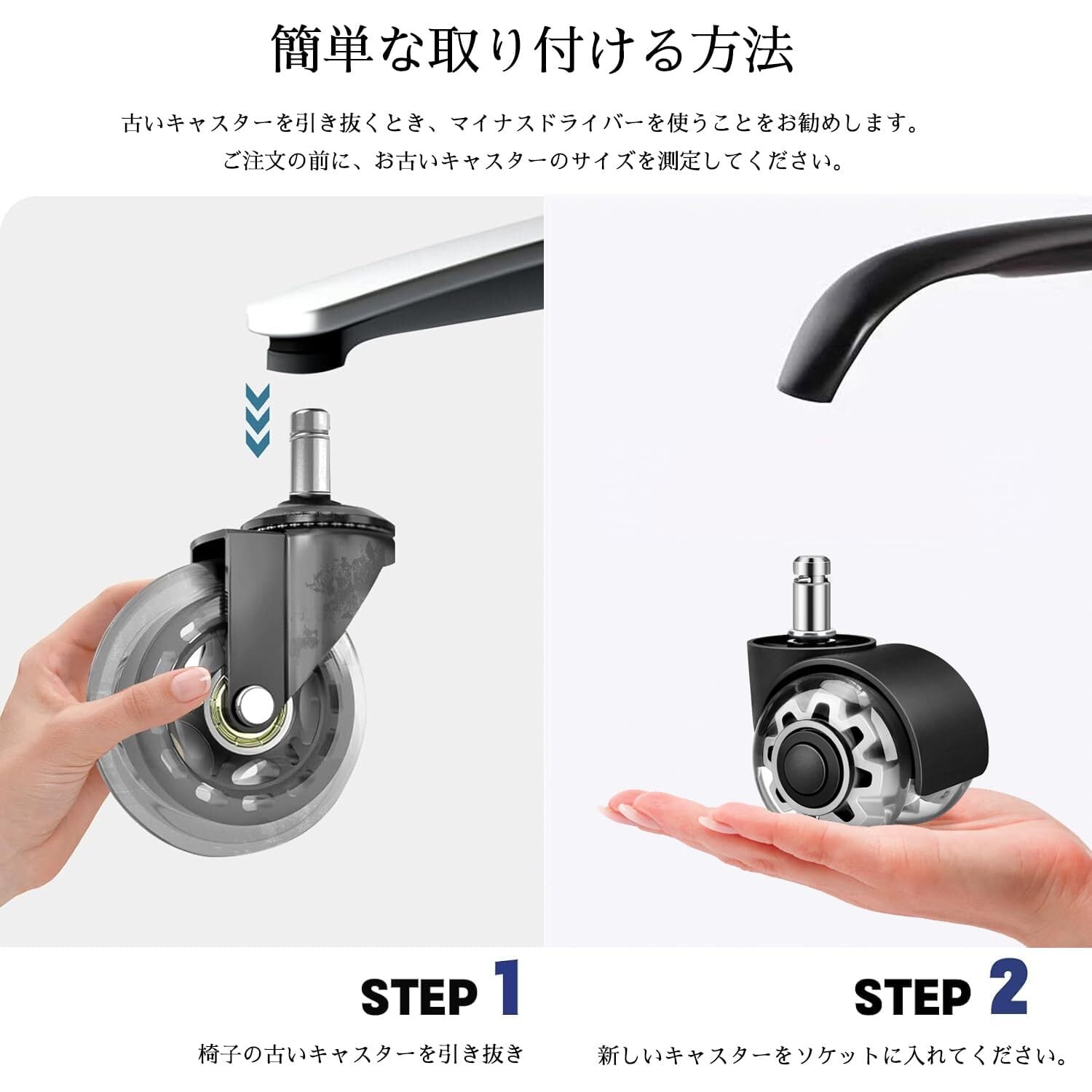 【幅広い適用性】:最大99%の普遍的な標準サイズのねじ込み式 ゲーミングチェア、オフィスチェア、パソコンチェア、メッシュバックチェアなどの椅子だけではないし、ショッピングカート、 オフィスチェア、医用ベッド適用できます。IKEA (イケア)適用できません。