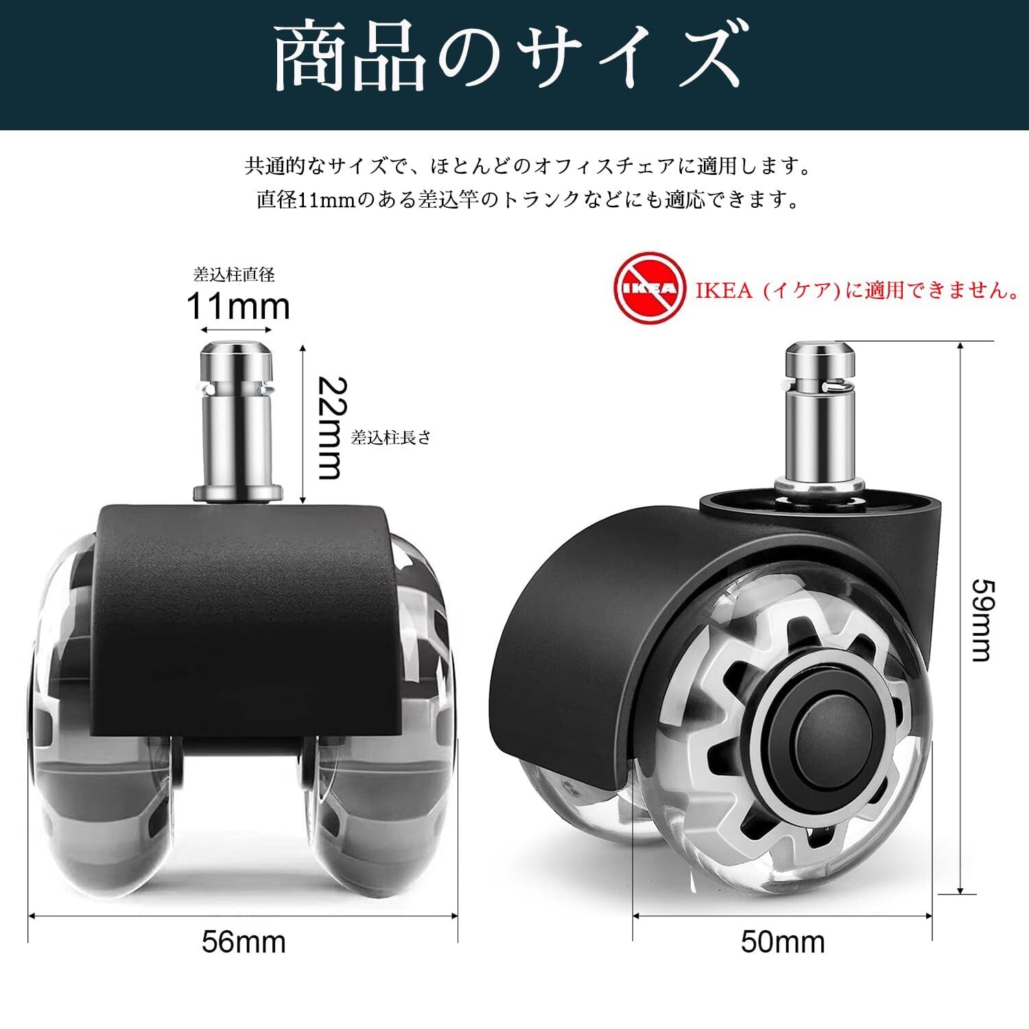 【キャスターのサイズ】椅子 キャスターの差込柱直径:11mm 長さ:22mm キャスター高さ:95mm チェア交換用キャスター (IKEAチェアと10MMの椅子を除く)