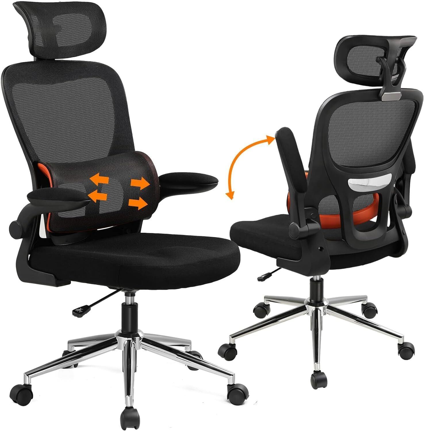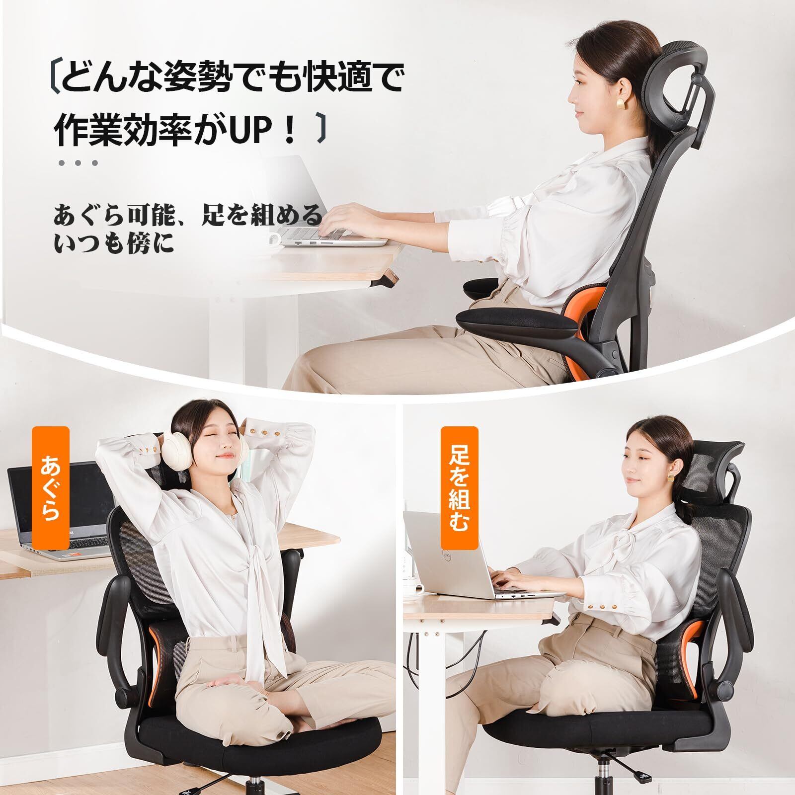 ComHoma デスクチェア オフィスチェア 椅子 テレワーク疲れない 小型ゲーミングチェア メッシュ 人間工学 ランバーサポート【反発力ある背もたれ 腰ラク】 跳ね上げ式アームレスト 在宅ワーク 在宅勤務 形状記憶ポリウレタンクッション材 3Dヘッドレスト ブラック CH124