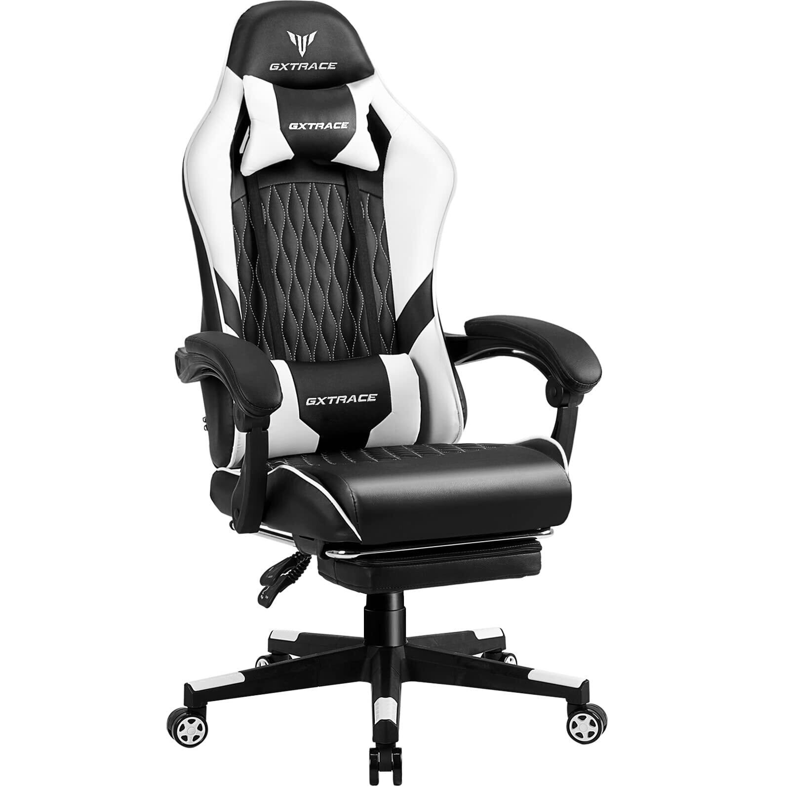 GXTRACE ゲーミングチェア PCゲーミングチェア ゲーム用チェア リクライニング アームレスト ヘッドレスト ランバーサポート オットマン オフィスチェア デスクチェア パソコンチェア 椅子 (White)