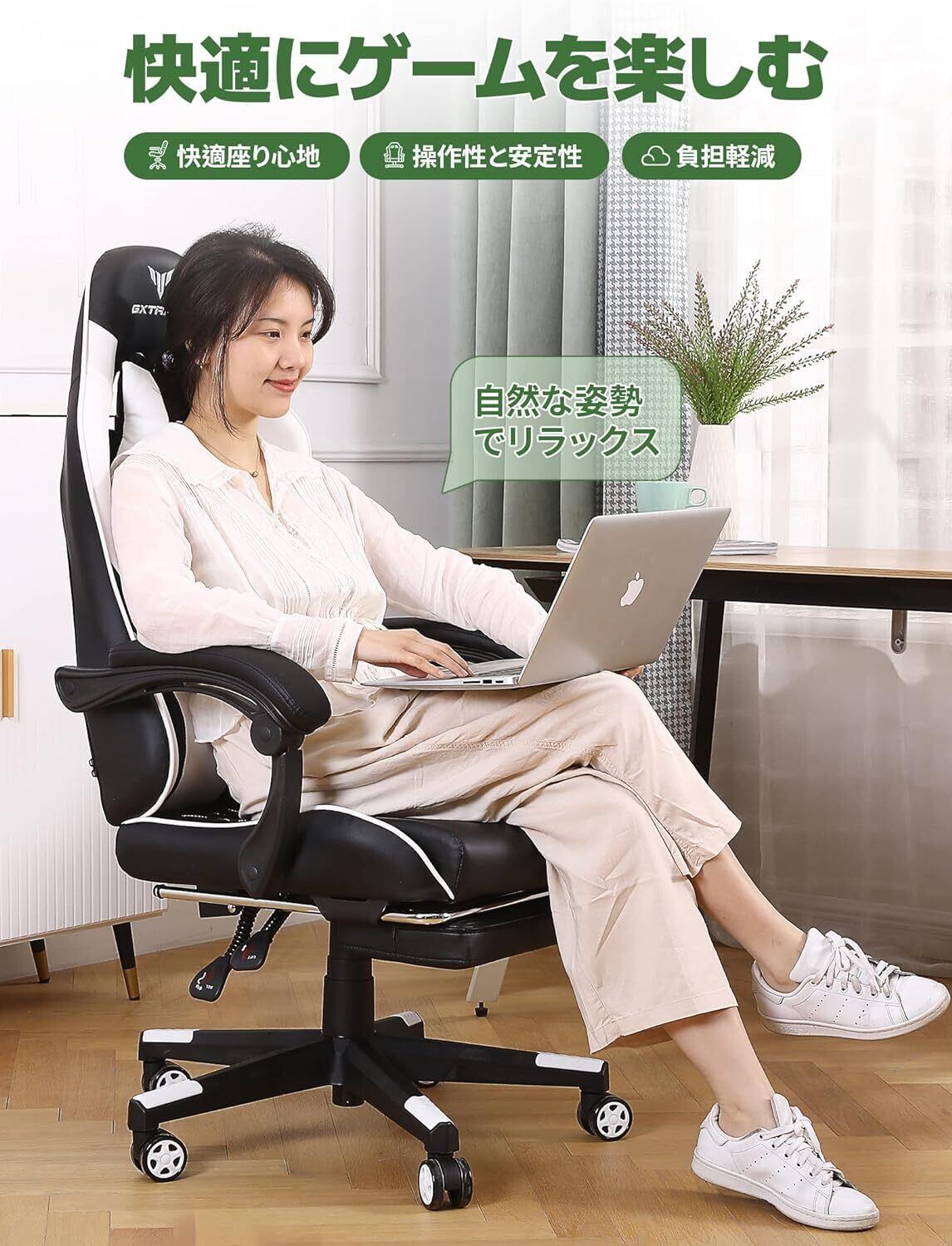 【新春セール】GXTRACE ゲーミングチェア PCゲーミングチェア ゲーム用チェア リクライニング アームレスト ヘッドレスト ランバーサポート オットマン オフィスチェア デスクチェア パソコンチェア 椅子 (White)