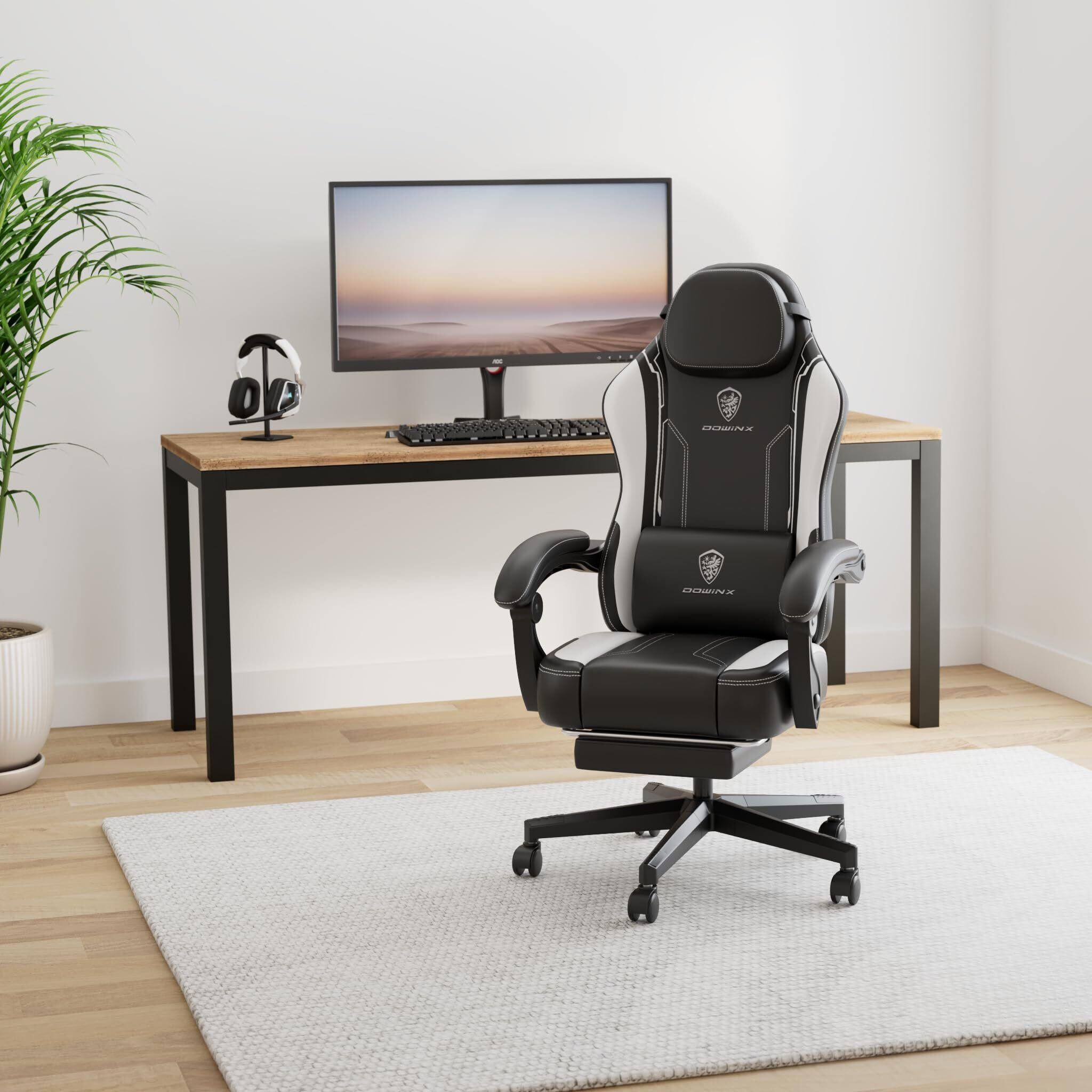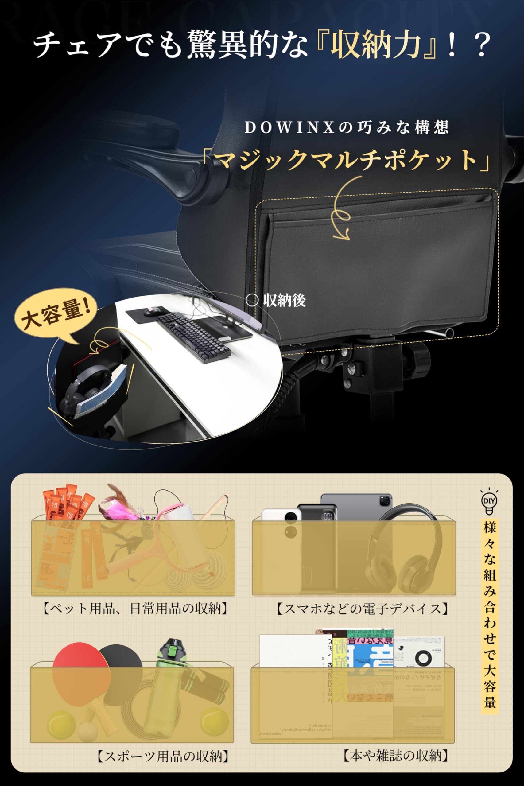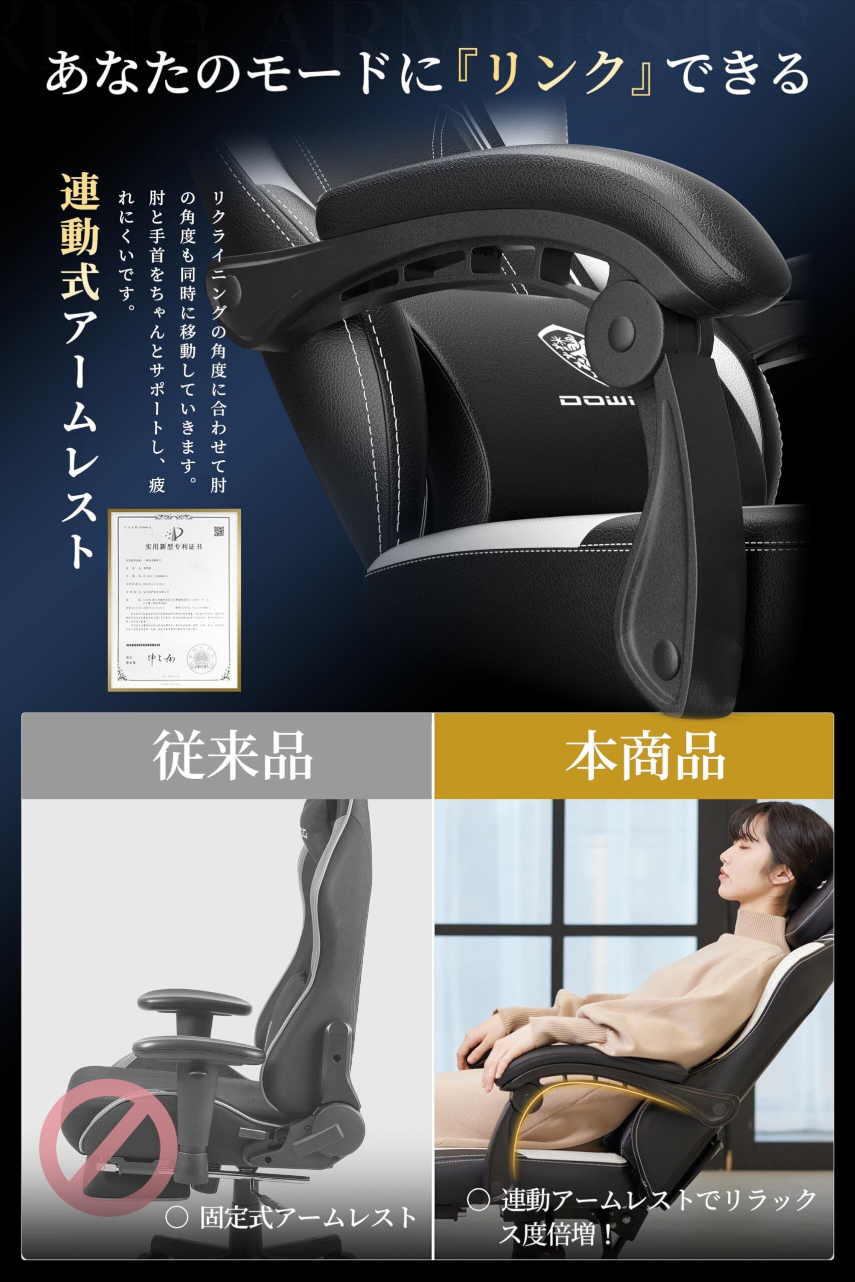Dowinx ゲーミングチェア イス オフィスチェア 幅広座面 デスクチェア オットマン付 椅子 ゲーム用 145°リクライニング ポケットコイル 疲れない パソコンチェア PUレザー ソファー座り心地 テレワーク PCチェア 在宅 リモート 収納 人間工学の王道 おしゃれ ブラック&ホワイト