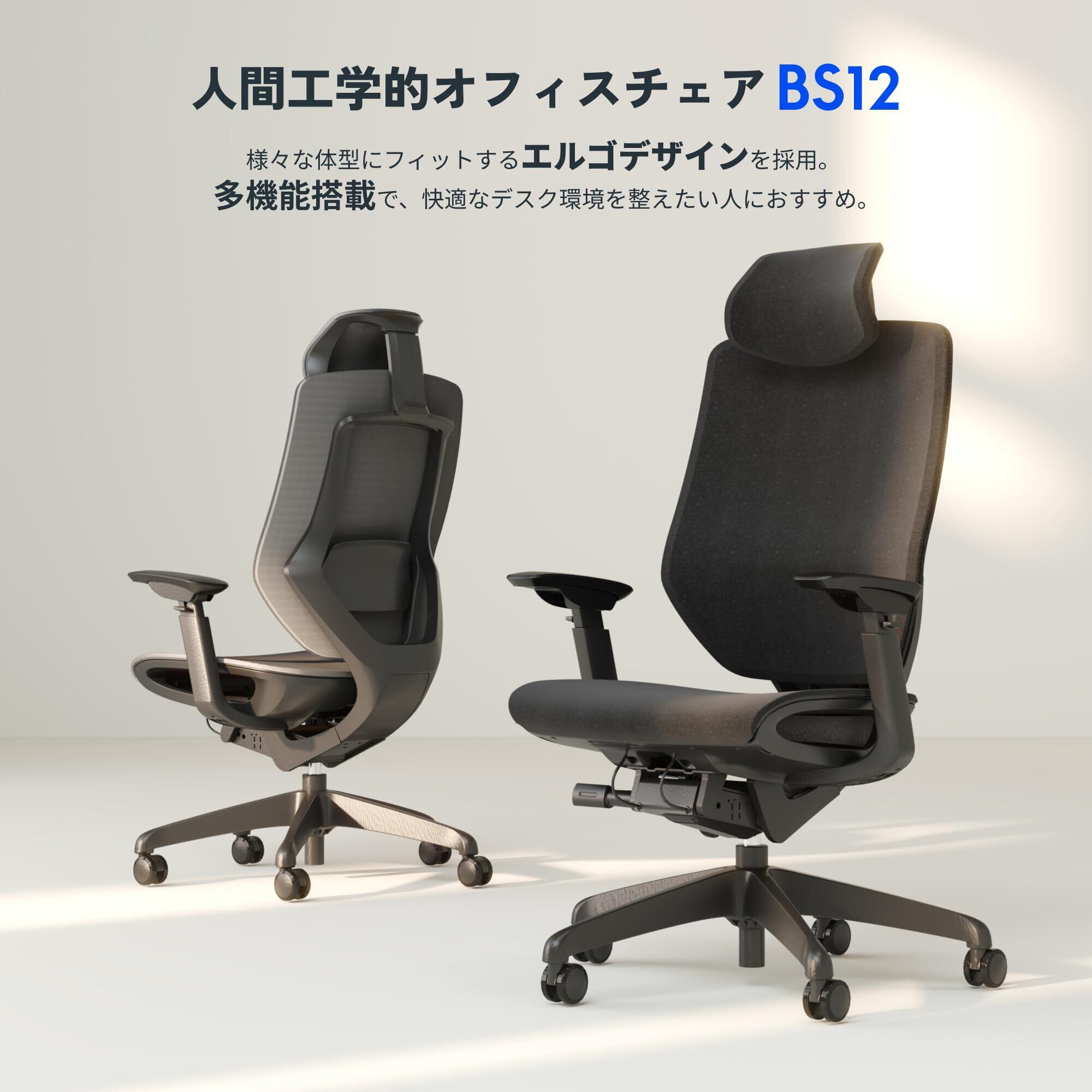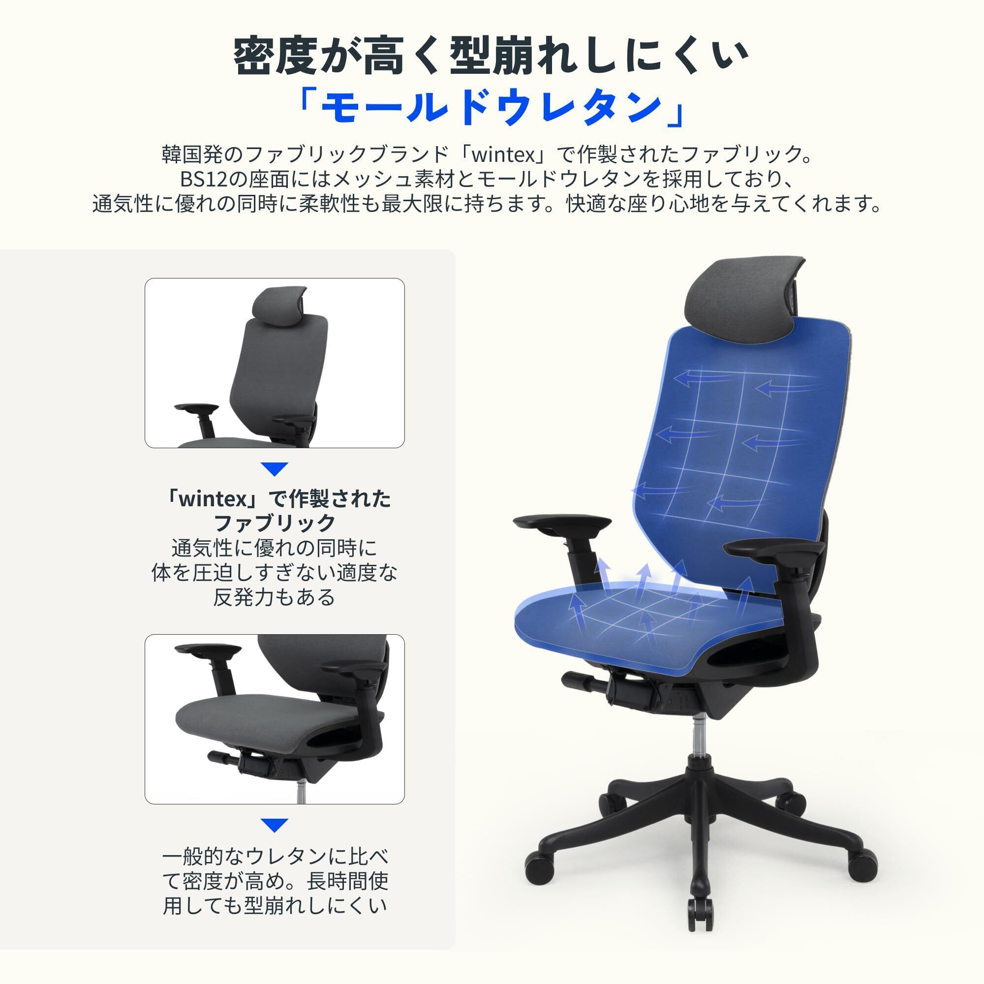 【人間工学的オフィスチェアBS12】韓国発のファブリックブランド「wintex」で作製されたファブリック。様々な体型にフィットするエルゴデザインを採用。多機能搭載で、快適なデスク環境を整えたい人におすすめ。