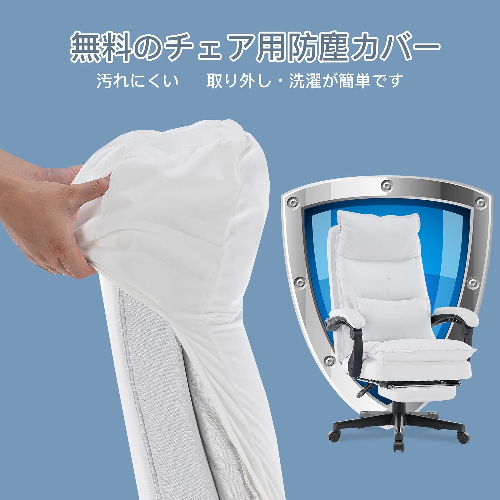 SKYE ゲーミングチェア 布張地 オフィスチェア 肉厚座面 デスクチェア 伸縮可能のオットマン ゲーム用チェア 椅子 テレワーク 通気性 人間工学 高さ調節可能 ひじ掛け付き (ホワイト)