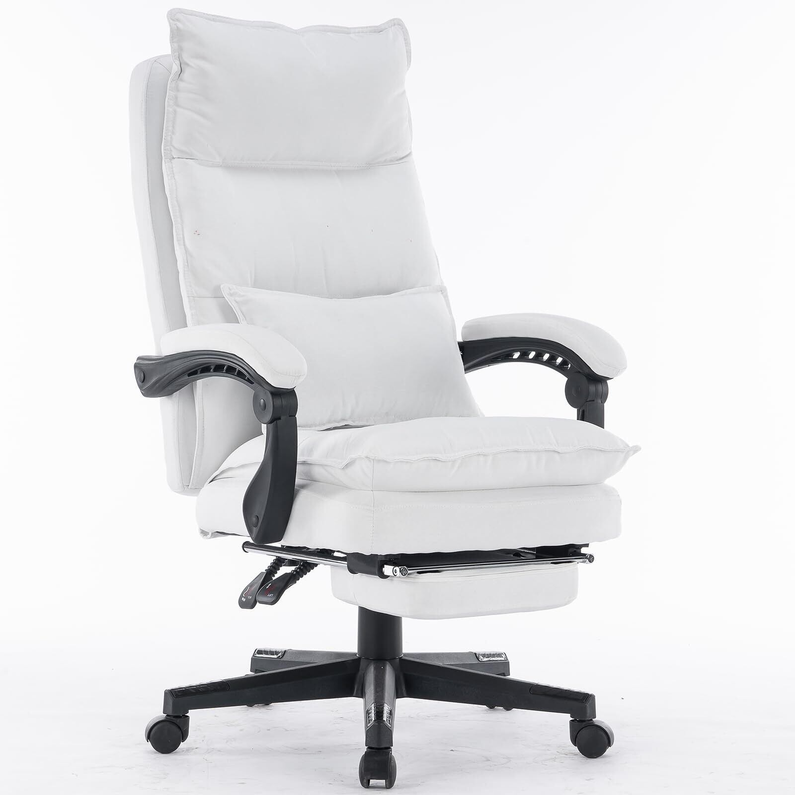 【数量限定】SKYE ゲーミングチェア 布張地 オフィスチェア 肉厚座面 デスクチェア 伸縮可能のオットマン ゲーム用チェア 椅子 テレワーク 通気性 人間工学 高さ調節可能 ひじ掛け付き (ホワイト) | paghag