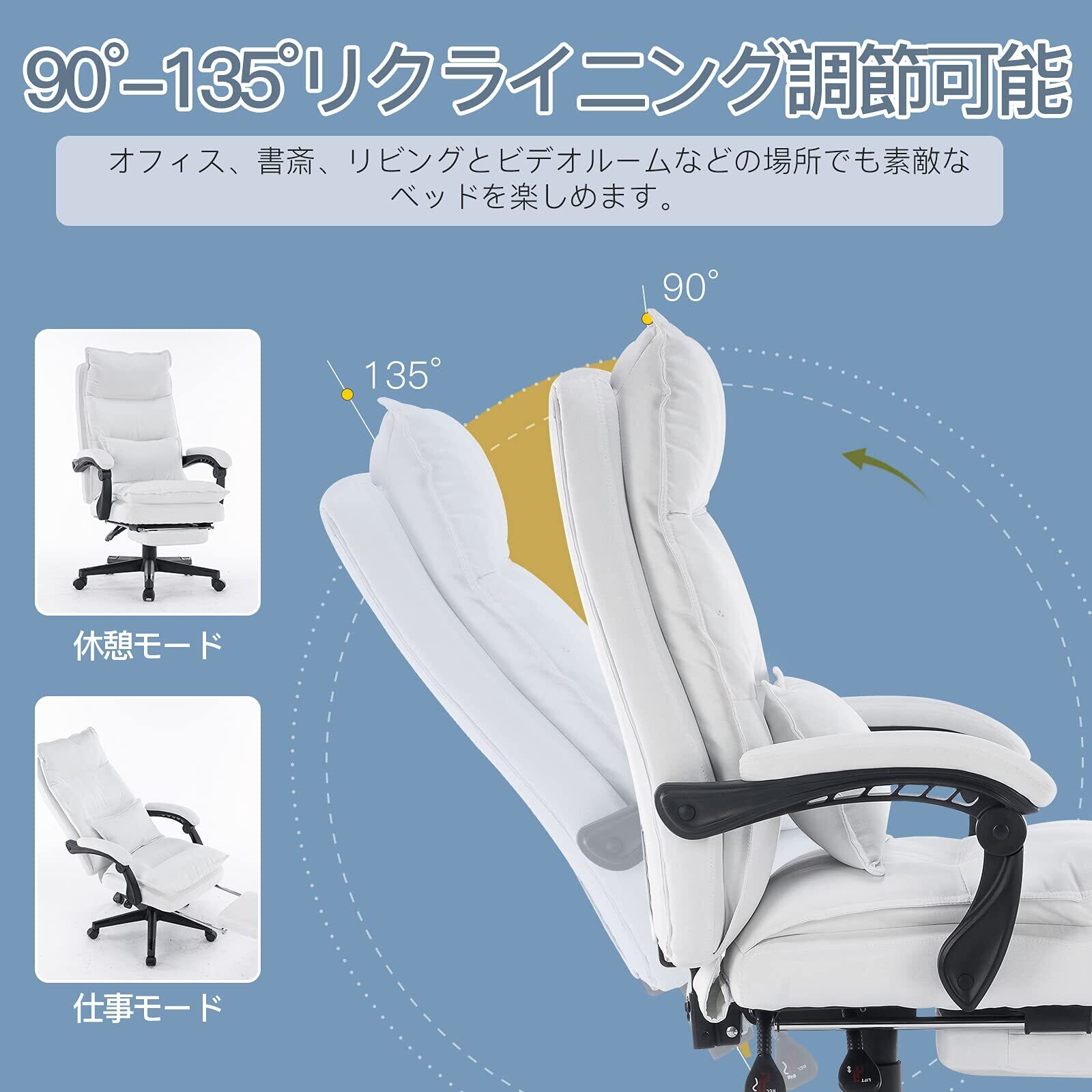 SKYEゲーミングチェア ファブリック オフィスチェア リクライニングチェア 伸縮可能のオットマ
