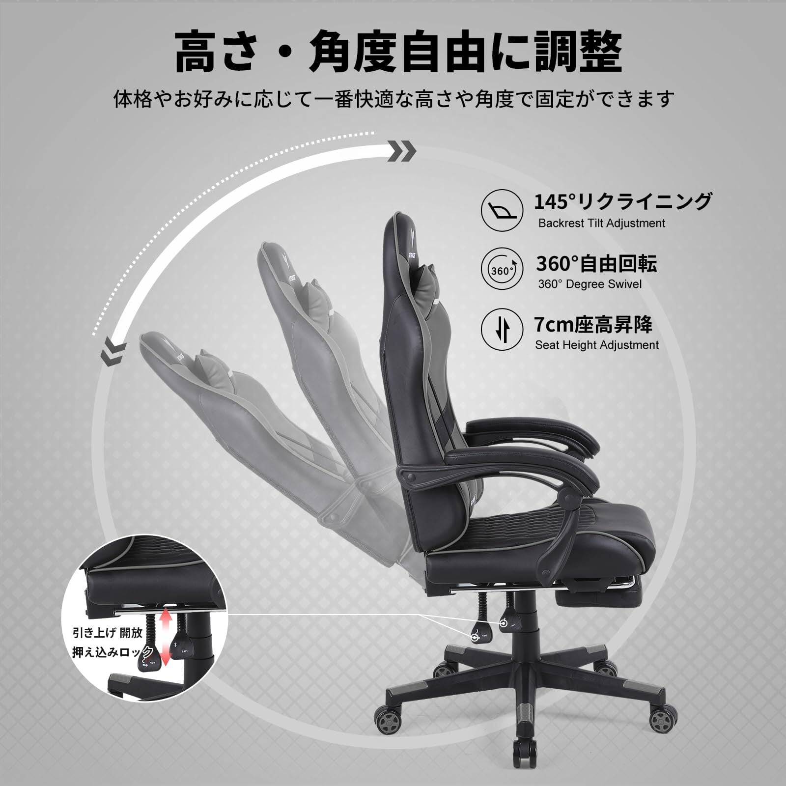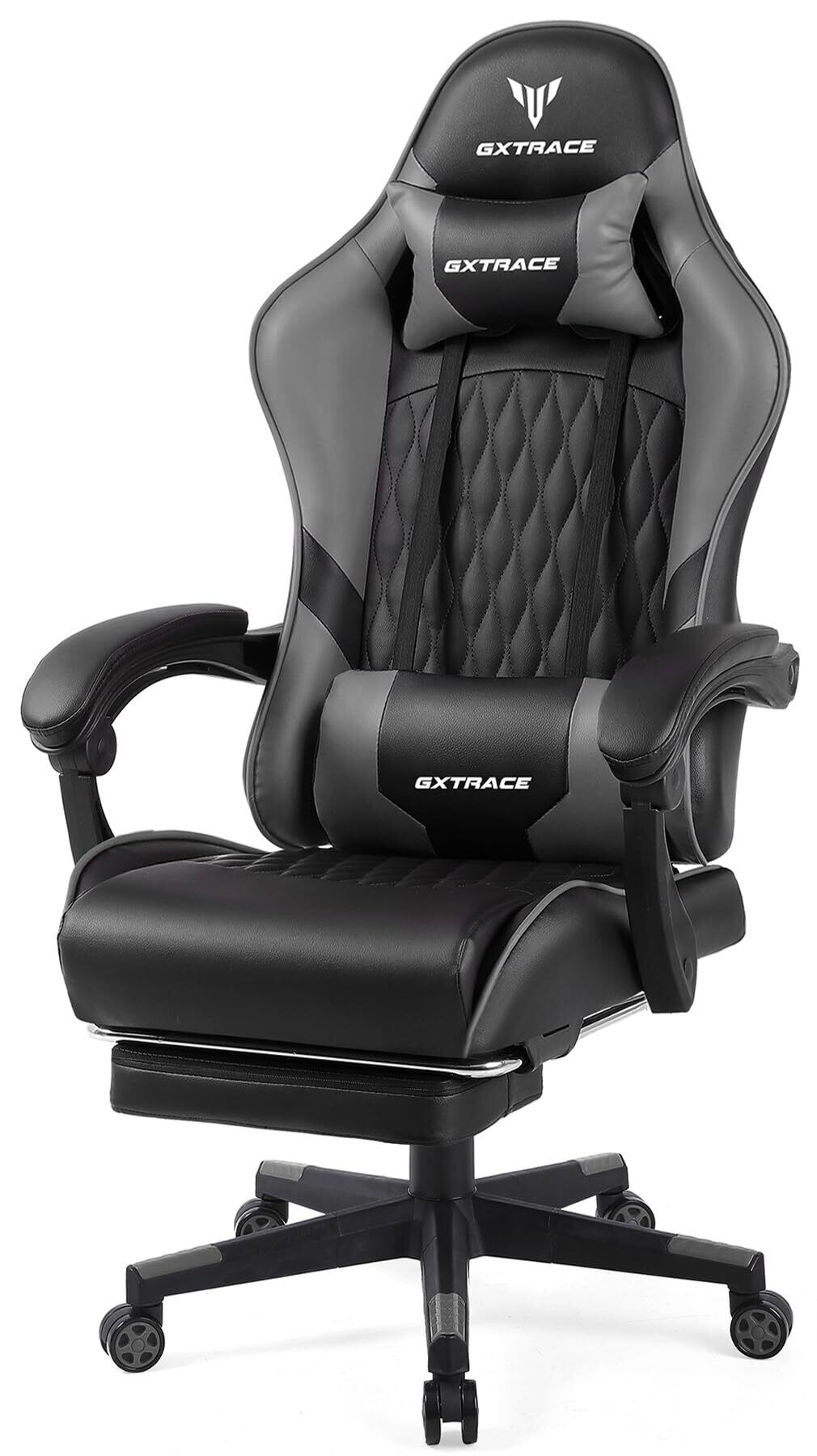 GXTRACE ゲーミングチェア ゲームチェア 白 オフィスチェア デスクチェア パソコンチェア 椅子 オットマン リクライニング (GRAY)