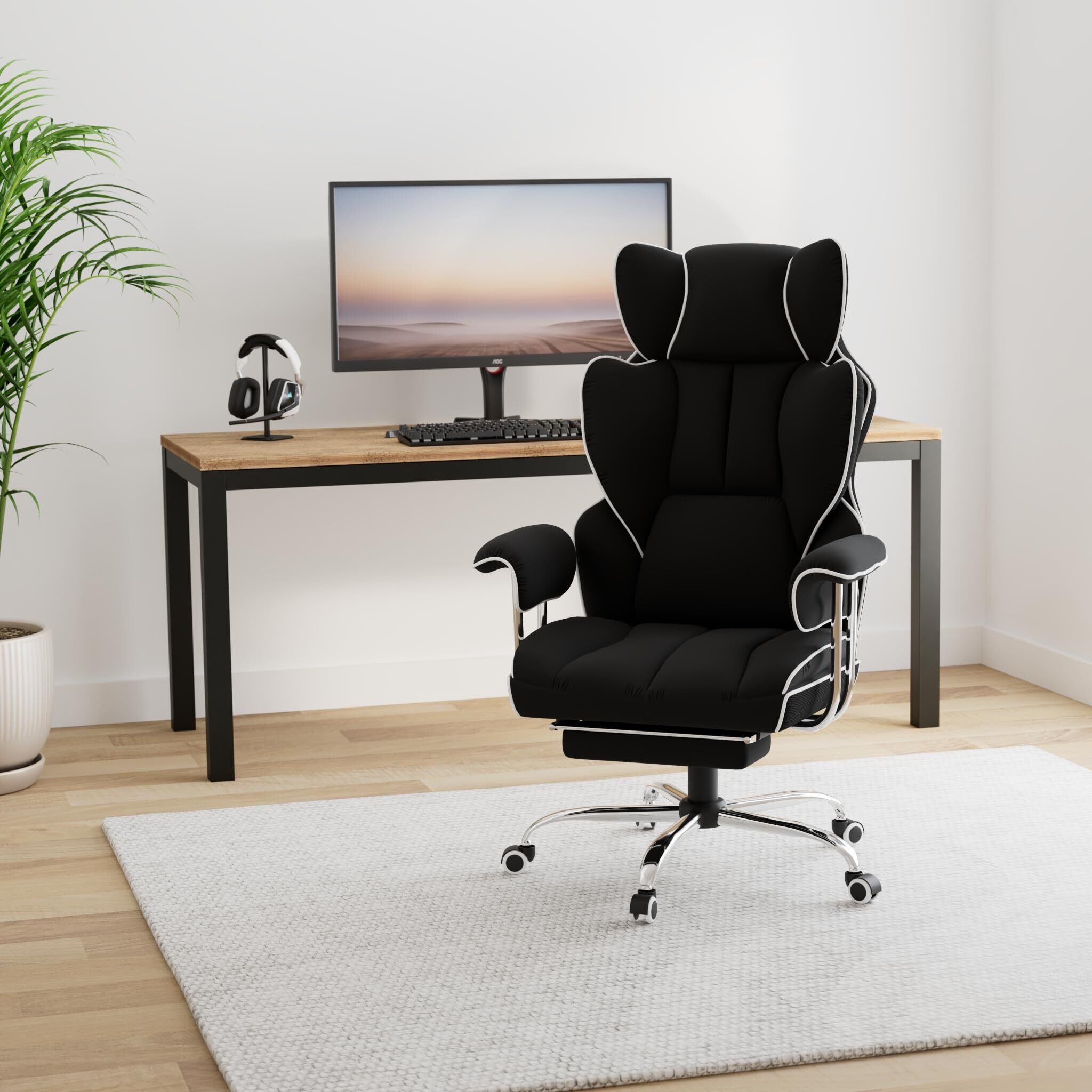 GTRACING ゲーミングチェア ファブリック オットマン 椅子 イス テレワーク 腰痛対策 pcチェア デスクチェア 蒸れない ソファーの座り心地 【ふわふわPP綿採用】 【安心の非再生ウレタン採用】【ポケットコイル採用】 分区サポート 肉厚クッション 140度リクライニング 広い座面 ハイバック 高さ調節 GT200-BLK
