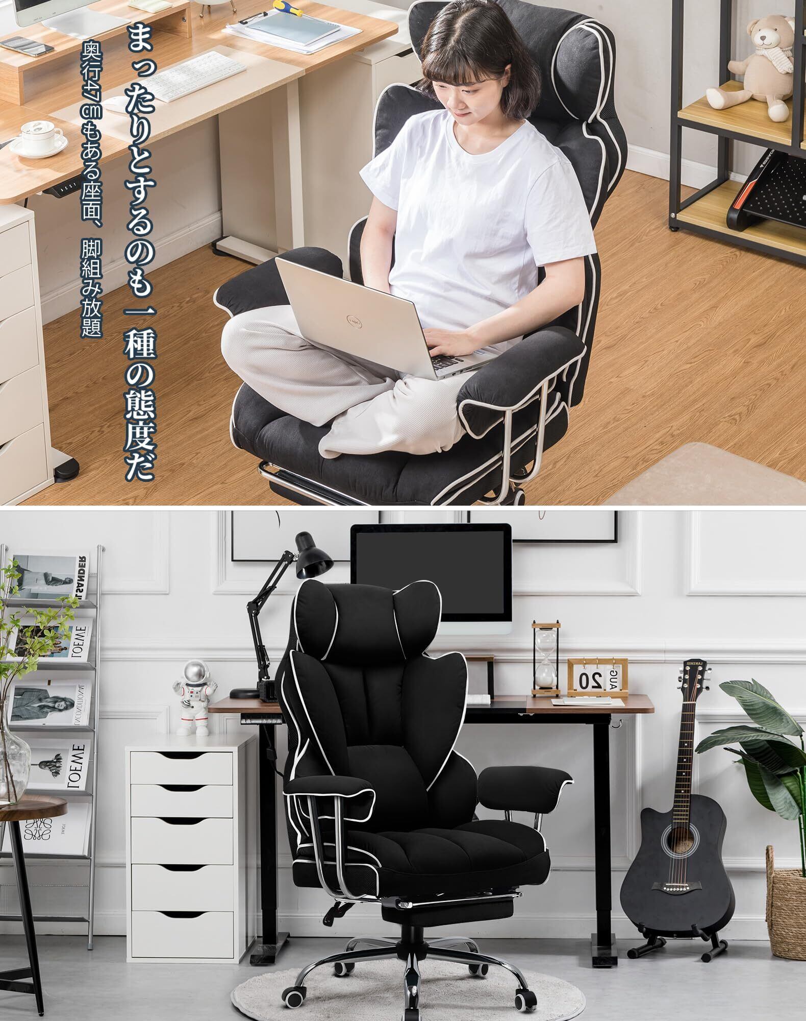 【通気性良好のファブリック】通気性がよくファブリック素材を採用し、耐久性が高く、破れにくいです。風通しがよく、長時間座っていてもムレがなく快適です。肌ざわりがさらさらなことも特長です。ファブリック以外にも、清掃しやすいPUレザーも選択できます。