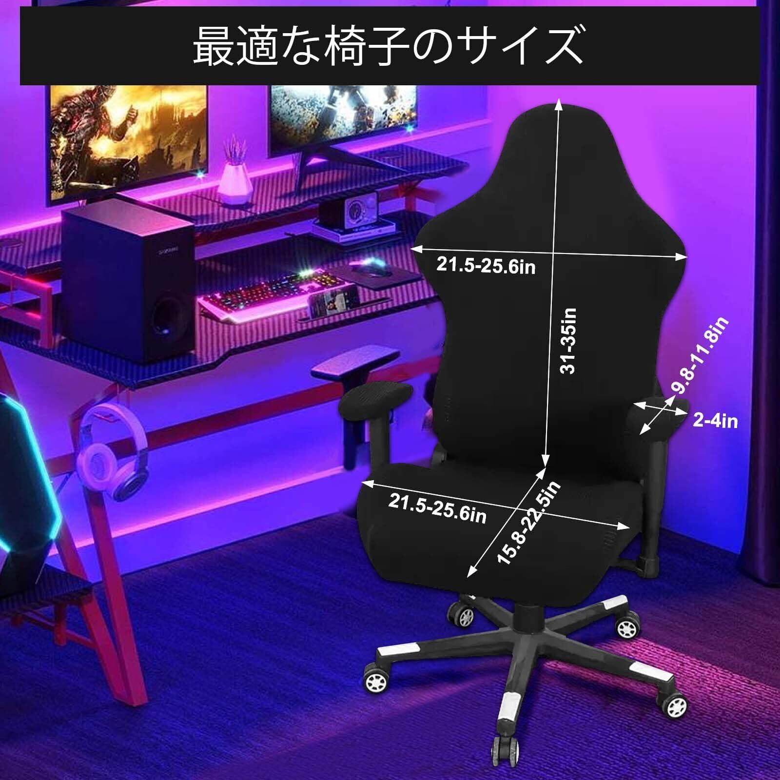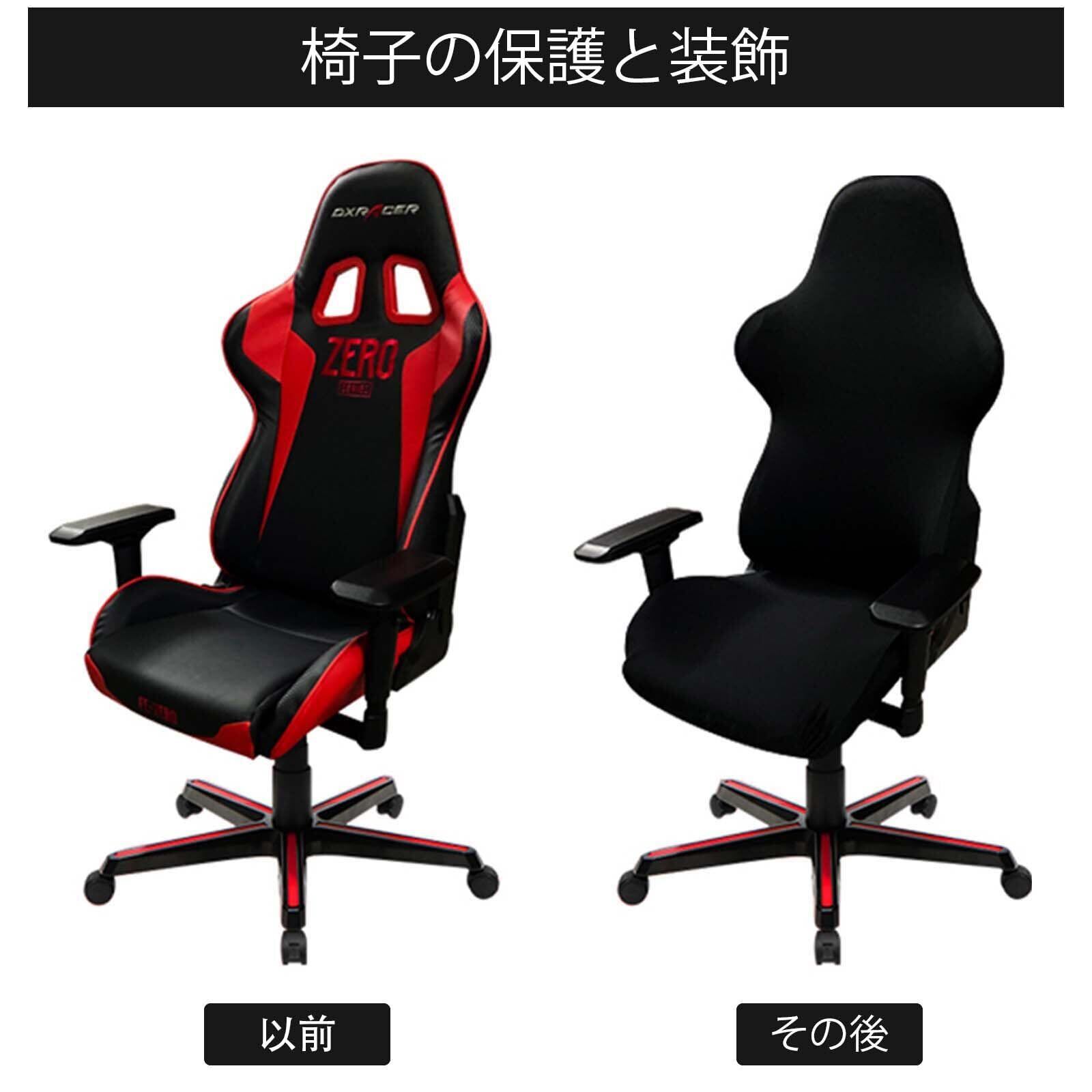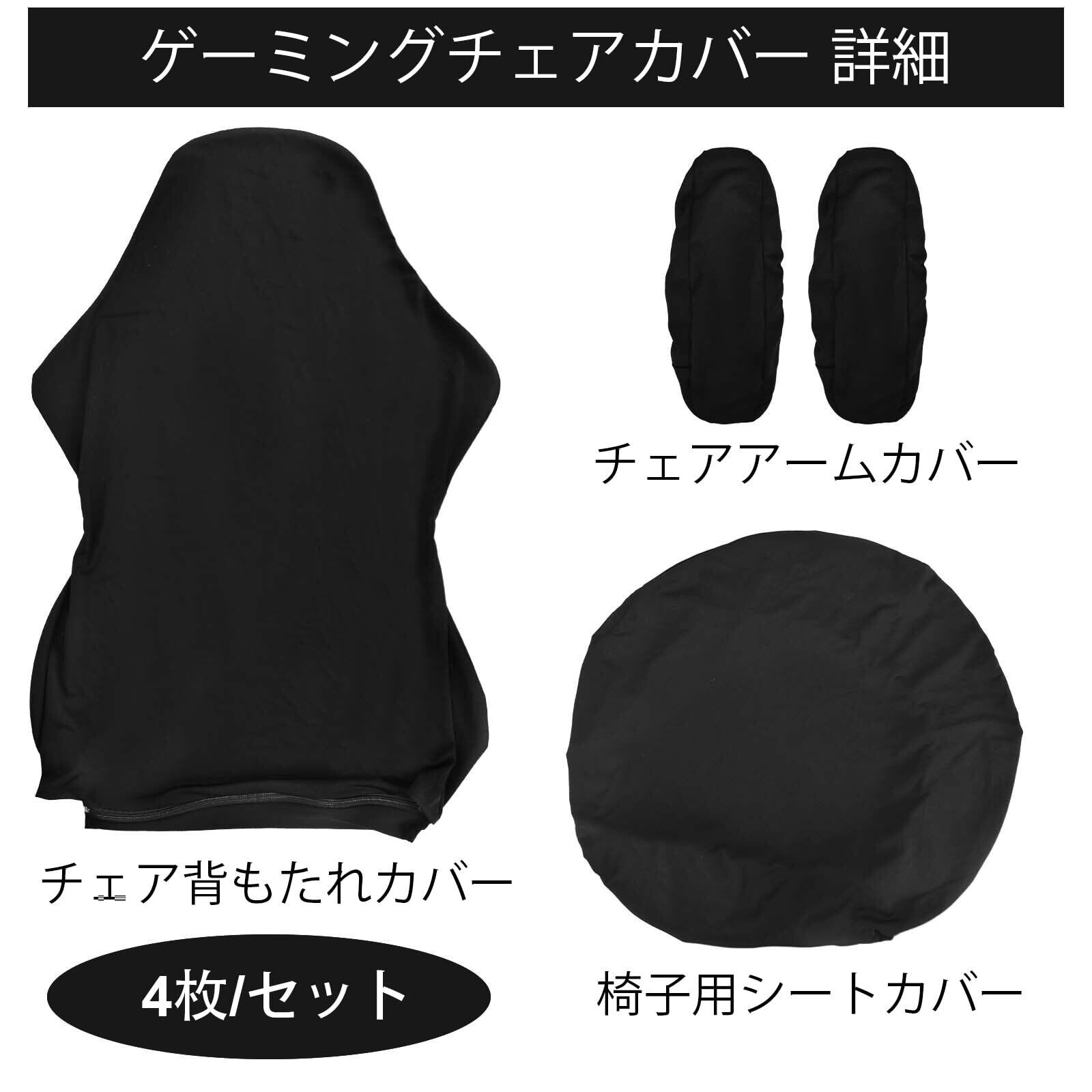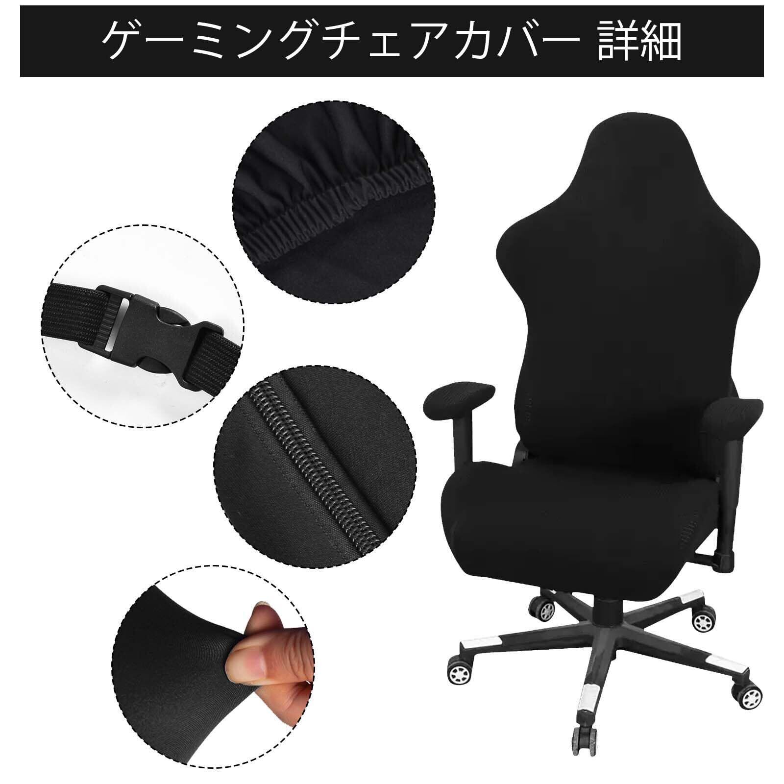 ゲーミングチェア カバー オフィスチェアカバー 黒 チェアカバー 洗える ゲーミングチェア カバー 座面 背面 アームカバー 事務椅子カバー 背もたれ フルカバー 伸びる