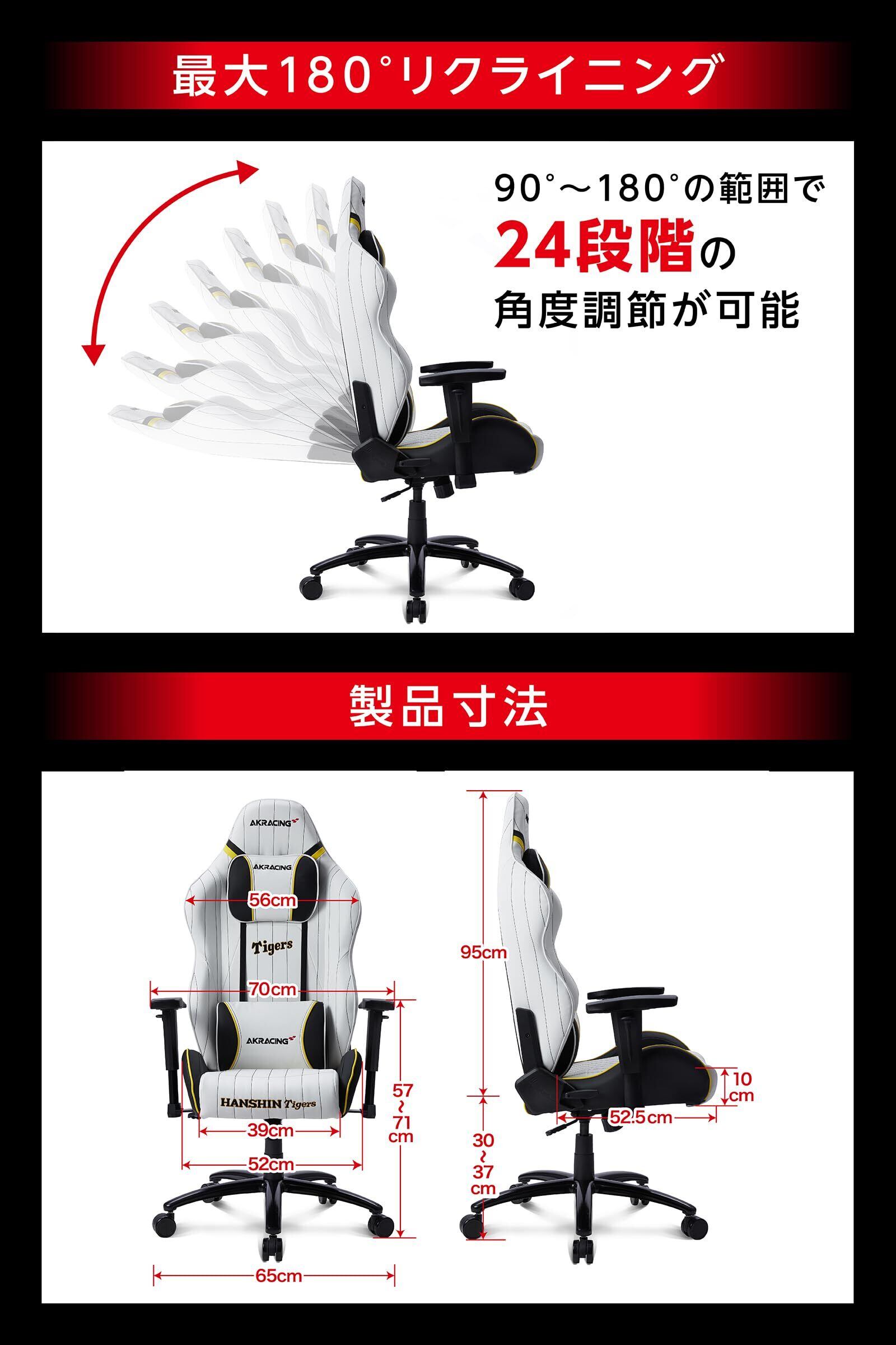 【2022最新】AKRacing ゲーミングチェア デスクチェア 阪神タイガースチェア HANSHIN Tigers コラボモデル 高耐久PUレザー 180度リクライニング 在宅 リモート
