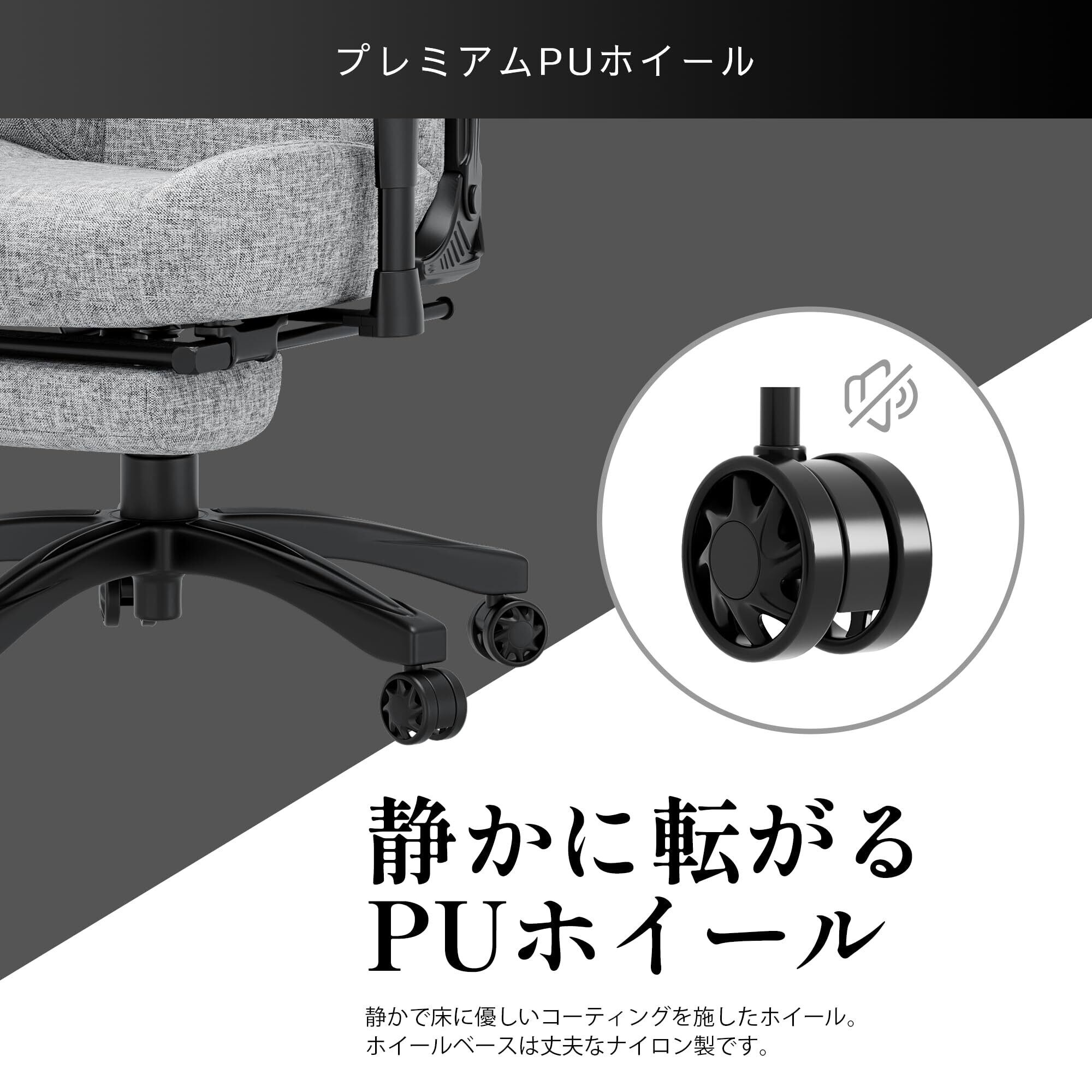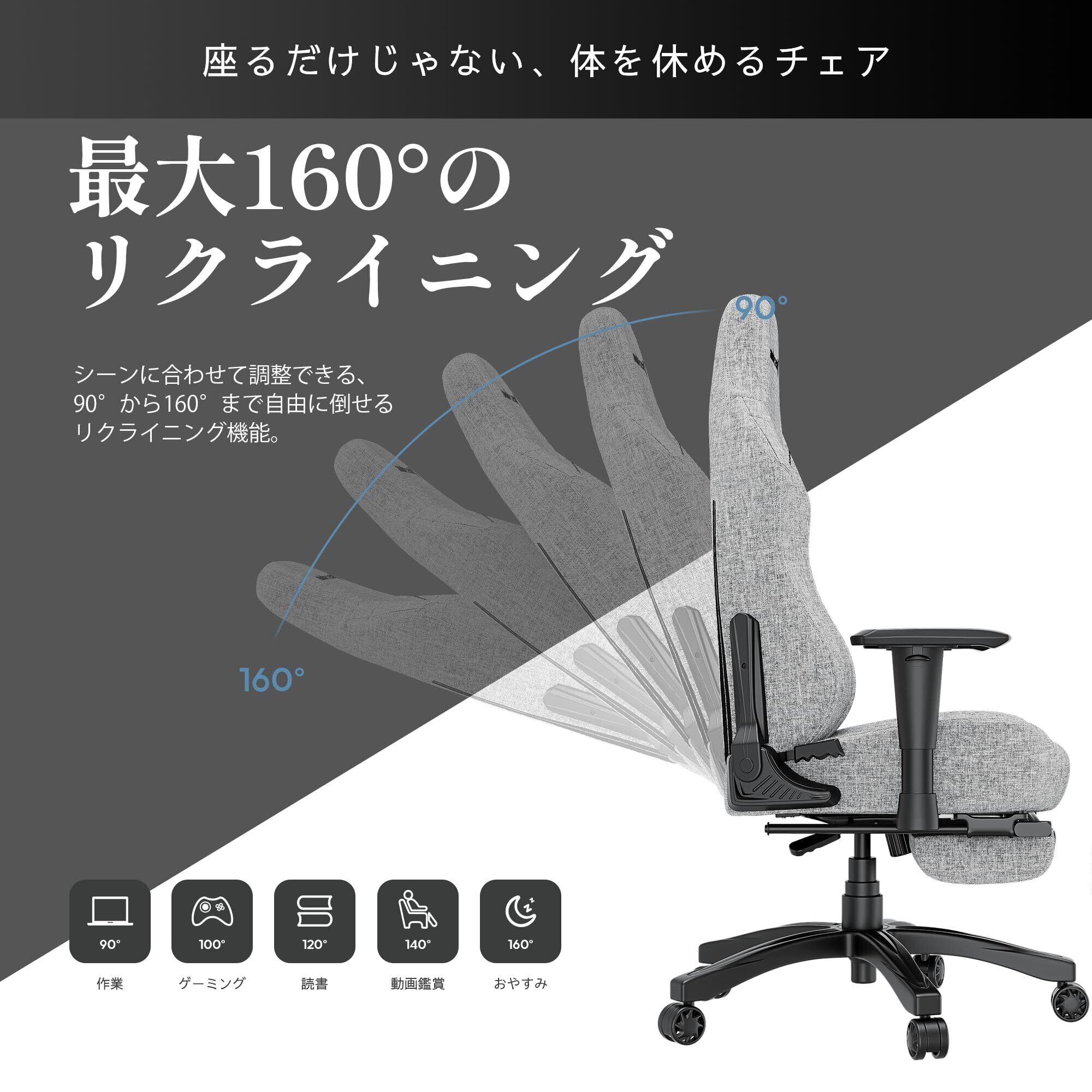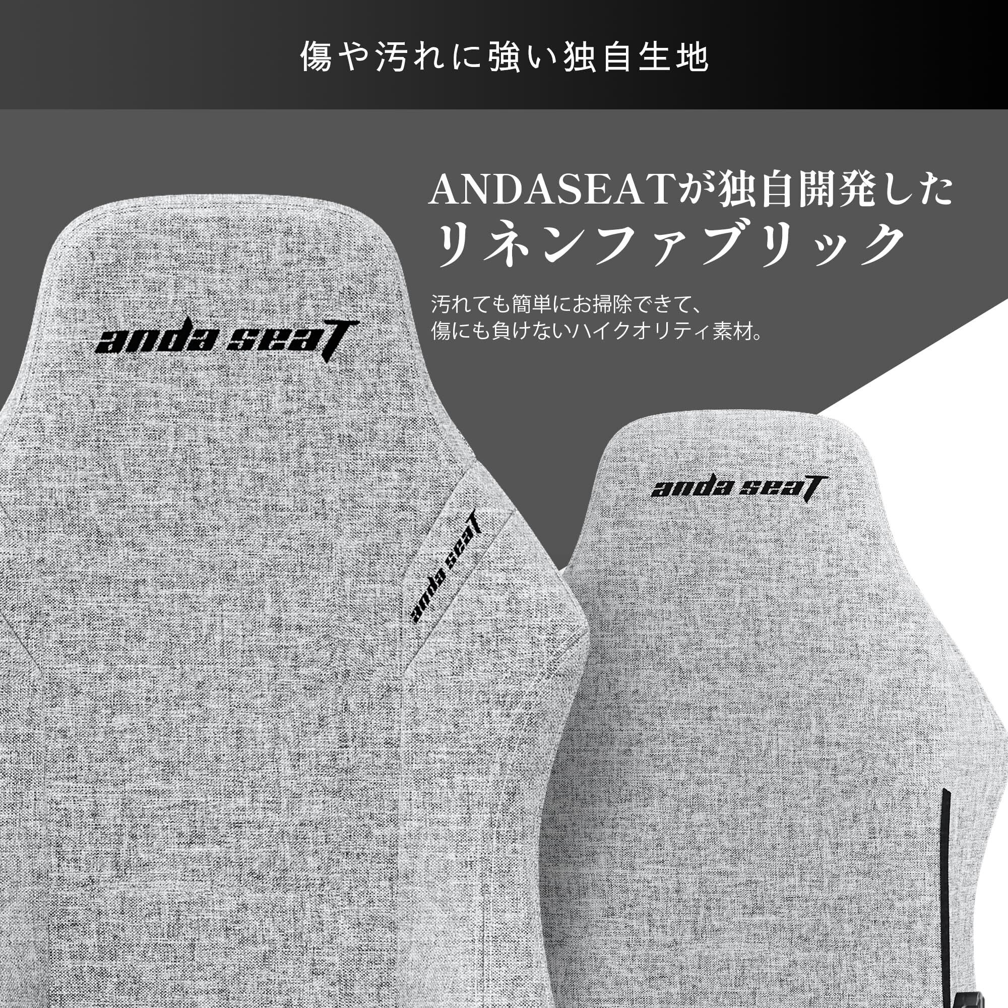 Andaseat Luna ゲーミングチェア リネン ファブリック 生地 グレー 160° リクライニング 幅広 座面 肉厚 オフィスチェア 布 PCチェア