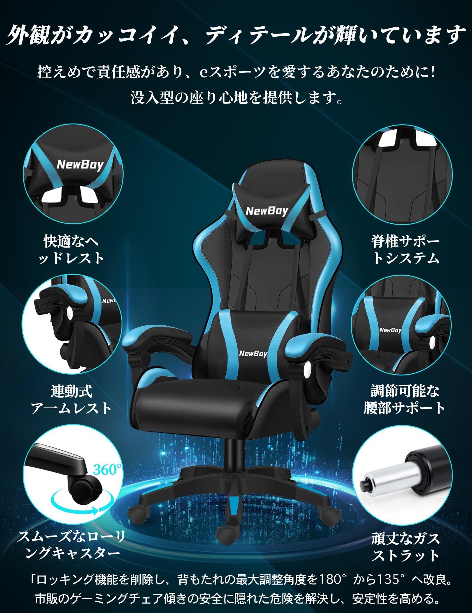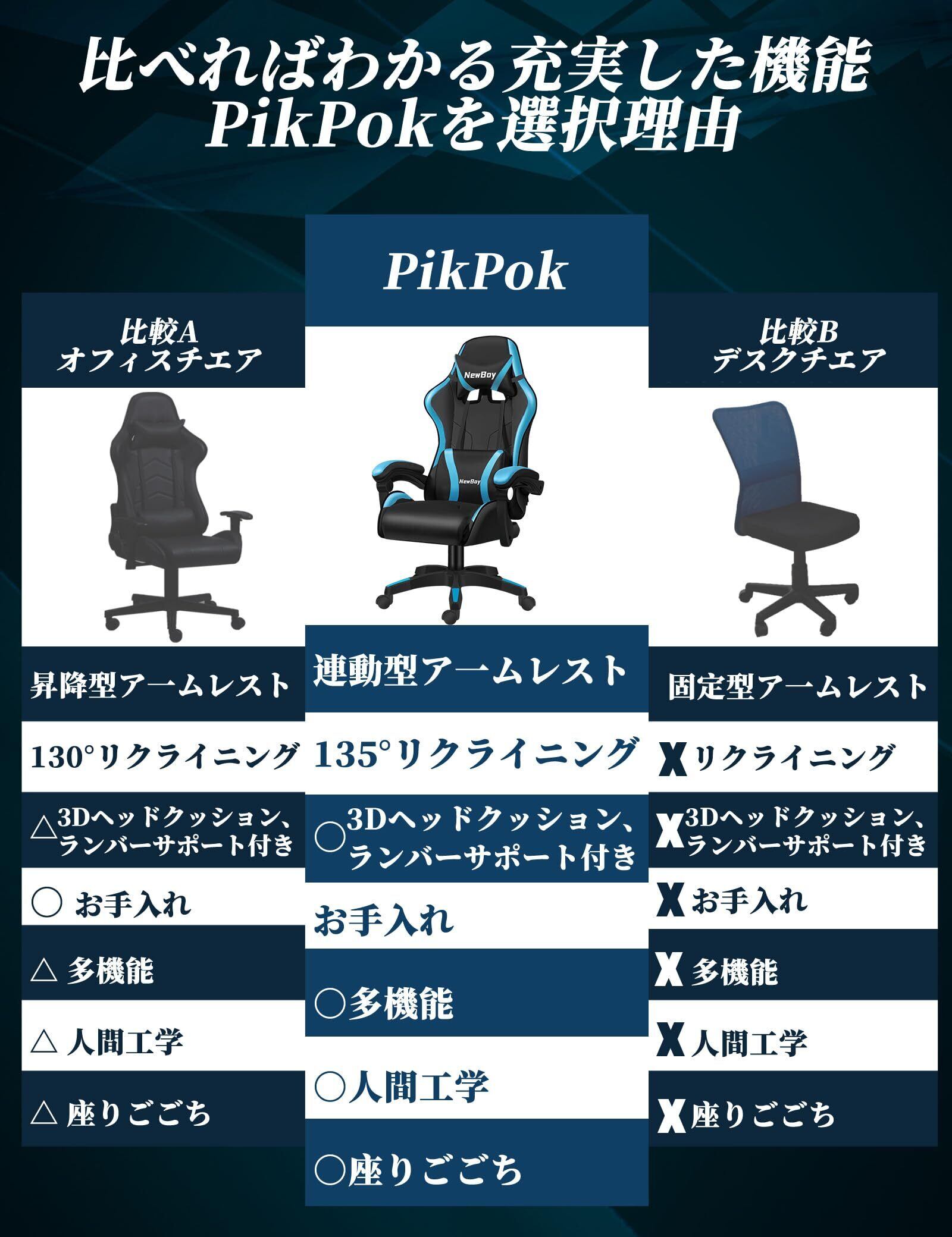 【2022最新】PikPok ゲーミングチェア pcチェア 椅子 デスクチェア ゲーム用チェア リクライニング パソコンチェア ハイバック ヘッドレスト ランバーサポート ひじ掛け付き 高さ調整機能 PUレザー (スポーツカー 黒と青)