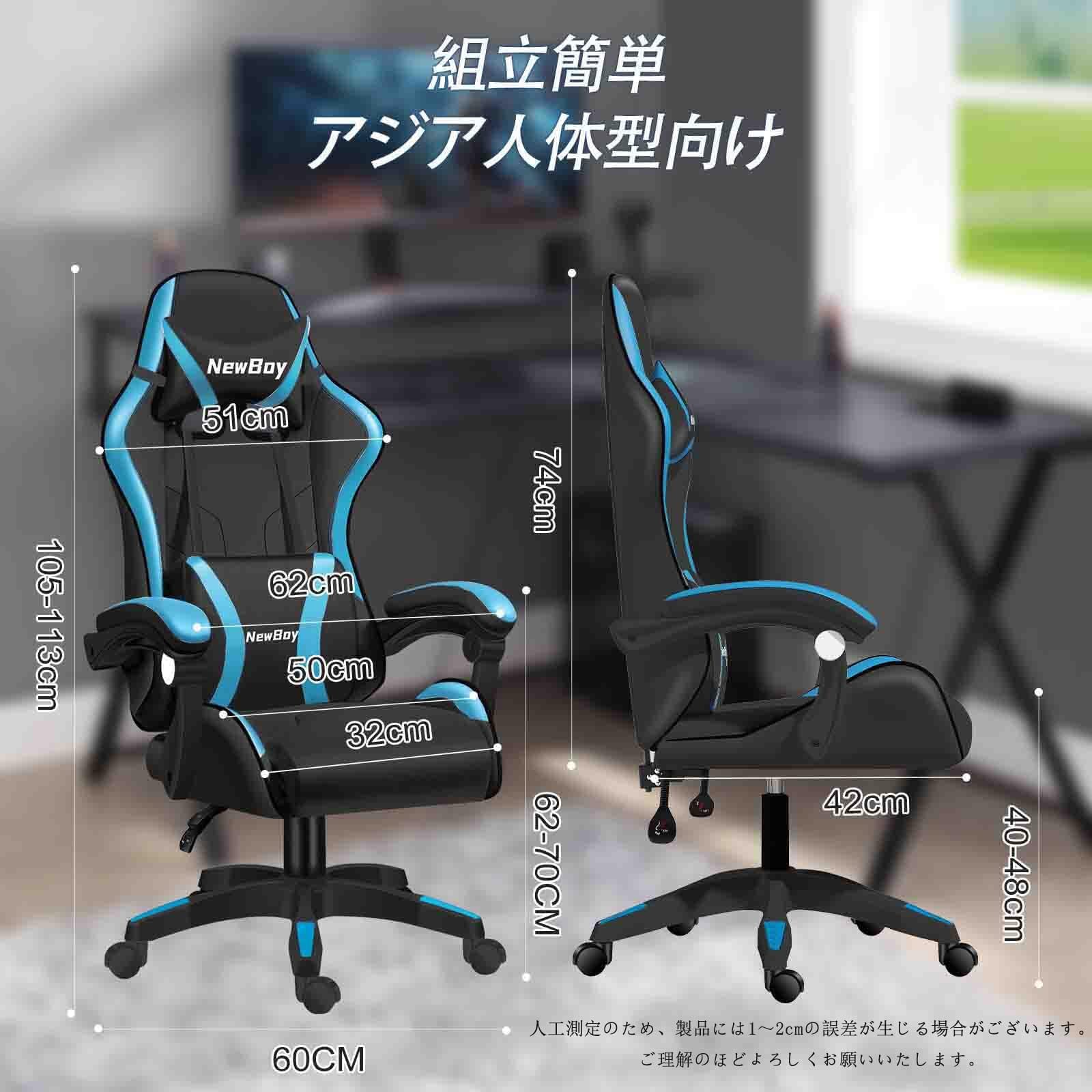 ·【簡単に組立可能・商品仕様】 ゲーミングチェアのサイズ:幅62×奥行49×高さ105-113cm(座面高:40-48cm)。高さ調節が可能なので、小柄な女性にも座りやすいモデルとなります。また、本体重量は15kgですが、静止耐荷重は約100KGに達しており、ご安心して利用いただけます。組み立てには、道具も日本語説明書も付いていますから誰でも20分以内に八つのシンプルステップでこのオフィスチェアを組み立てることができます。