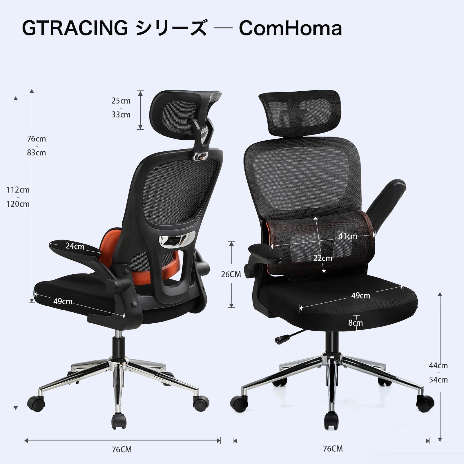 GTRacing デスクチェア ゲーミングチェア オフィスチェア 椅子 テレワーク疲れない 小型 メッシュ 人間工学 ランバーサポート【反発力ある背もたれ 腰ラク】 跳ね上げ式アームレスト 在宅ワーク 在宅勤務 形状記憶ポリウレタンクッション材 3Dヘッドレスト ブラック SDR-YIK