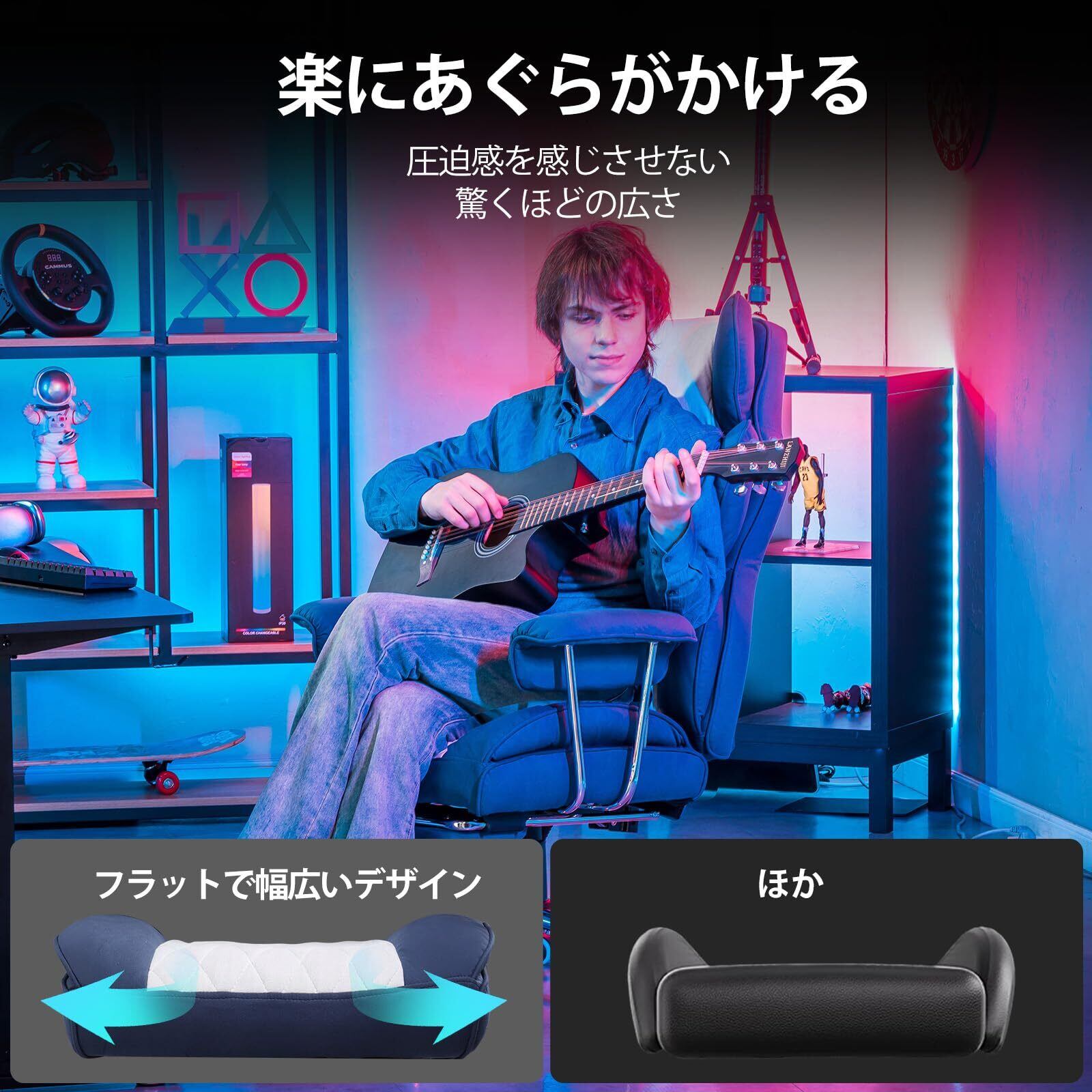 【疲れを取る分区サポート】頭から脚まで科学的に分区サポートし、圧力を軽減してを解消します。ソファのような座り心地を実現するために3種類の素材を使用しています。表面にはふわふわのPP綿を、座面の下には安心の非再生ウレタンを採用。また、背もたれには独立したポケットコイルを内蔵し、ゲーミングチェアでもソファのような快適な座り心地を実現しています。