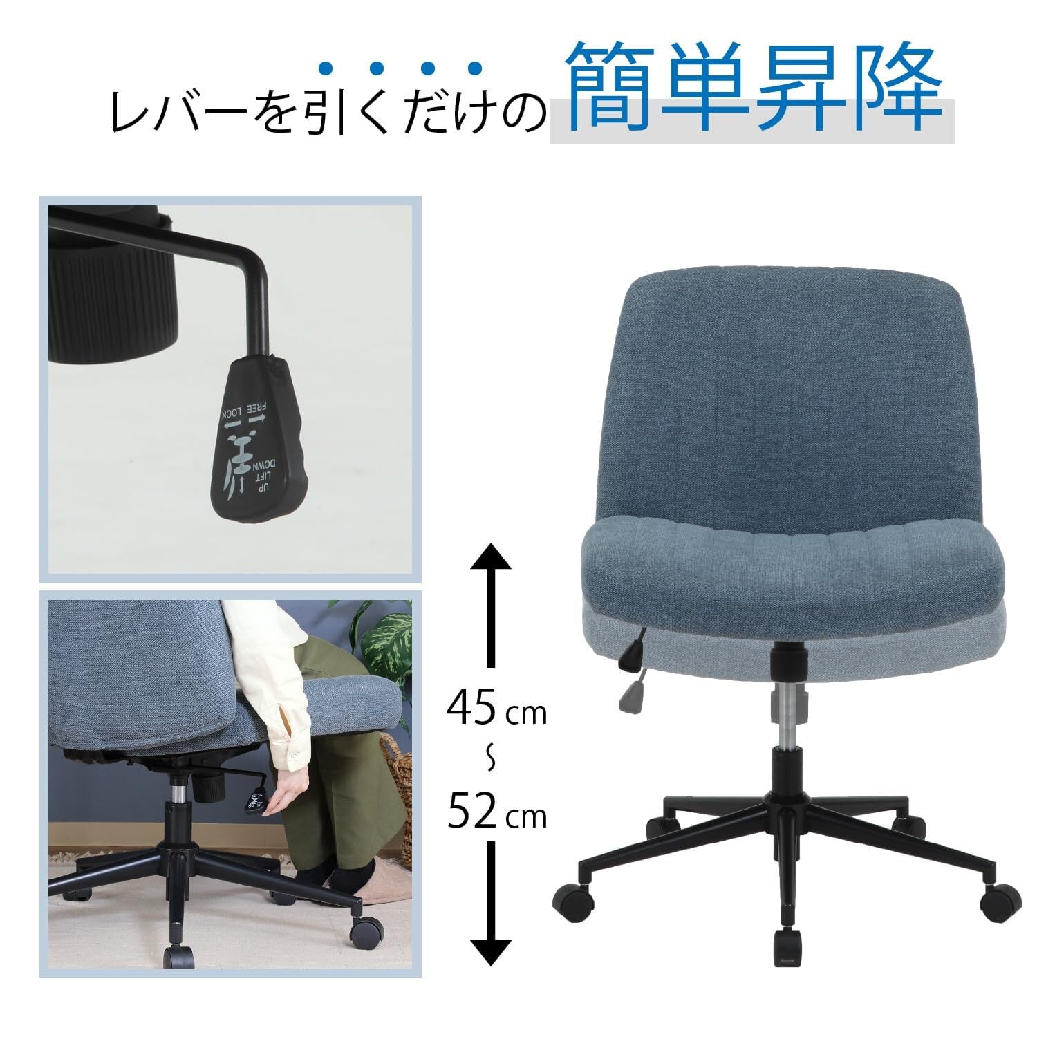 不二貿易 あぐらチェア デスクチェア 高さ調整可能 幅66×奥行69×高さ84cm オフィスチェア ブルー 40731