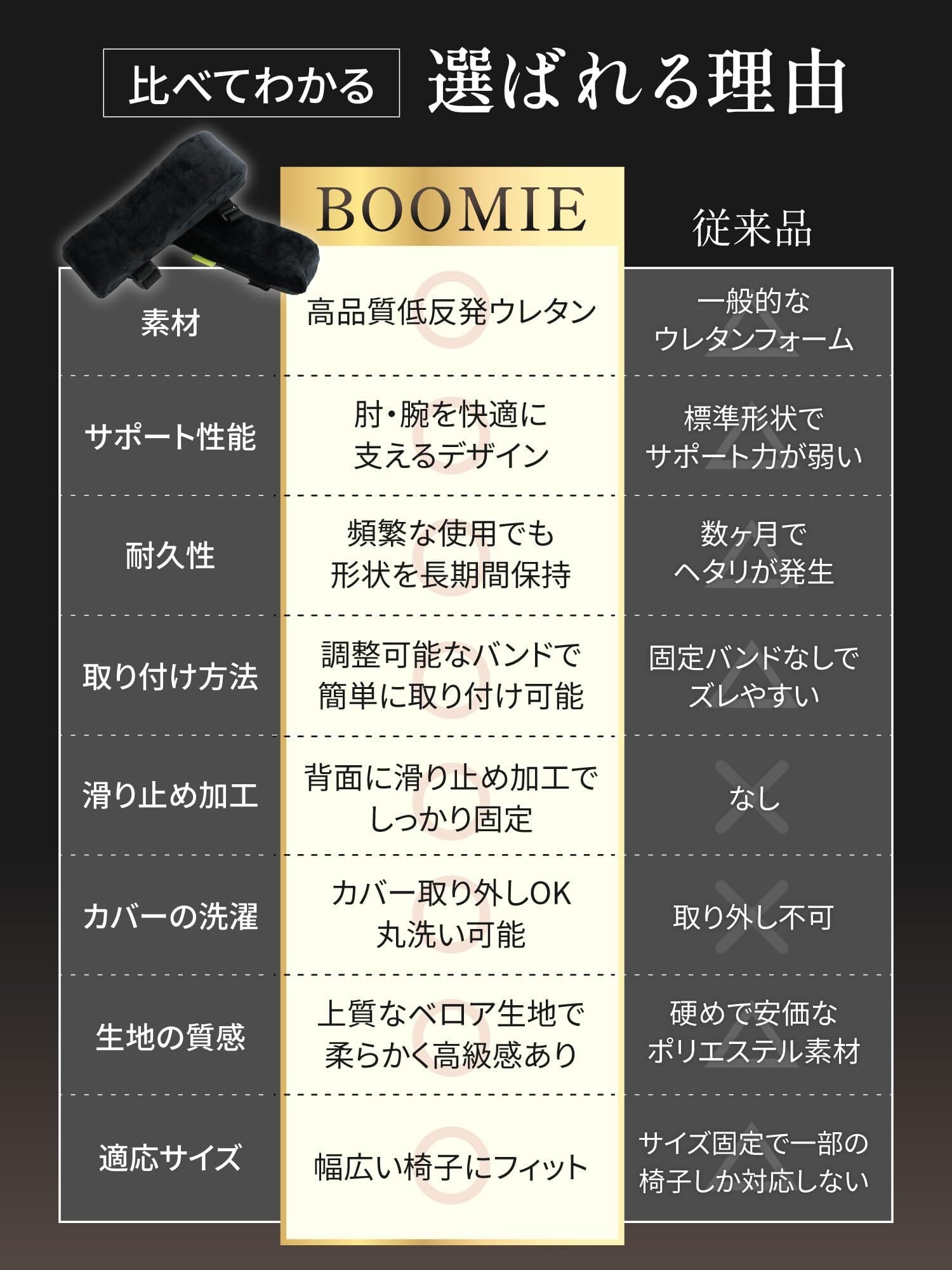 王宮のひじ置き【なめらか肌触りx低反発素材】 ひじ置きクッション アームレスト 肘置き ひじ掛け 両肘セット 肘掛け 椅子 デスクチェア クッション BOOMIE