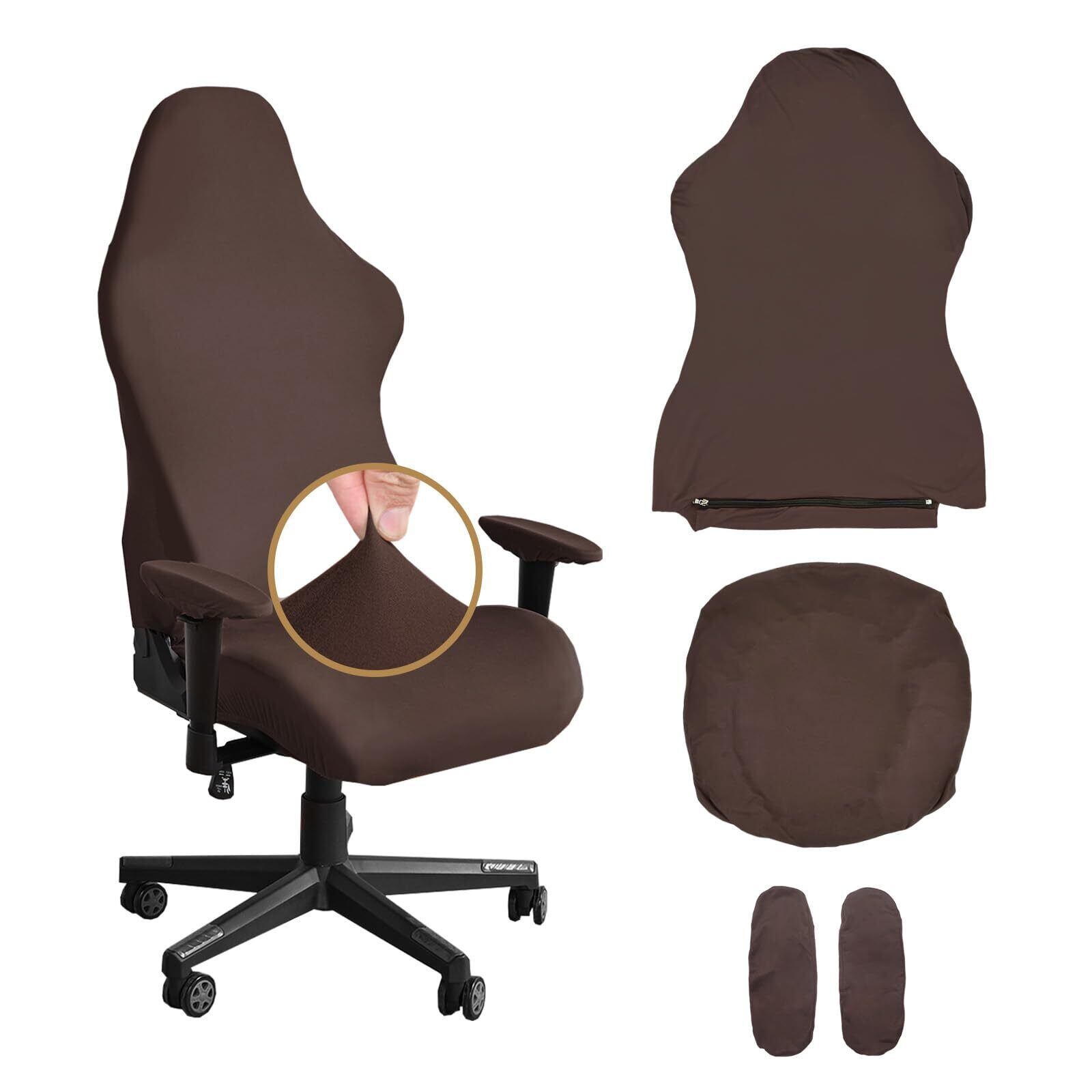 LANGYUゲーミングチェアカバー オフィスチェアカバー 洗えるーミングチェアカバー アームカバー 4点セット ゲーミングチェア カバー なめらか肌触り保護伸縮性 オフィスチェアカバー 背もたれ 座面(ブラウン)