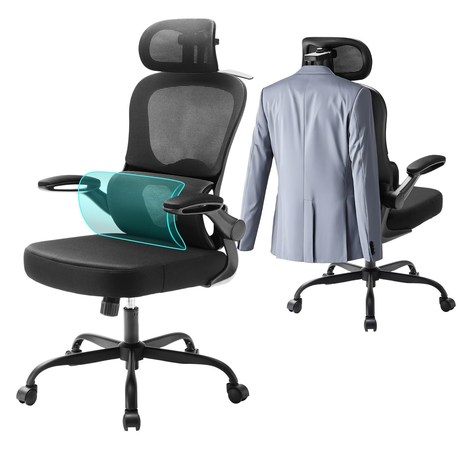 Aevoriax N56 人間工学に基づいたオフィスチェア、動的腰部サポート、厚みのある柔らかい座面クッション、自宅オフィスに最適、多段階調整可能なヘッドレスト付きデスクチェア