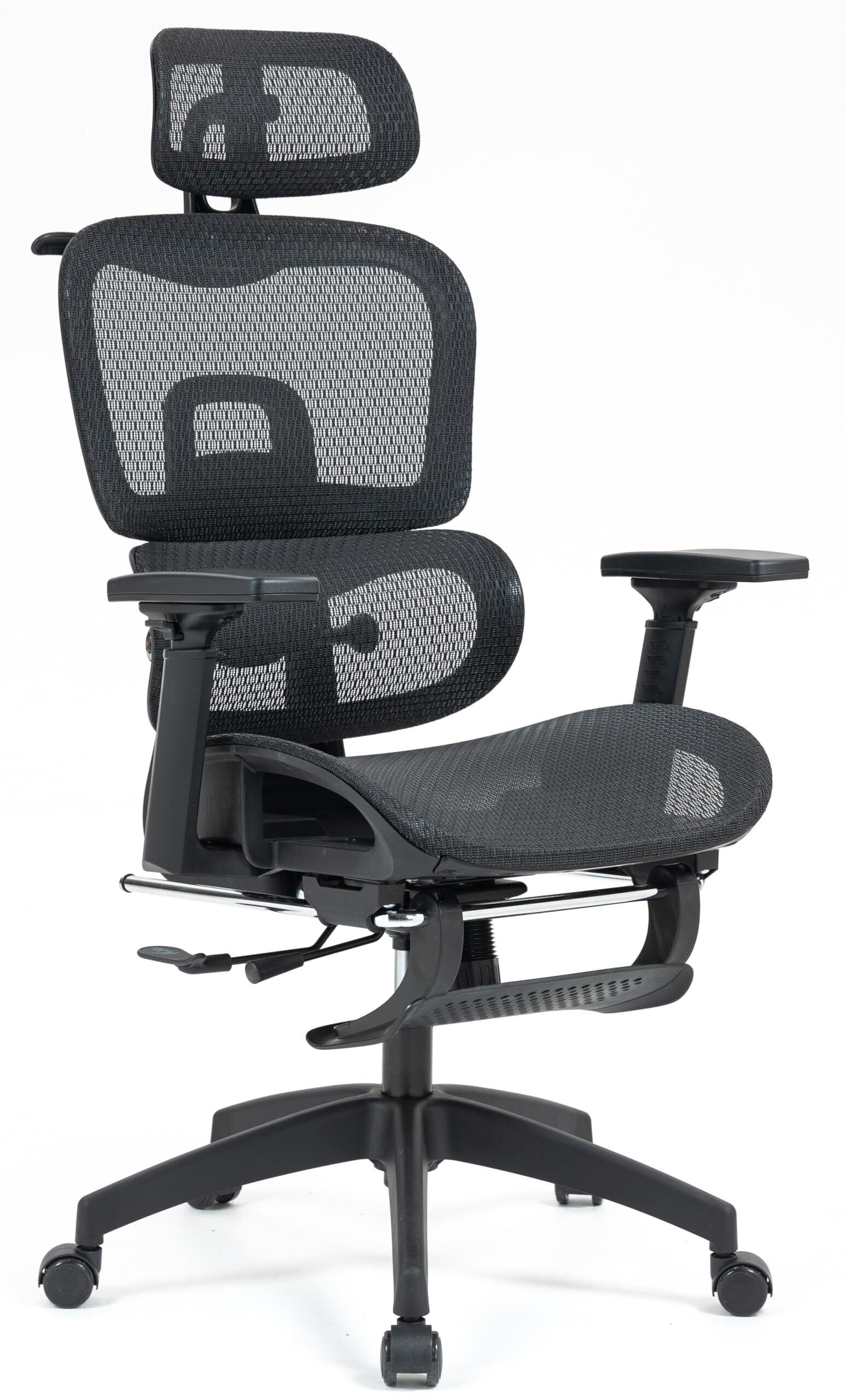 SYALEN オフィスチェア メッシュ 椅子 チェア キャスター ロッキング リクライニング ハイバック ランバーサポート 人間工学 ブラック 黒 SLCH-09MBK (Black強化メッシュ網目)