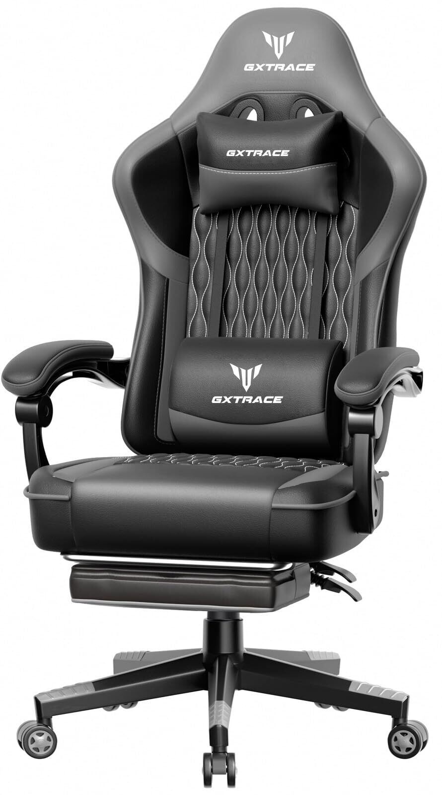 GXTRACE ゲーミングチェア オフィスチェア 幅広座面 オットマン付き 145°リクライニング快適デスクチェア 在宅ワーク&ゲーム用 PCチェア 収納便利