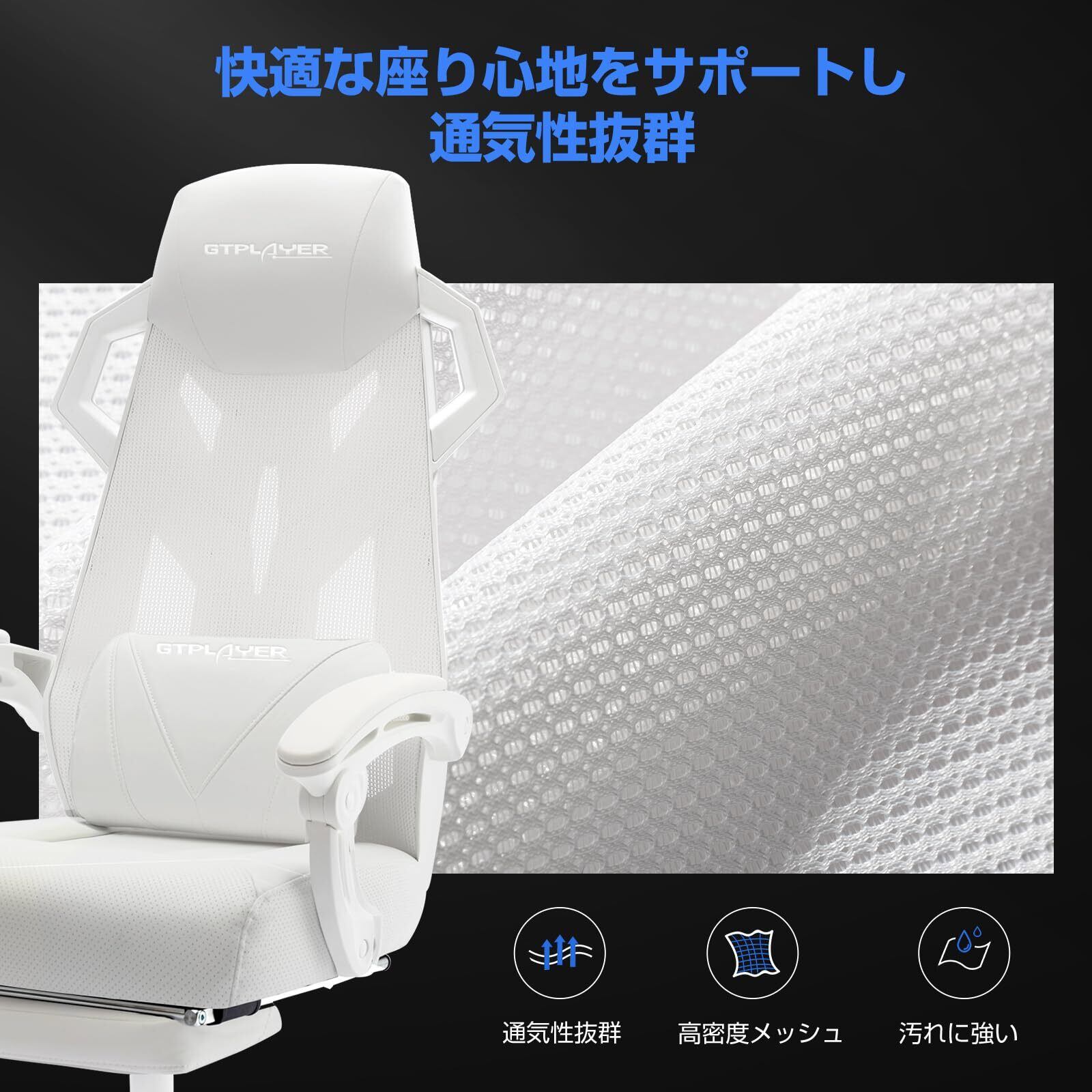 GTRacing ゲーミングチェア 真っ白 疲れない椅子 デスクチェア オフィスチェア オットマン付き ワークチェア リクライニング ハイバック イス『仕事用ゲーミングチェア』ゲーム用チェア フットレスト ハイバック/気孔付き皮革とメッシュ素材/連動型アームレスト (GTPLYERシリーズ) Bright White