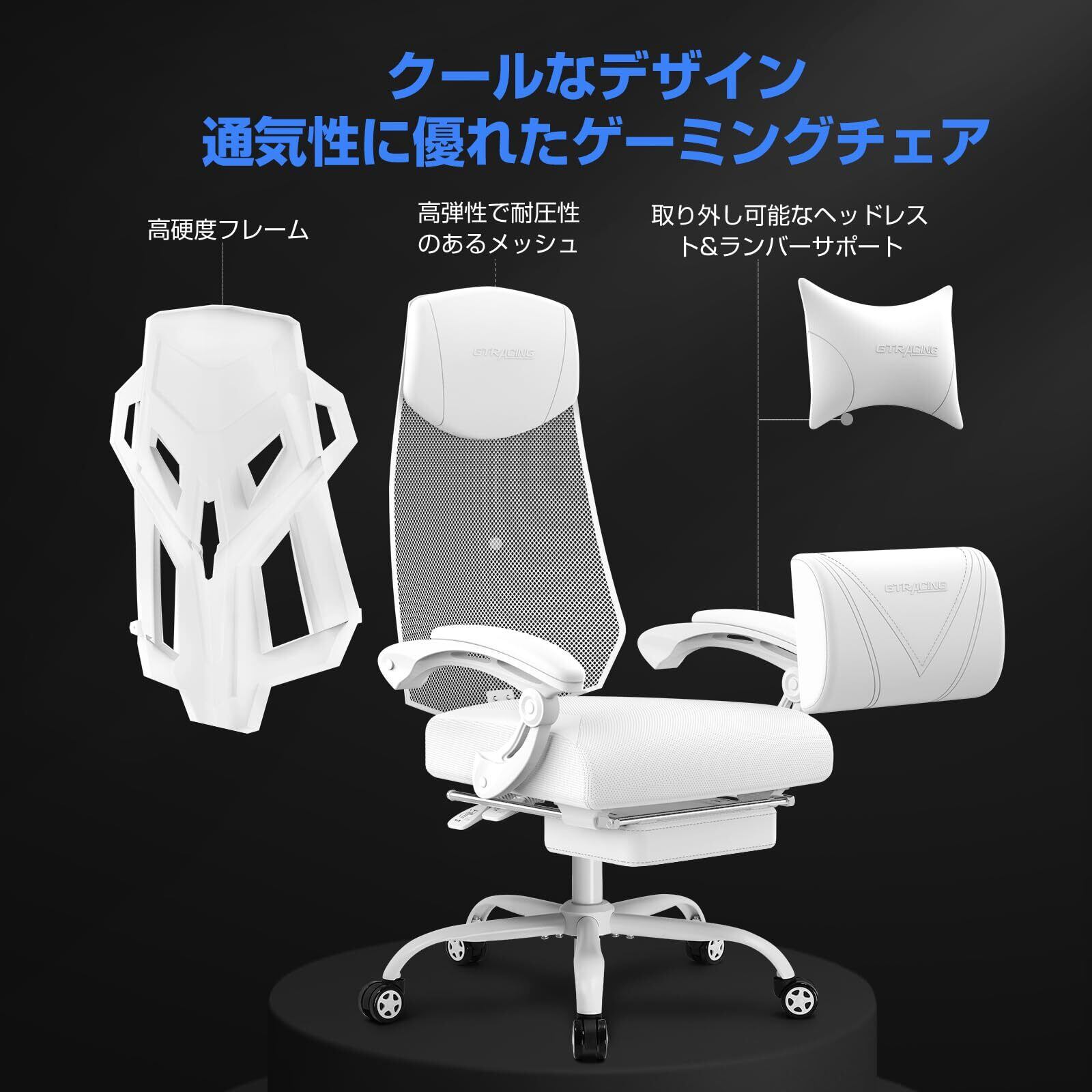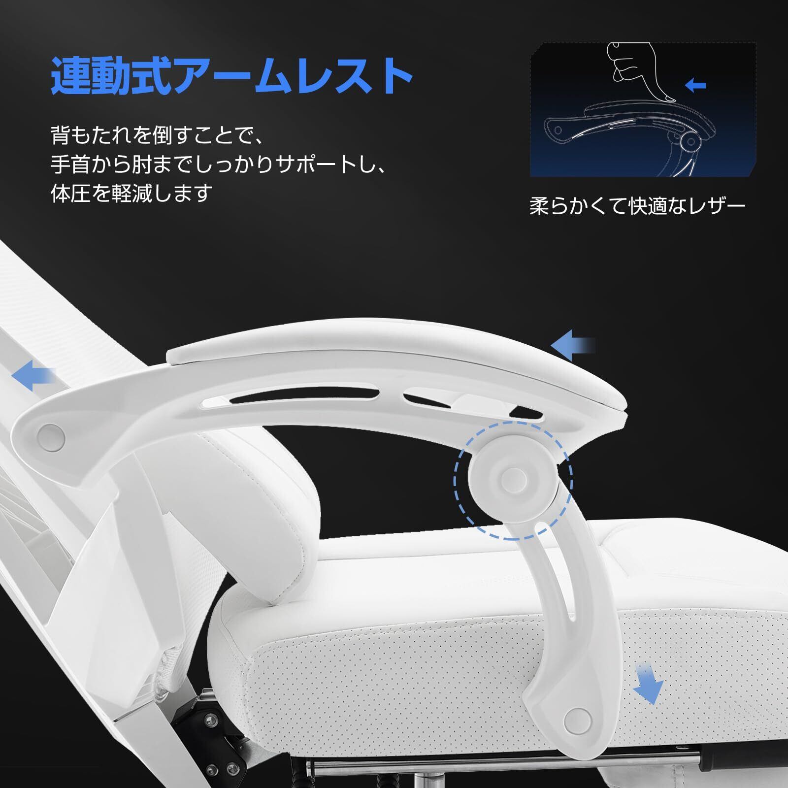 【2022最新】GTRacing ゲーミングチェア 真っ白 疲れない椅子 デスクチェア オフィスチェア オットマン付き ワークチェア リクライニング ハイバック イス『仕事用ゲーミングチェア』ゲーム用チェア フットレスト ハイバック/気孔付き皮革とメッシュ素材/連動型アームレスト (GTPLYERシリーズ) Bright White